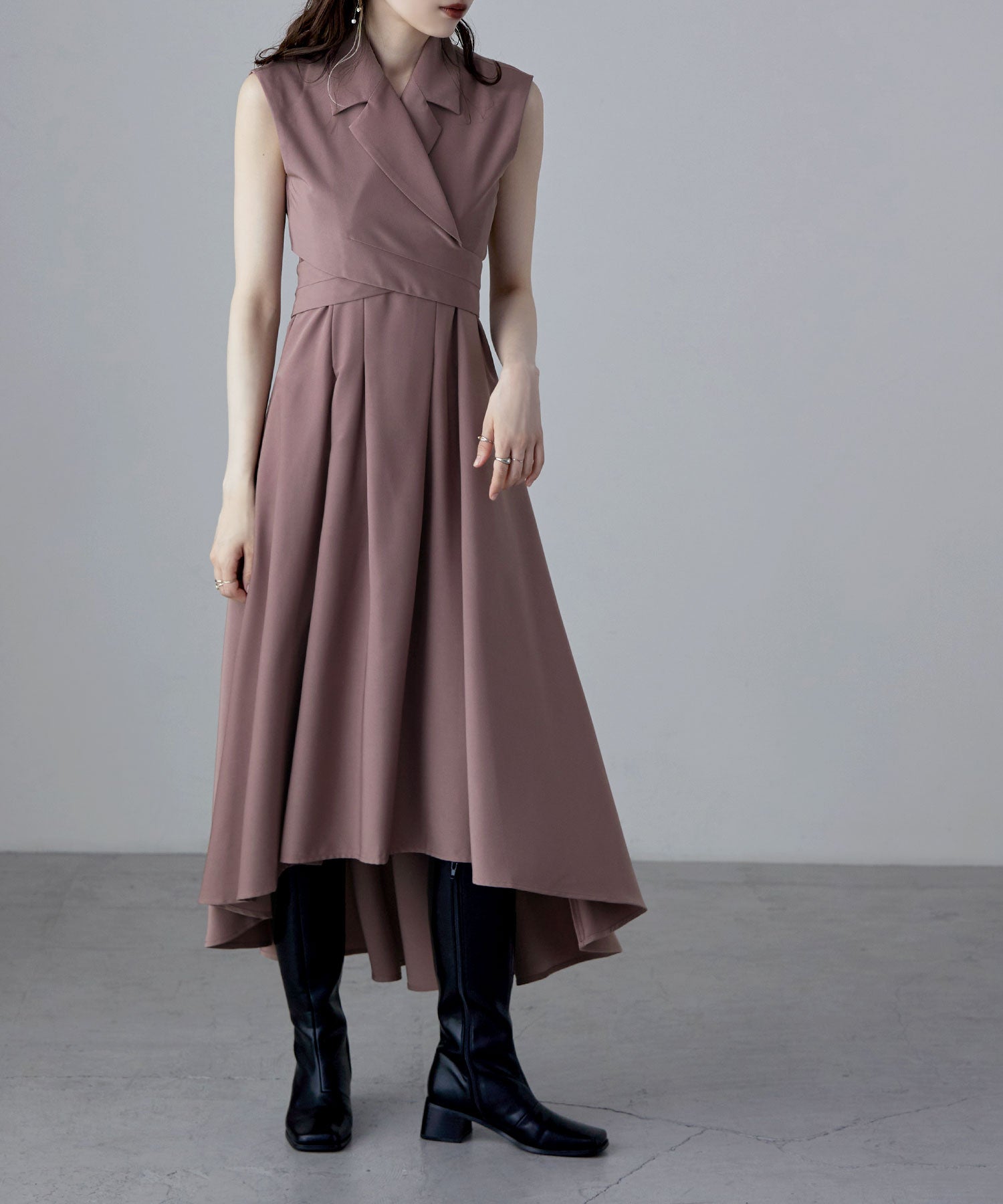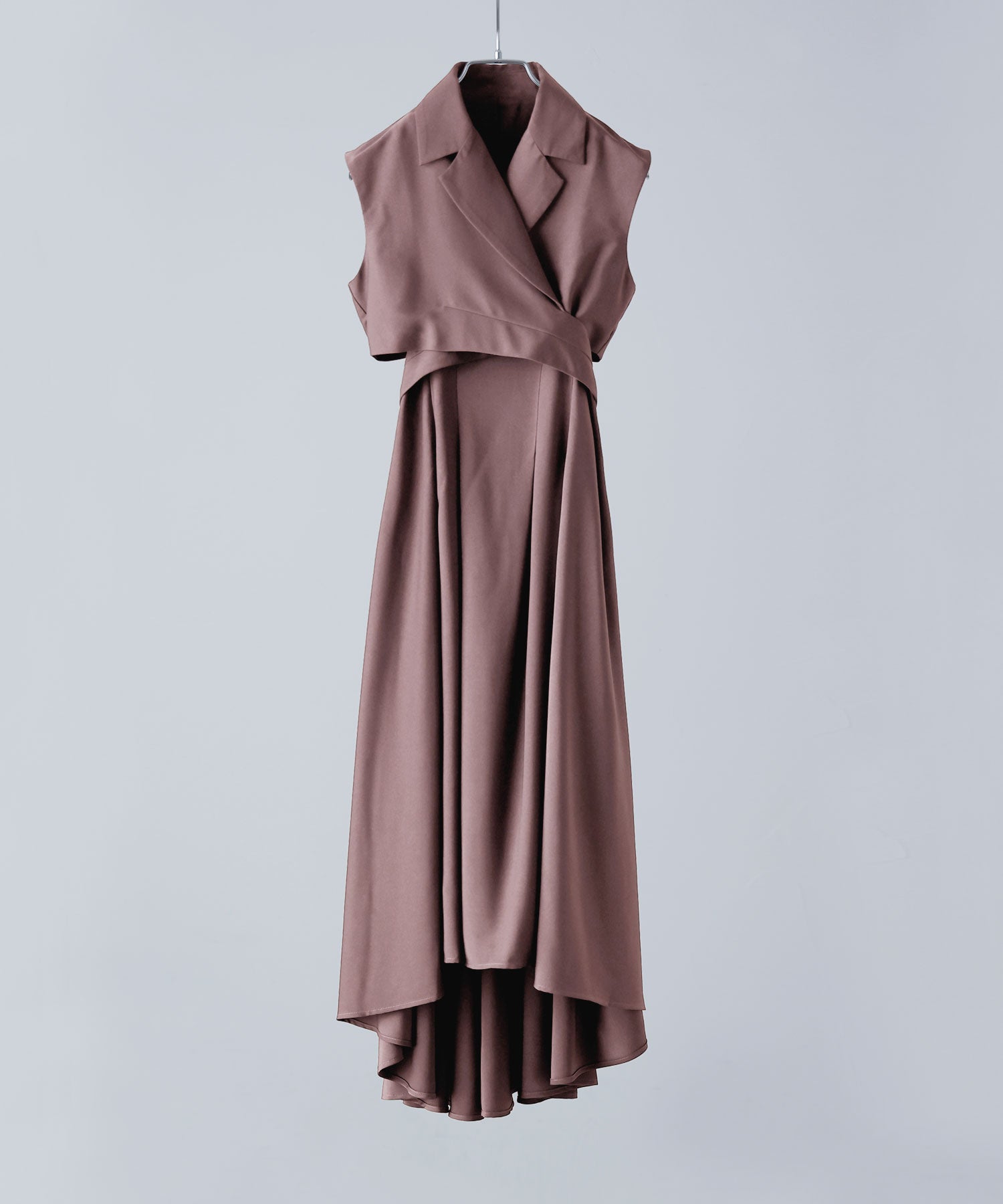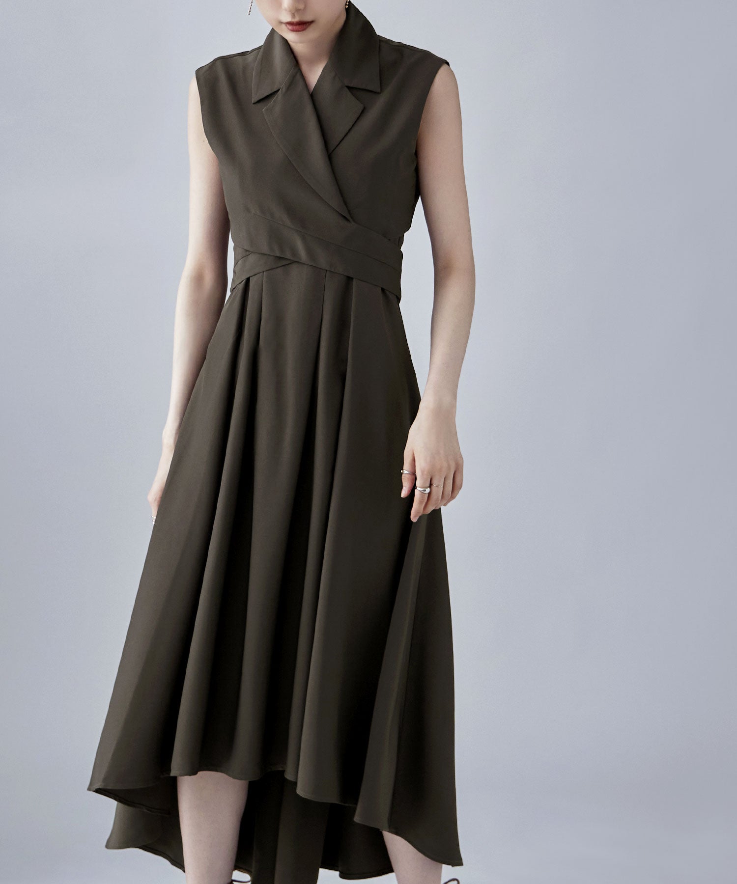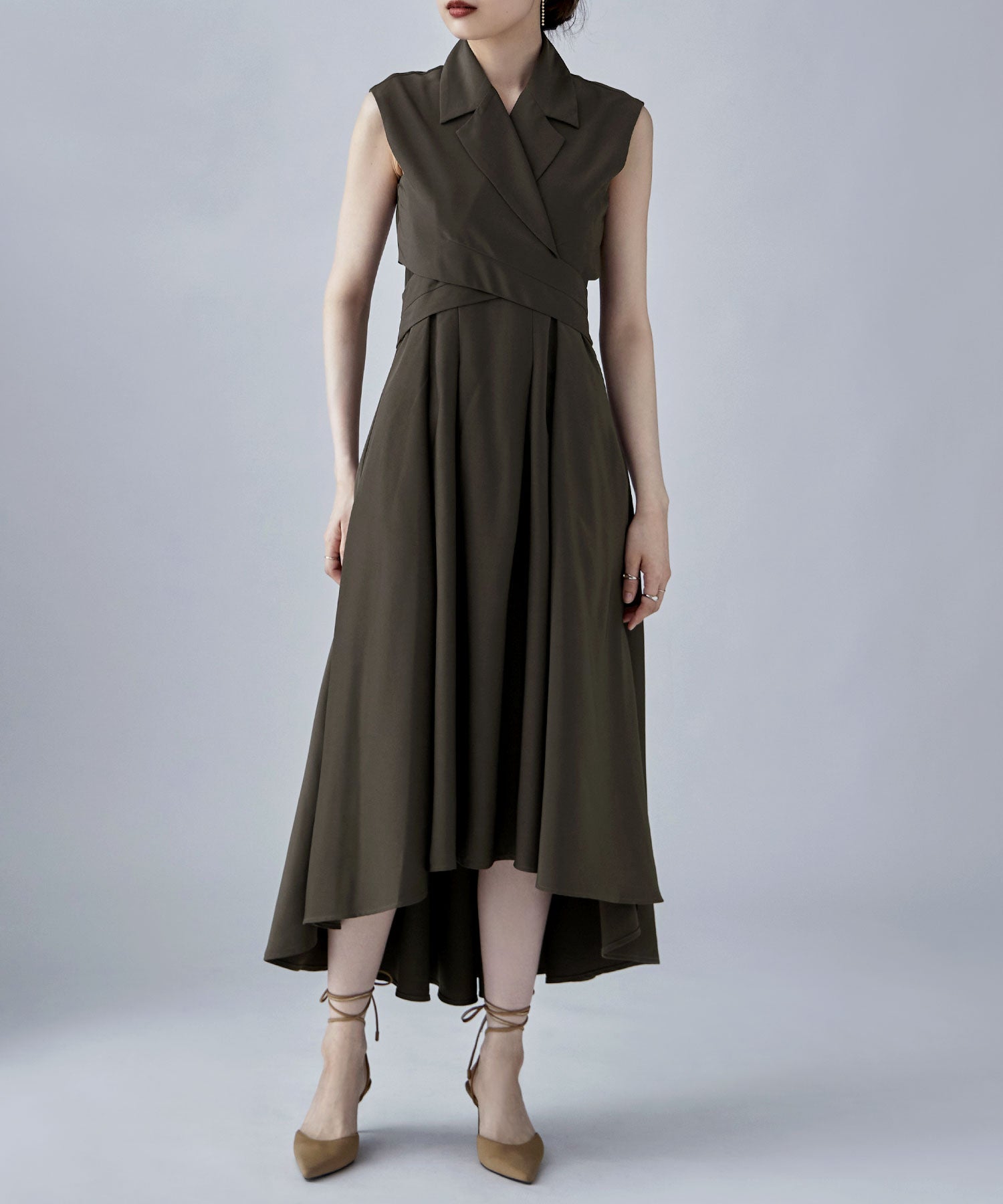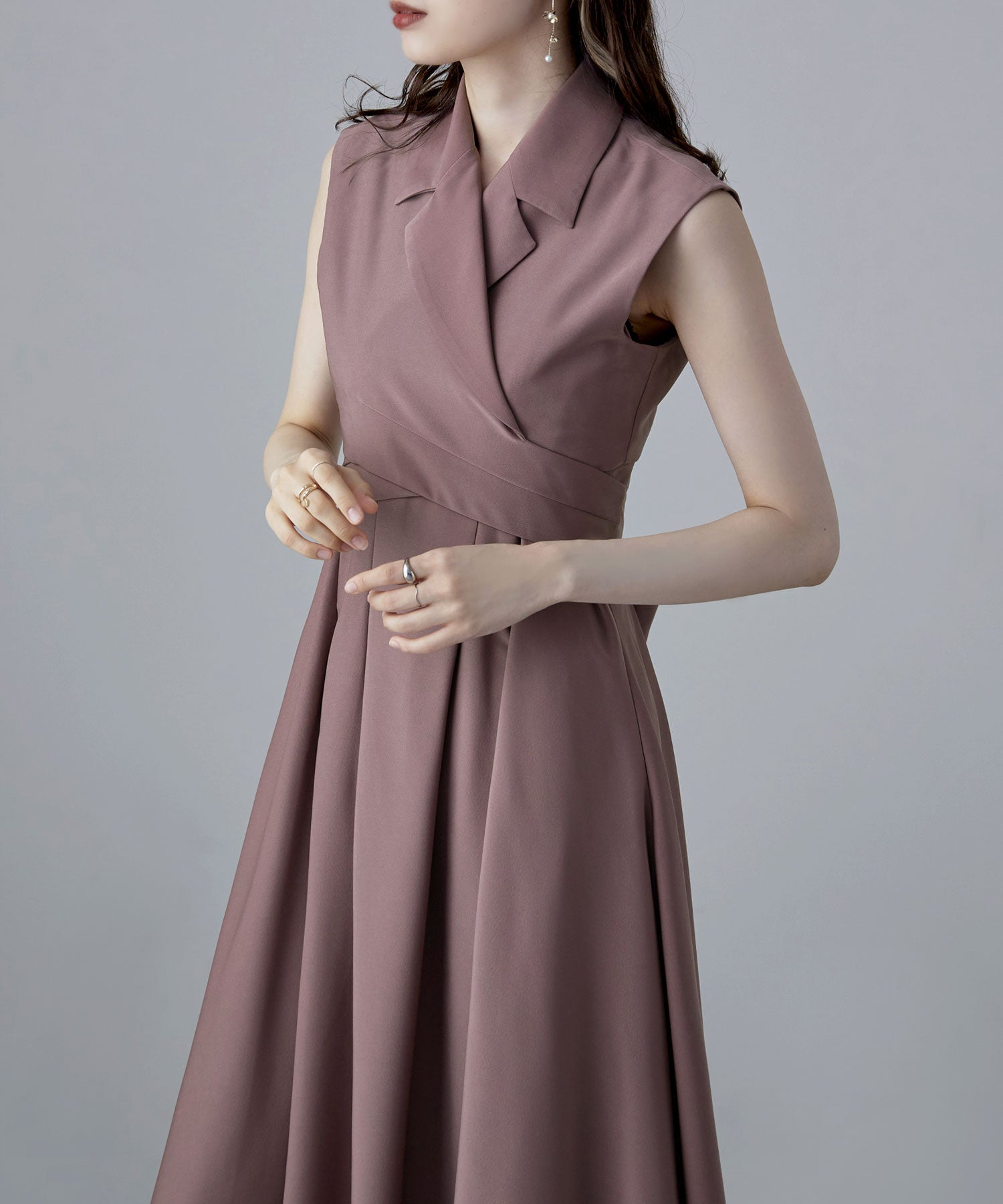 Rname Many wayジャケットライクスリーブレスドレス ワンピ ワンピース ドレス フレアドレス キャミワンピ オケージョン ノースリーブ オケワンピ テーラード ジャケット カシュクール ロング マキシ丈 結婚式 二次会 パーティー