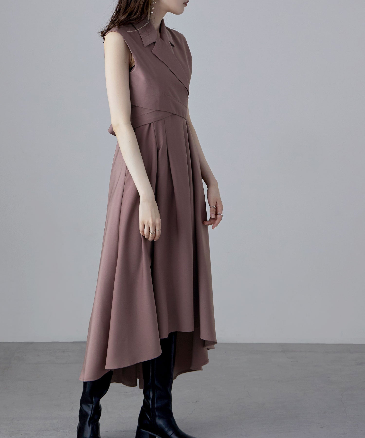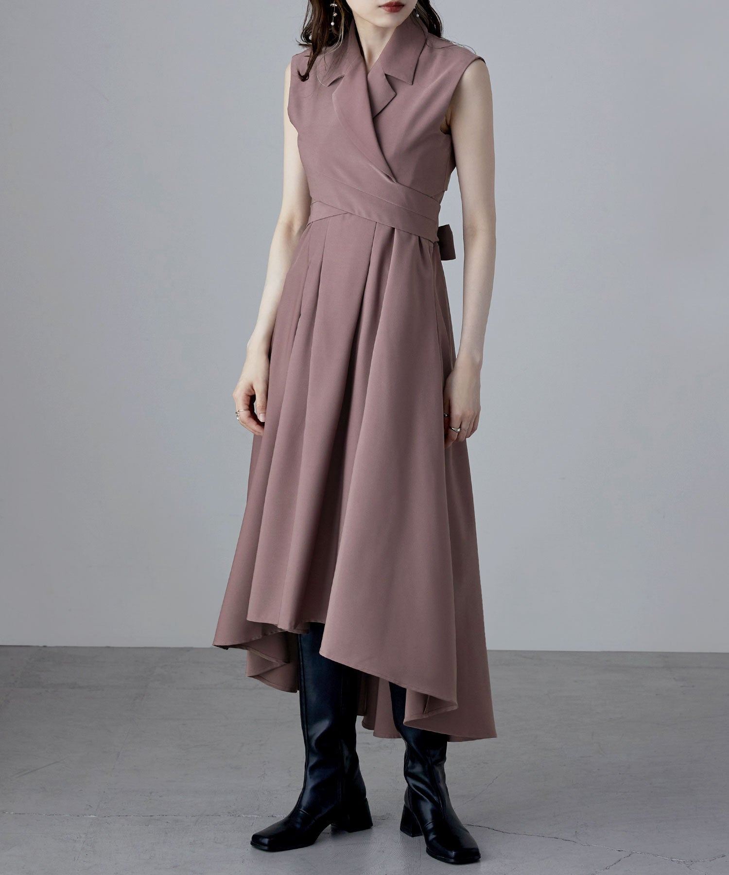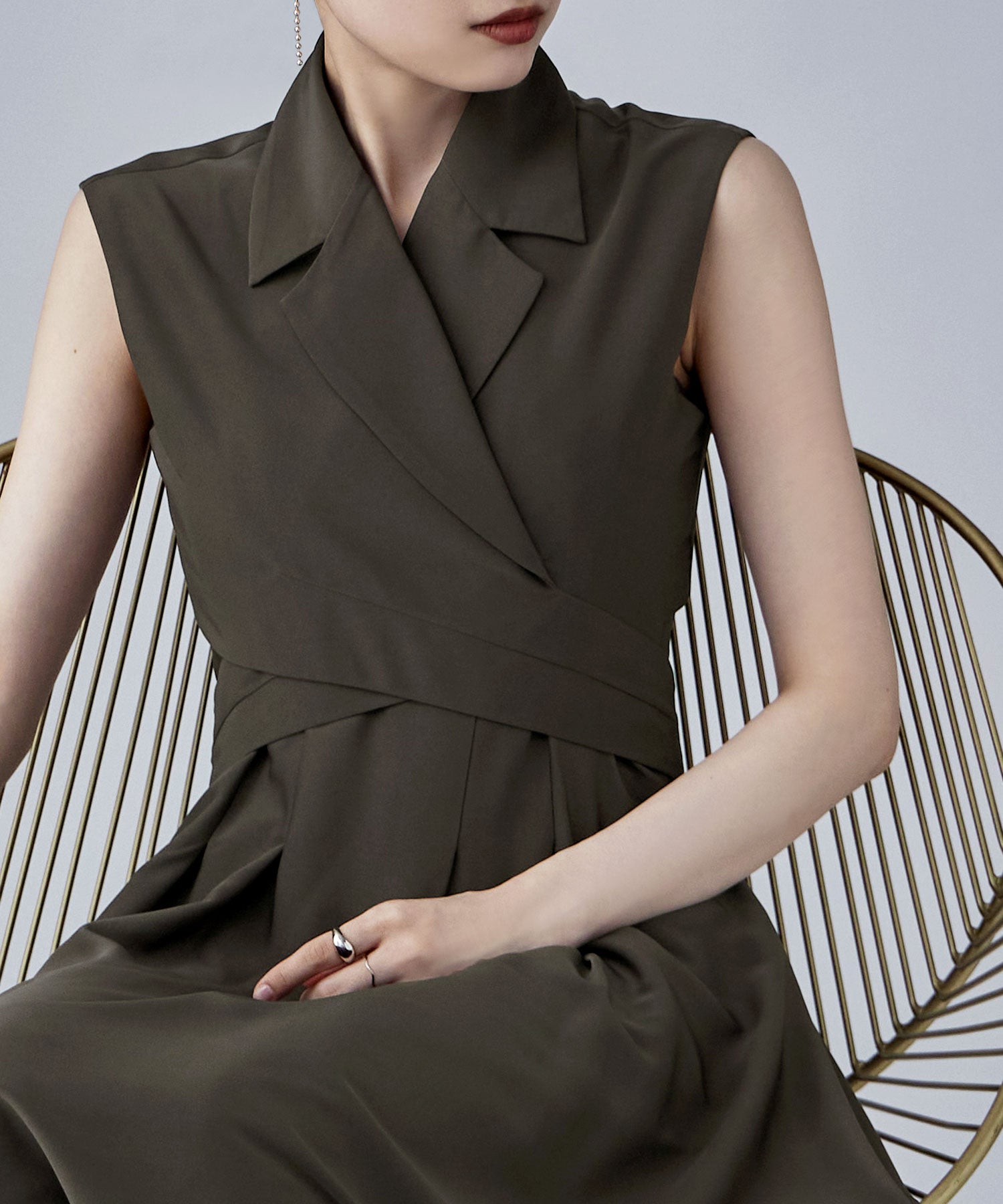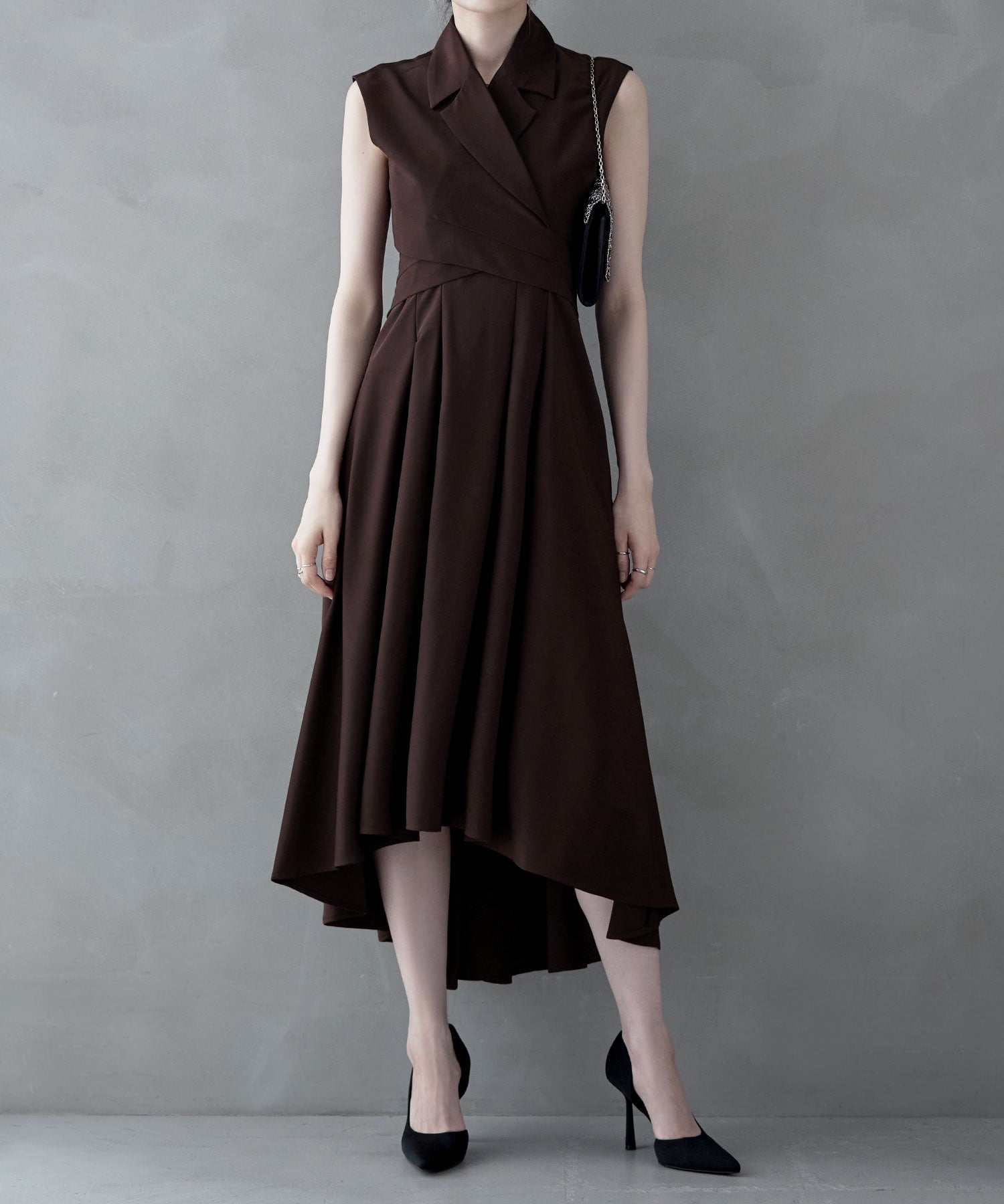 Rname Many wayジャケットライクスリーブレスドレス ワンピ ワンピース ドレス フレアドレス キャミワンピ オケージョン ノースリーブ オケワンピ テーラード ジャケット カシュクール ロング マキシ丈 結婚式 二次会 パーティー