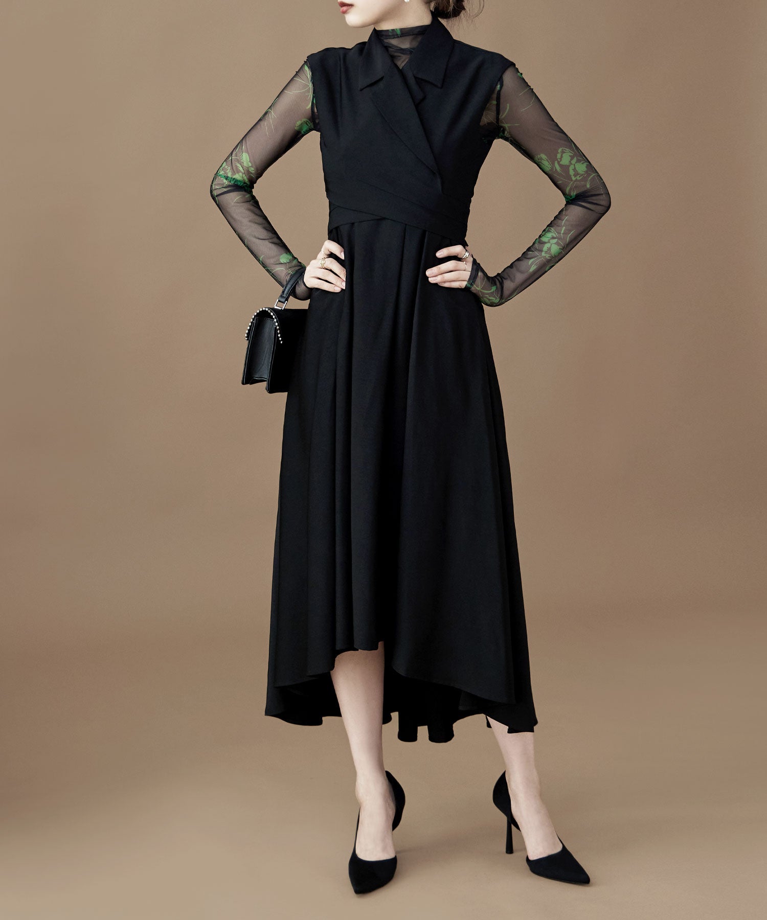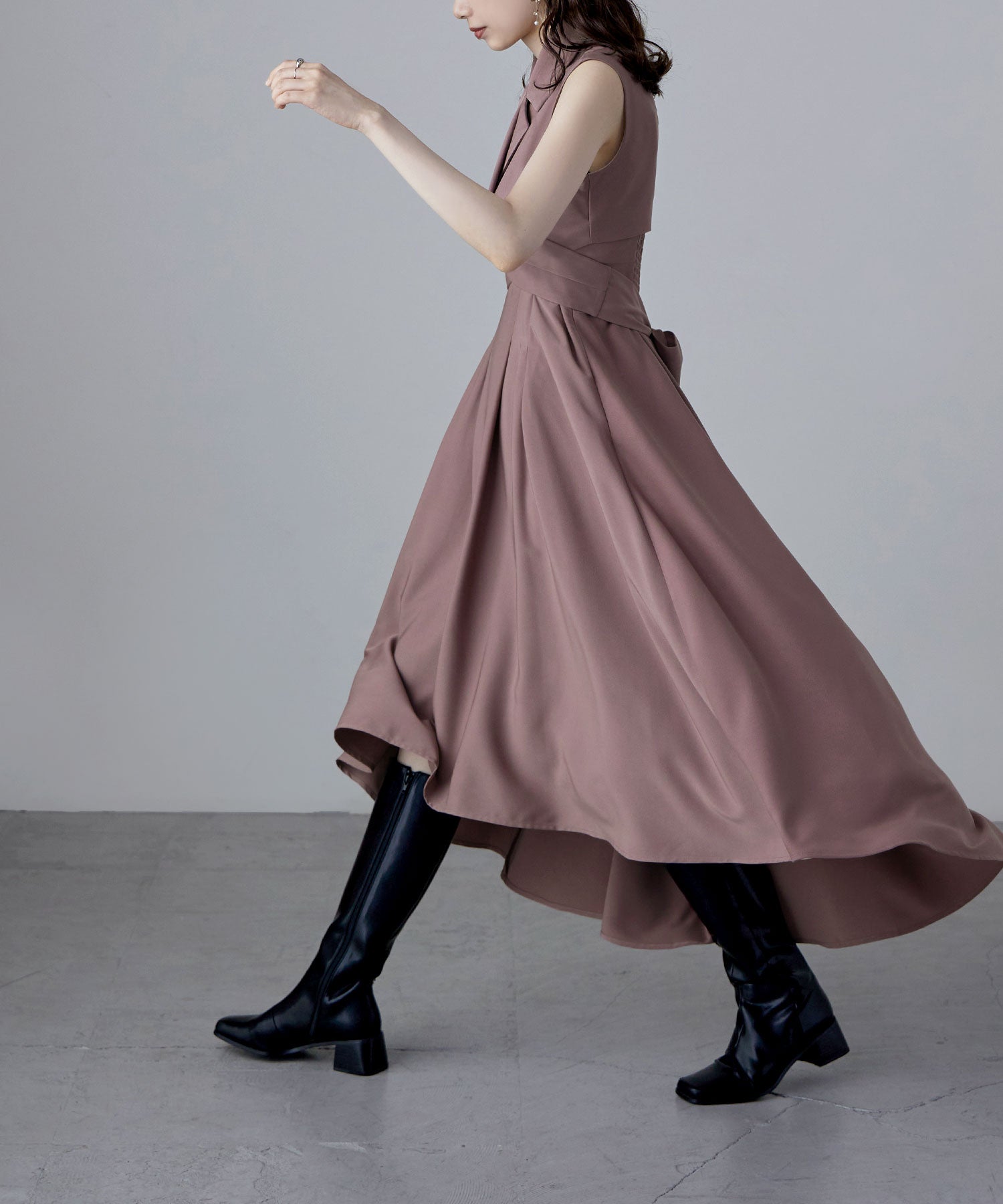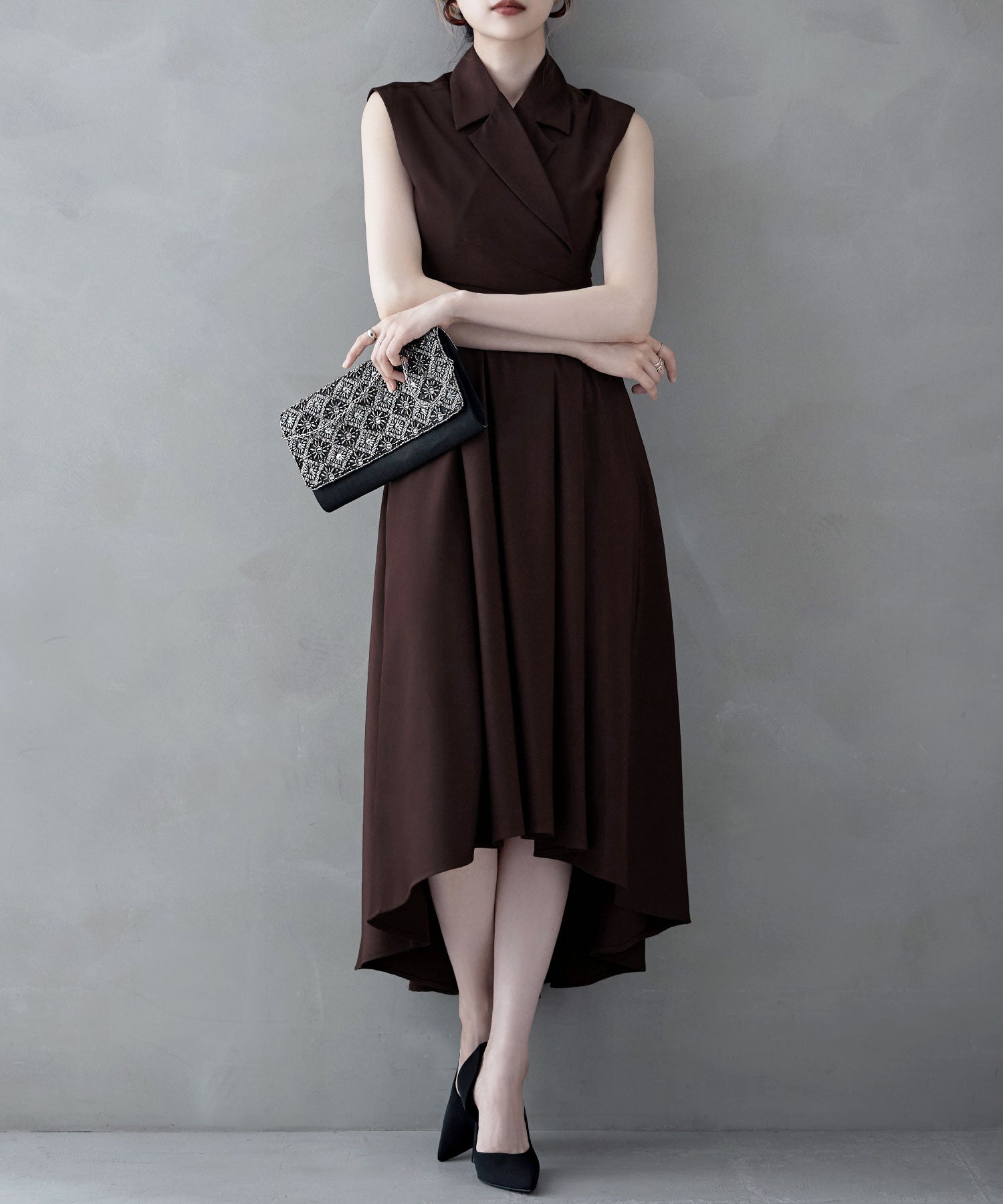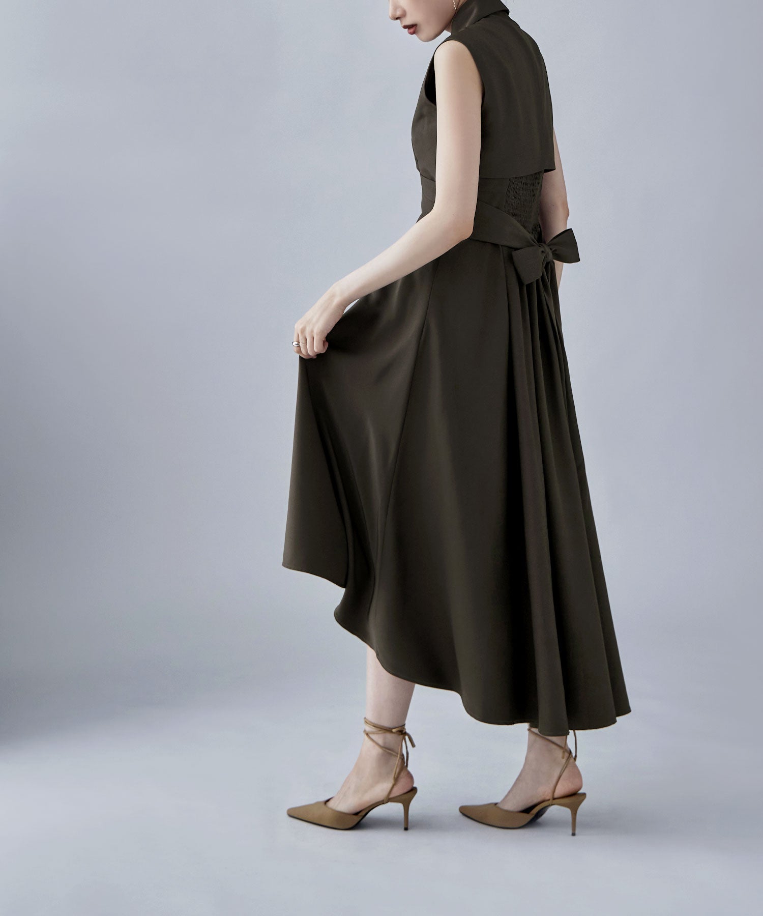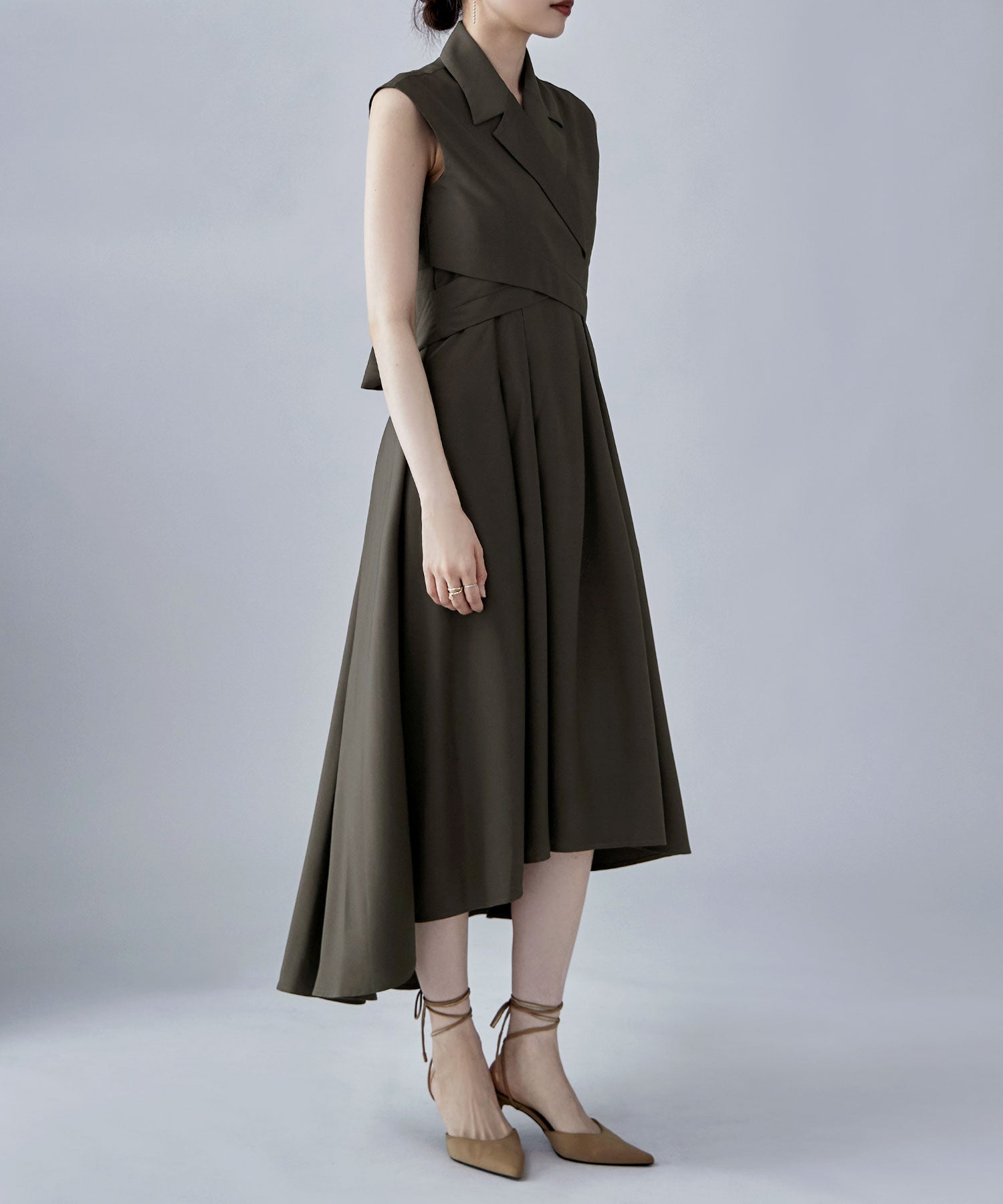 Rname Many wayジャケットライクスリーブレスドレス ワンピ ワンピース ドレス フレアドレス キャミワンピ オケージョン ノースリーブ オケワンピ テーラード ジャケット カシュクール ロング マキシ丈 結婚式 二次会 パーティー