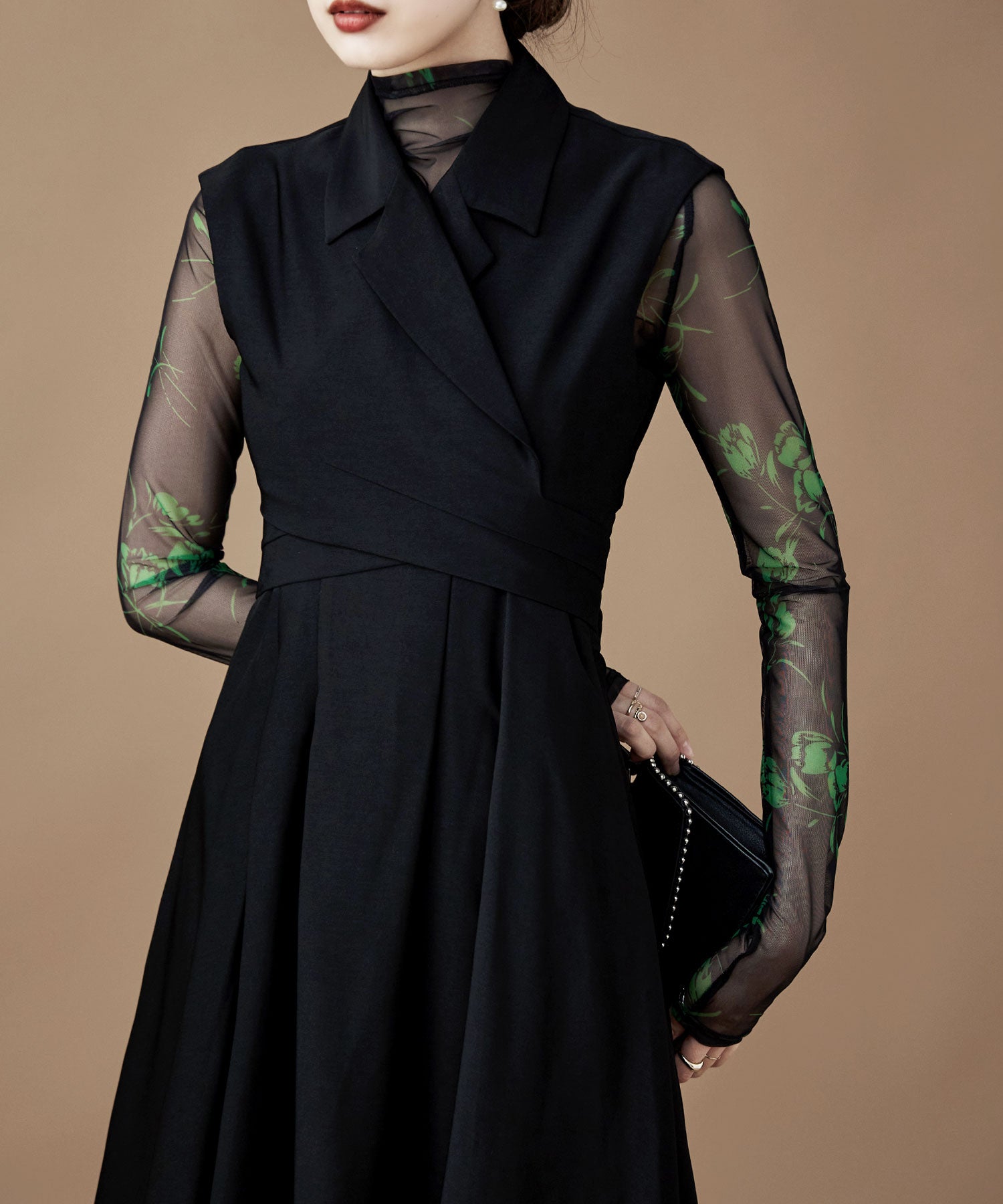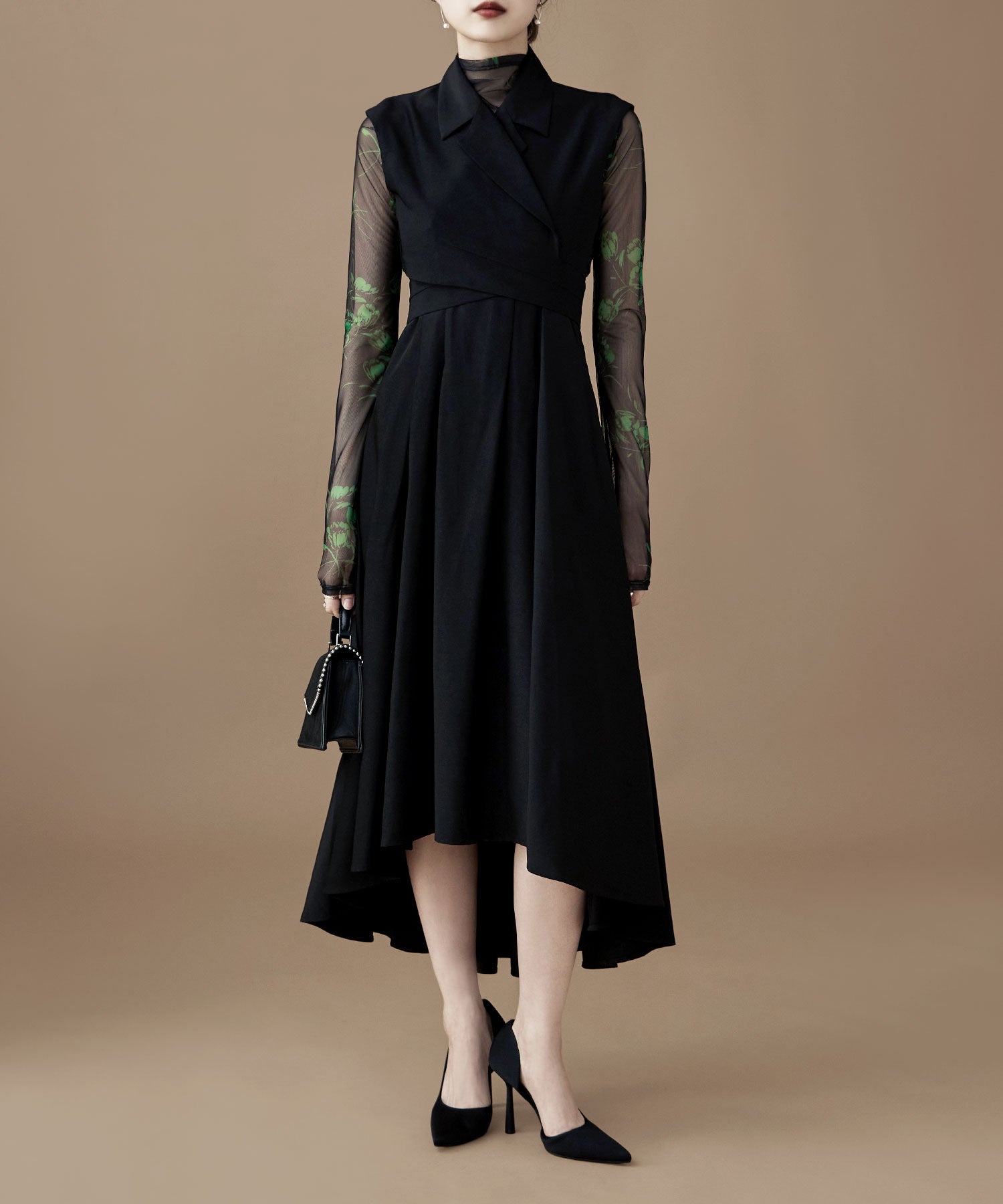 モードな印象を全面に出した、ショートジャケットとキャミワンピがセットのオケージョンワンピ。