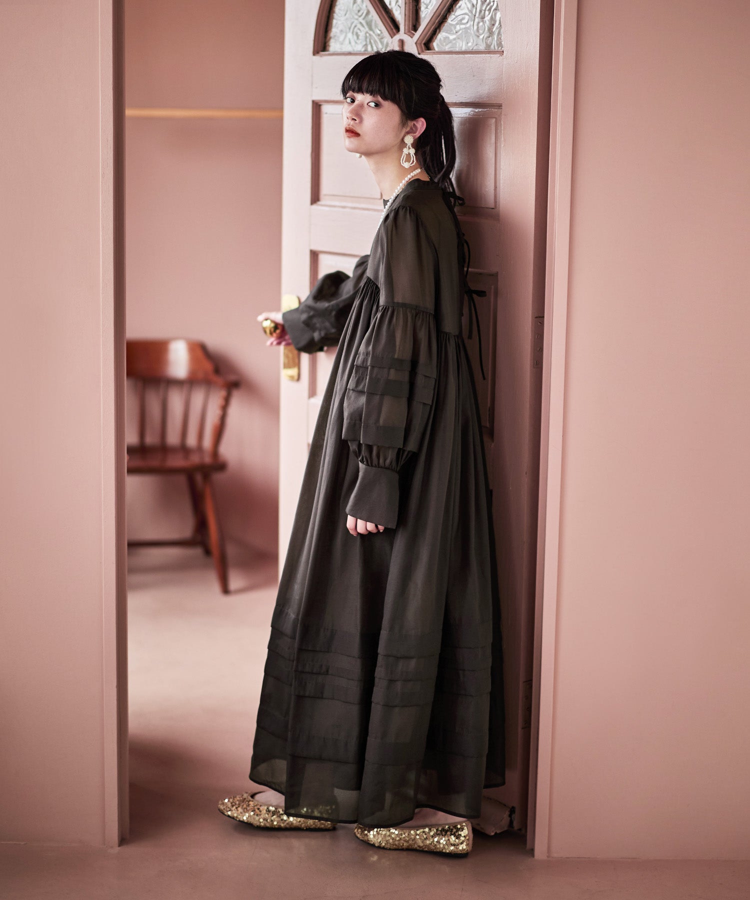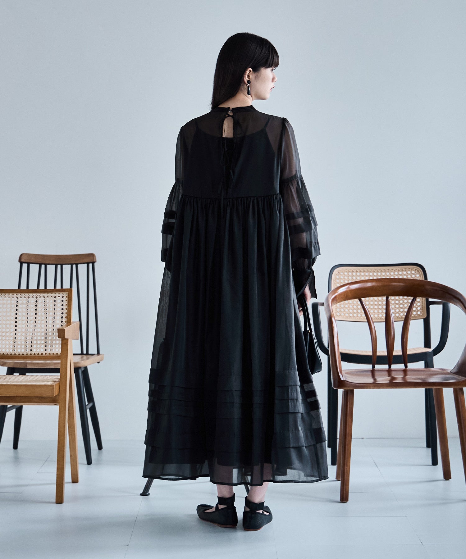 連なるバックリボンで後ろ姿も抜かりなく、どの角度からも着映える華やかさも嬉しいポイントです。
