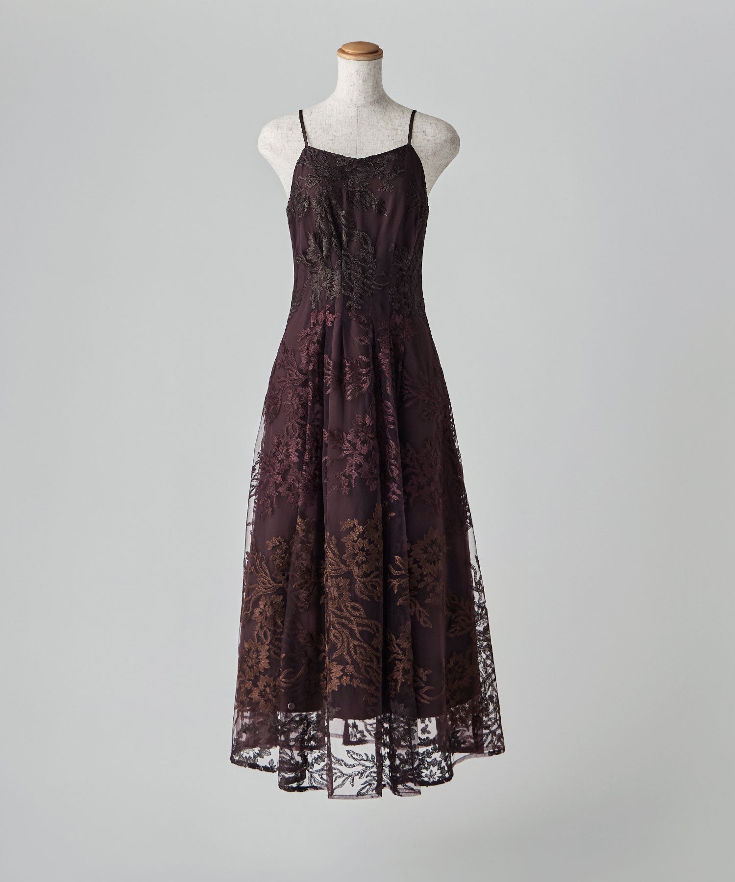 Rname グラデーションレースボレロ&ウエストタックフレアドレス ワンピース ワンピ ドレス レース 五分袖 ロング マキシ丈 オケワンピ キャミワンピ フレア ジャカード セットアップ チュチュ チュール 結婚式 二次会 パーティー 女子会 フォーマル オケージョン キャミソール
