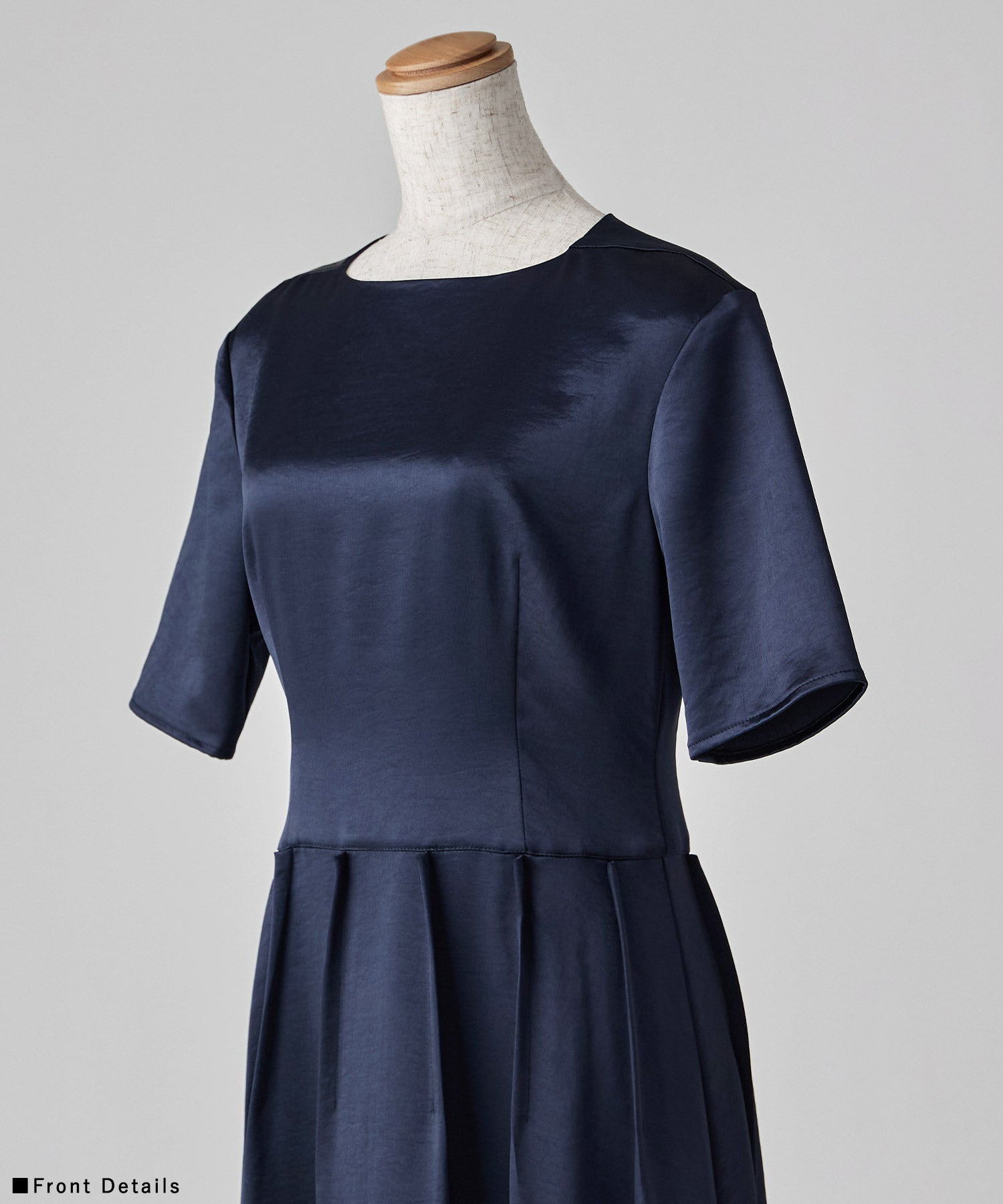 なめらかなノンストレスシルエットで気品を漂わせ、きちんと感とリラックス感を兼ね備えたetoll.オリジナルのオケージョンドレス。