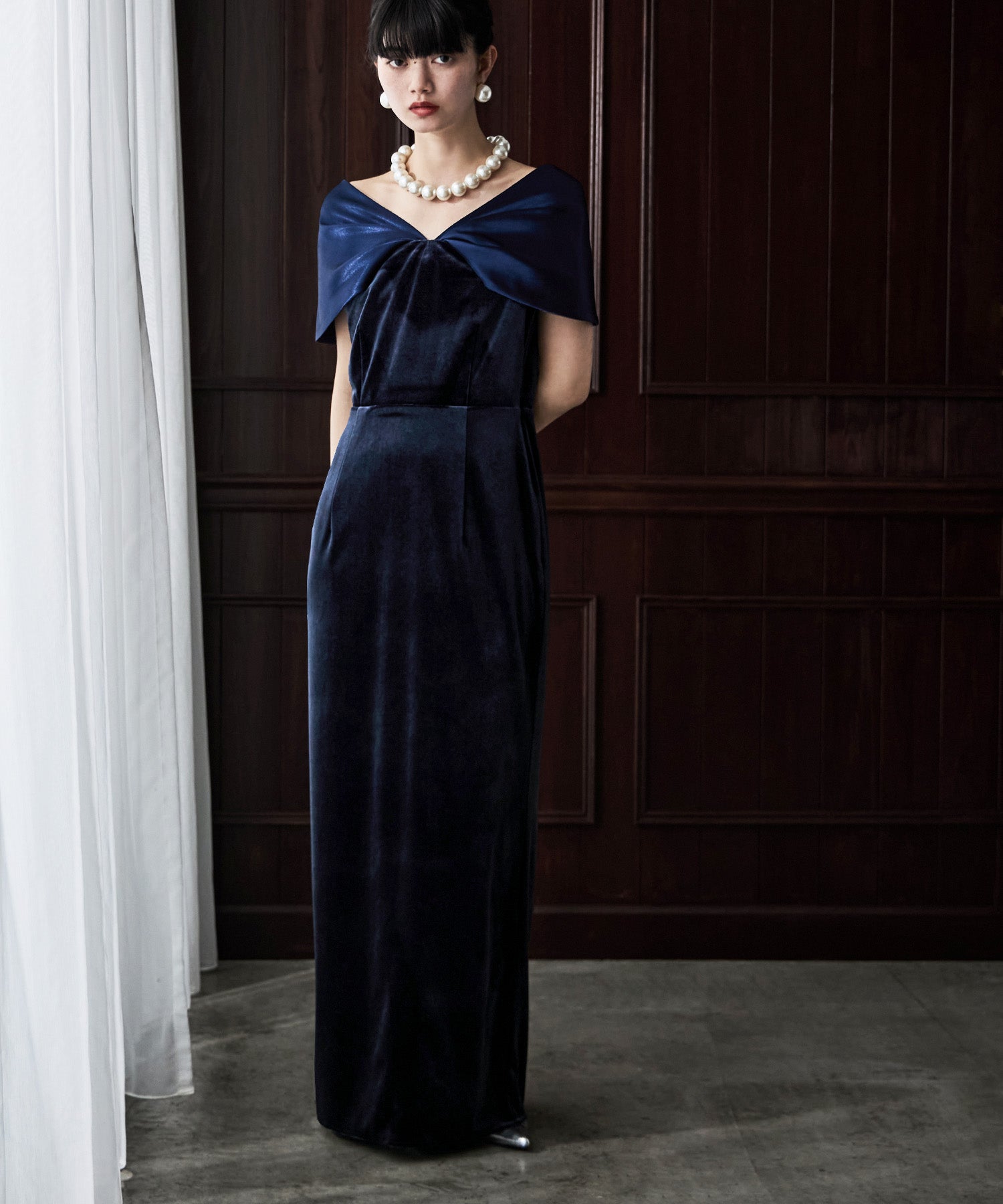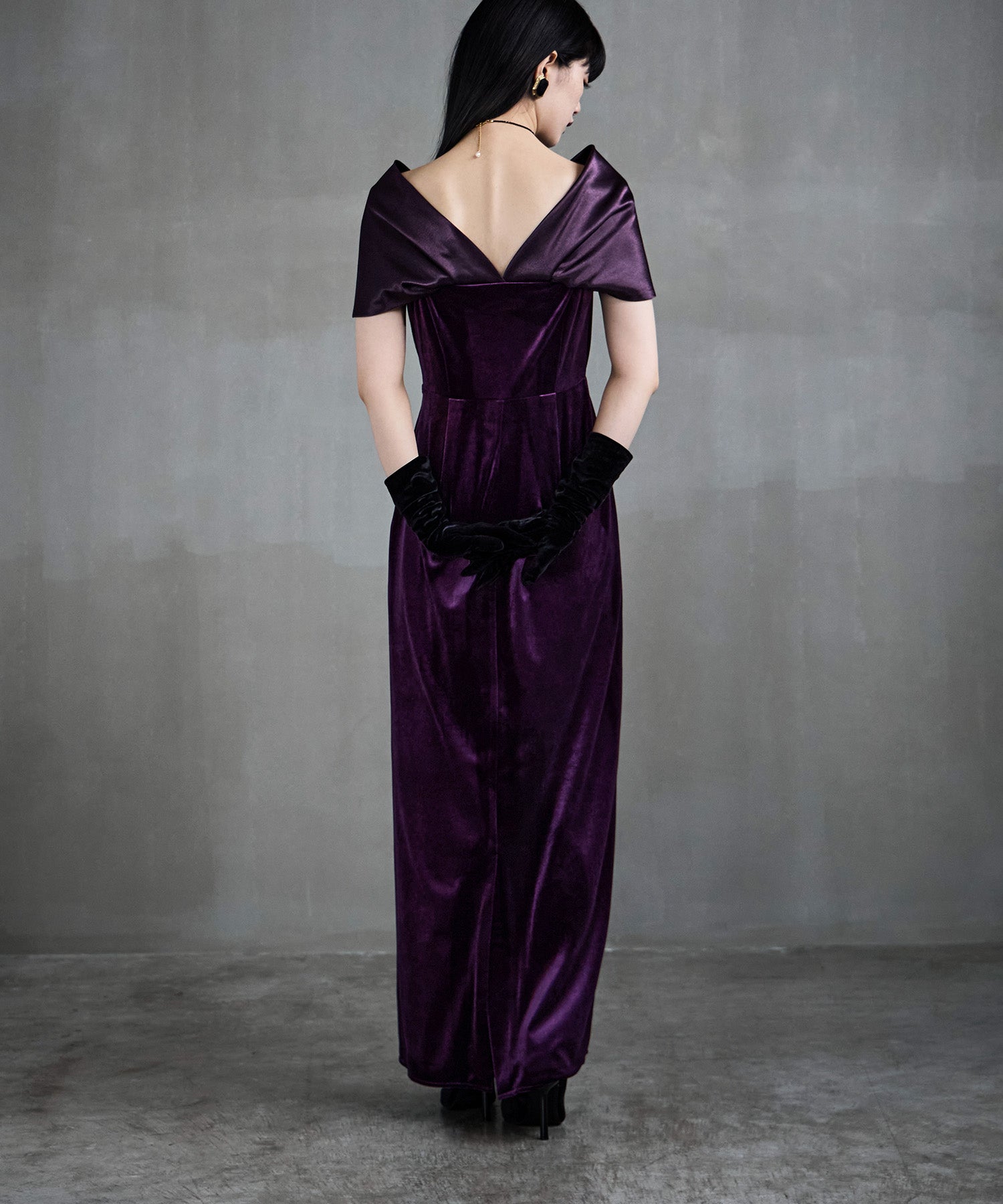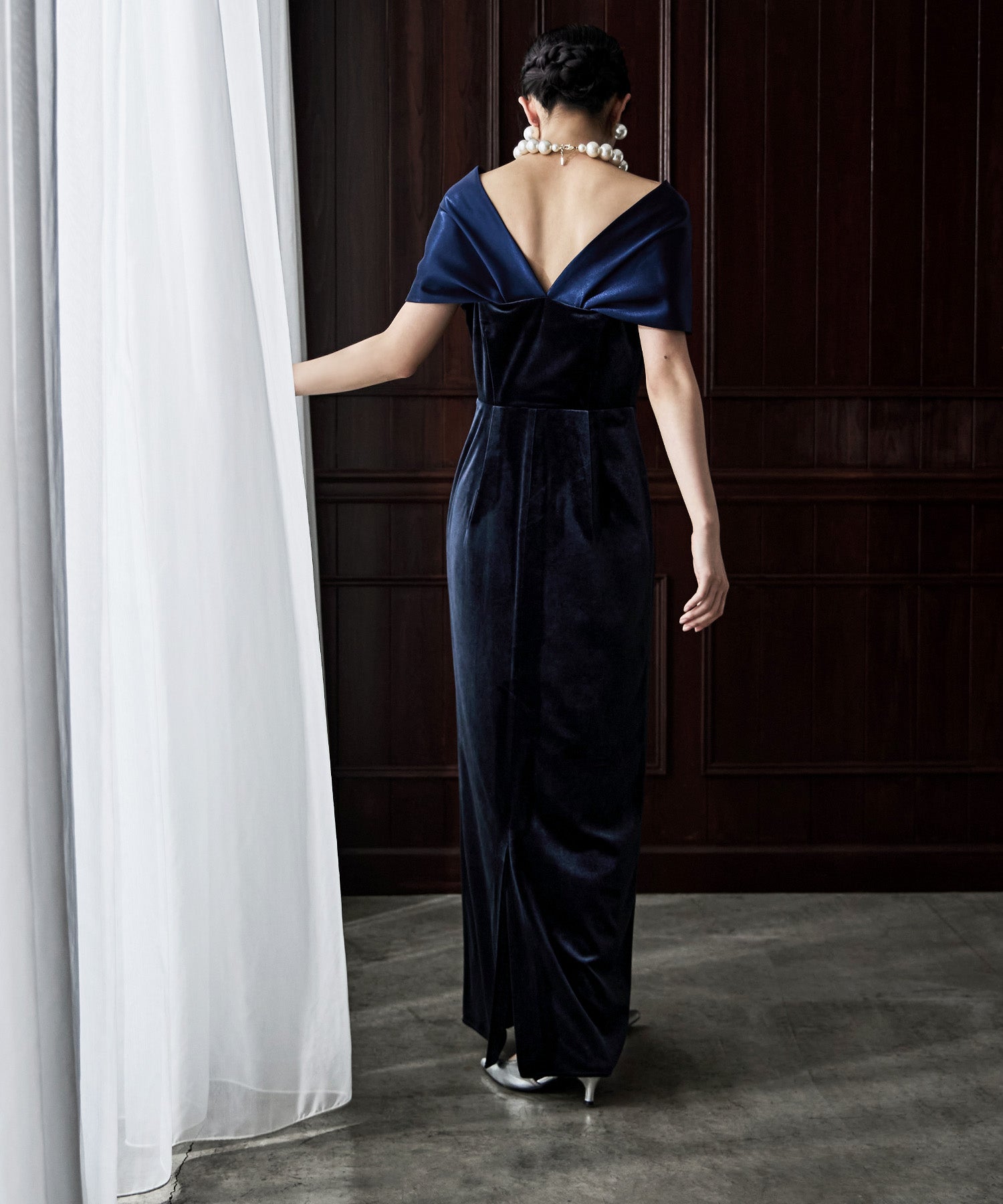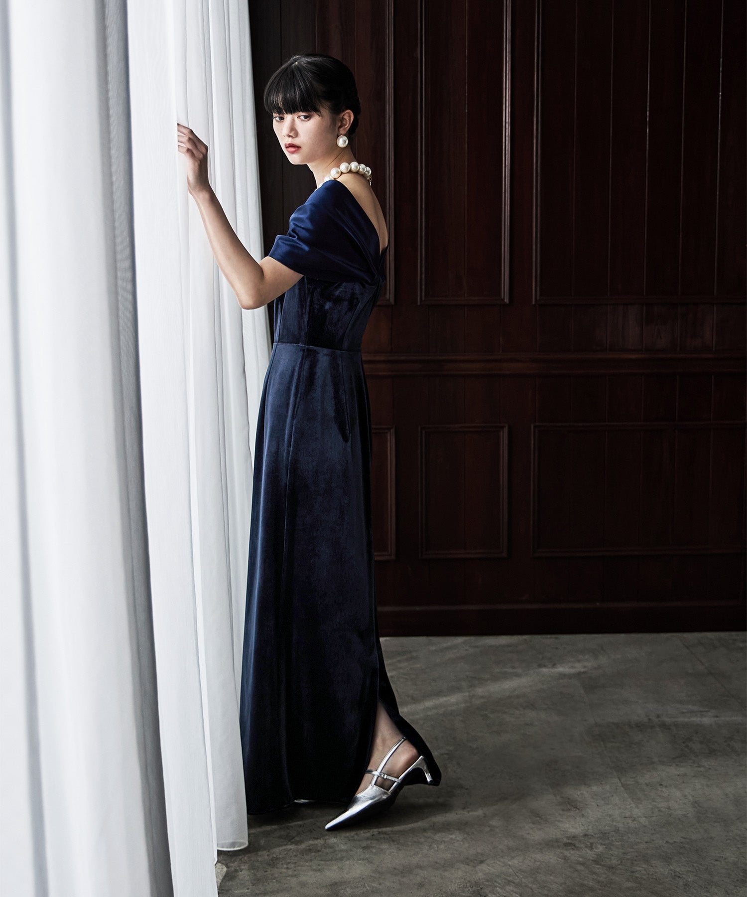 インパクトのあるモードなデザインをベロアに落とし込んだオケージョンドレス。