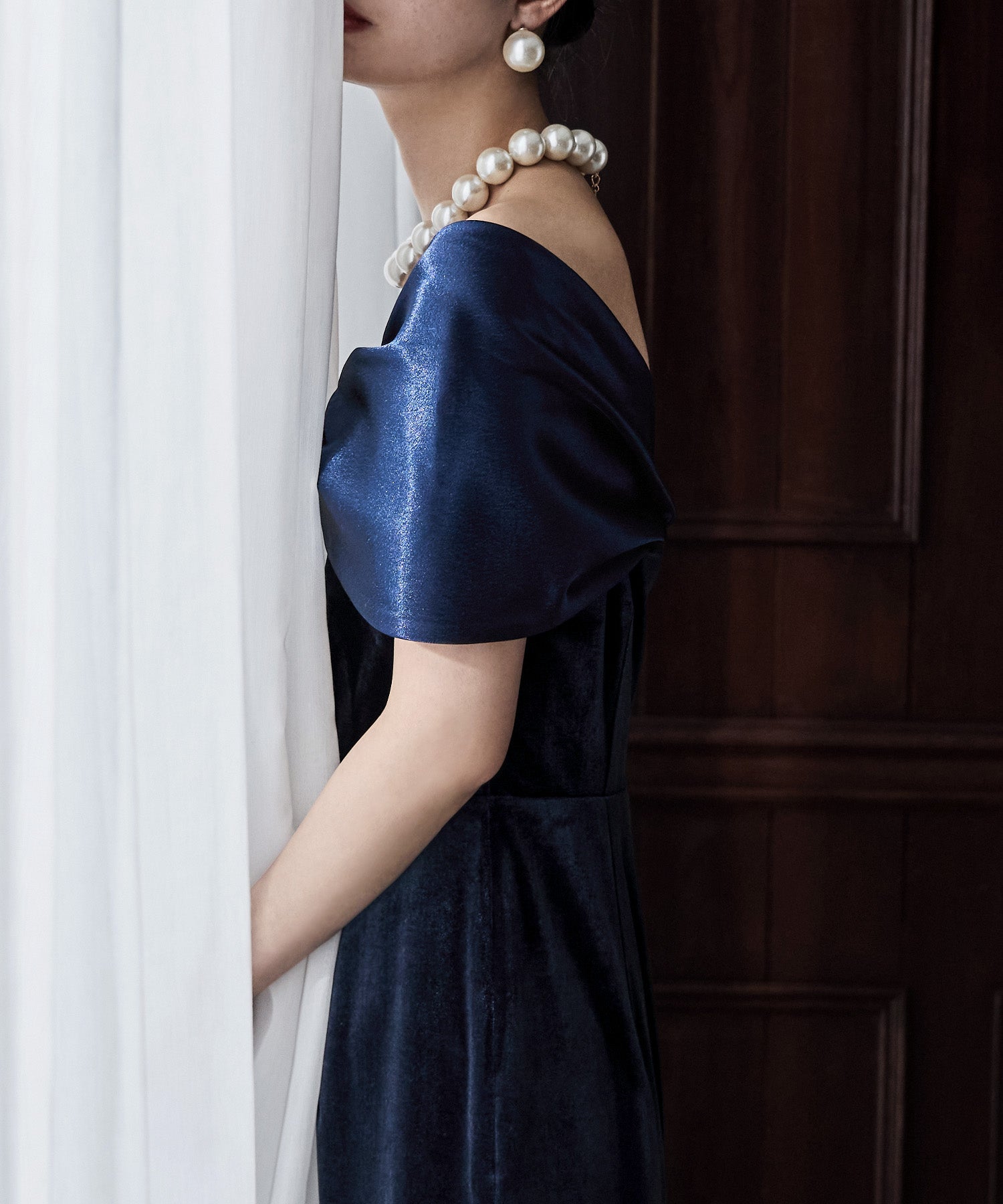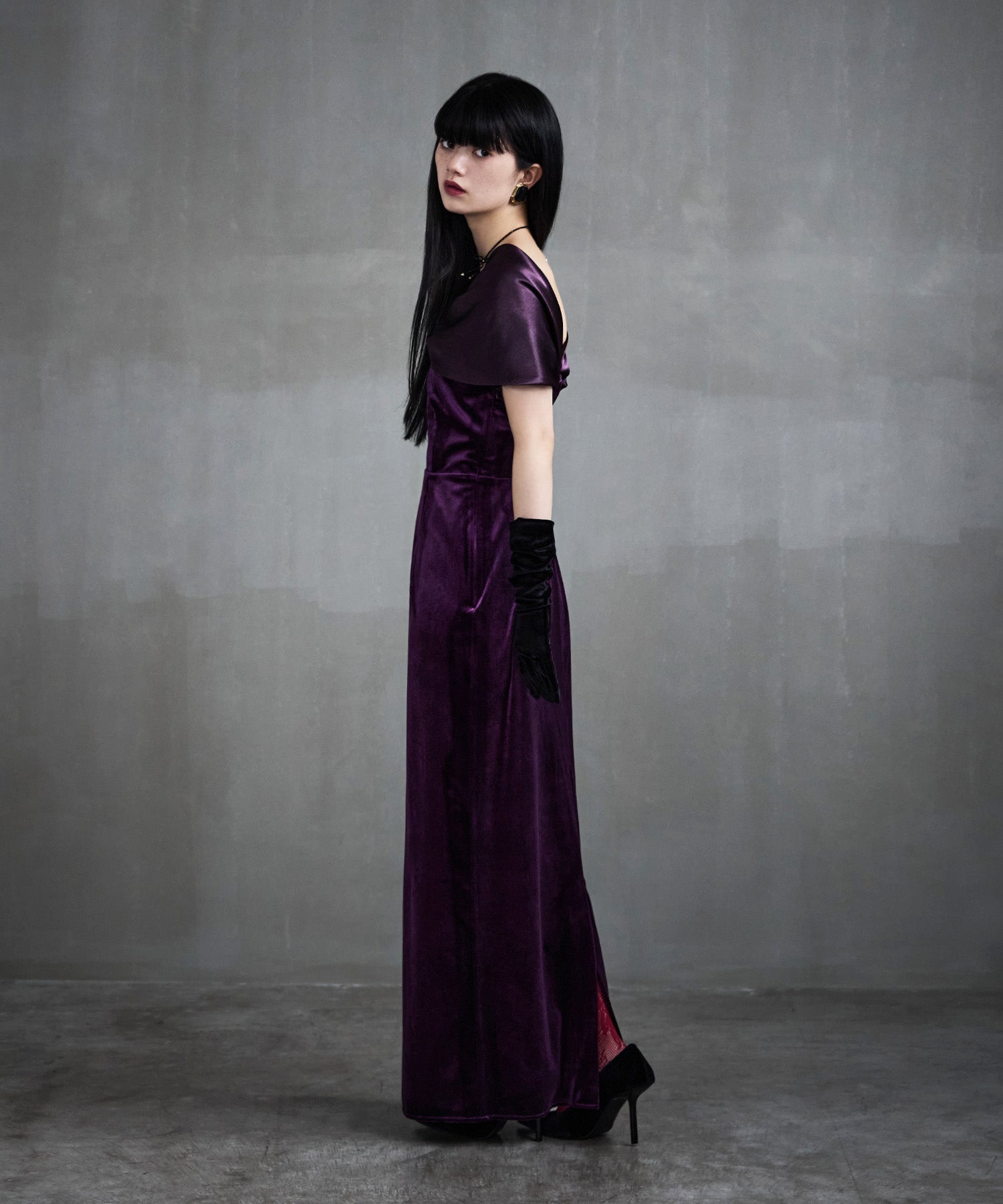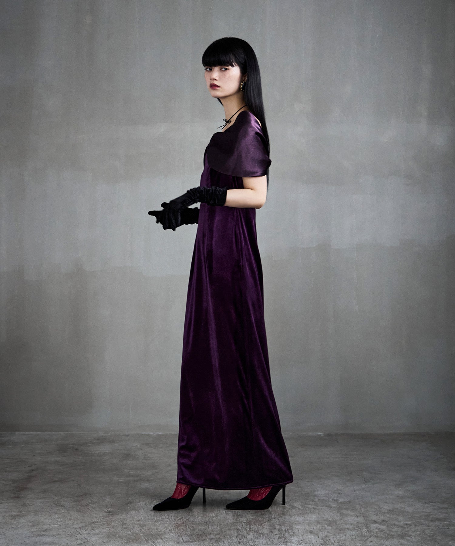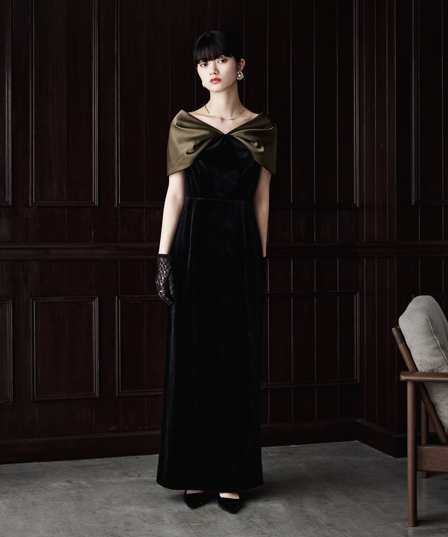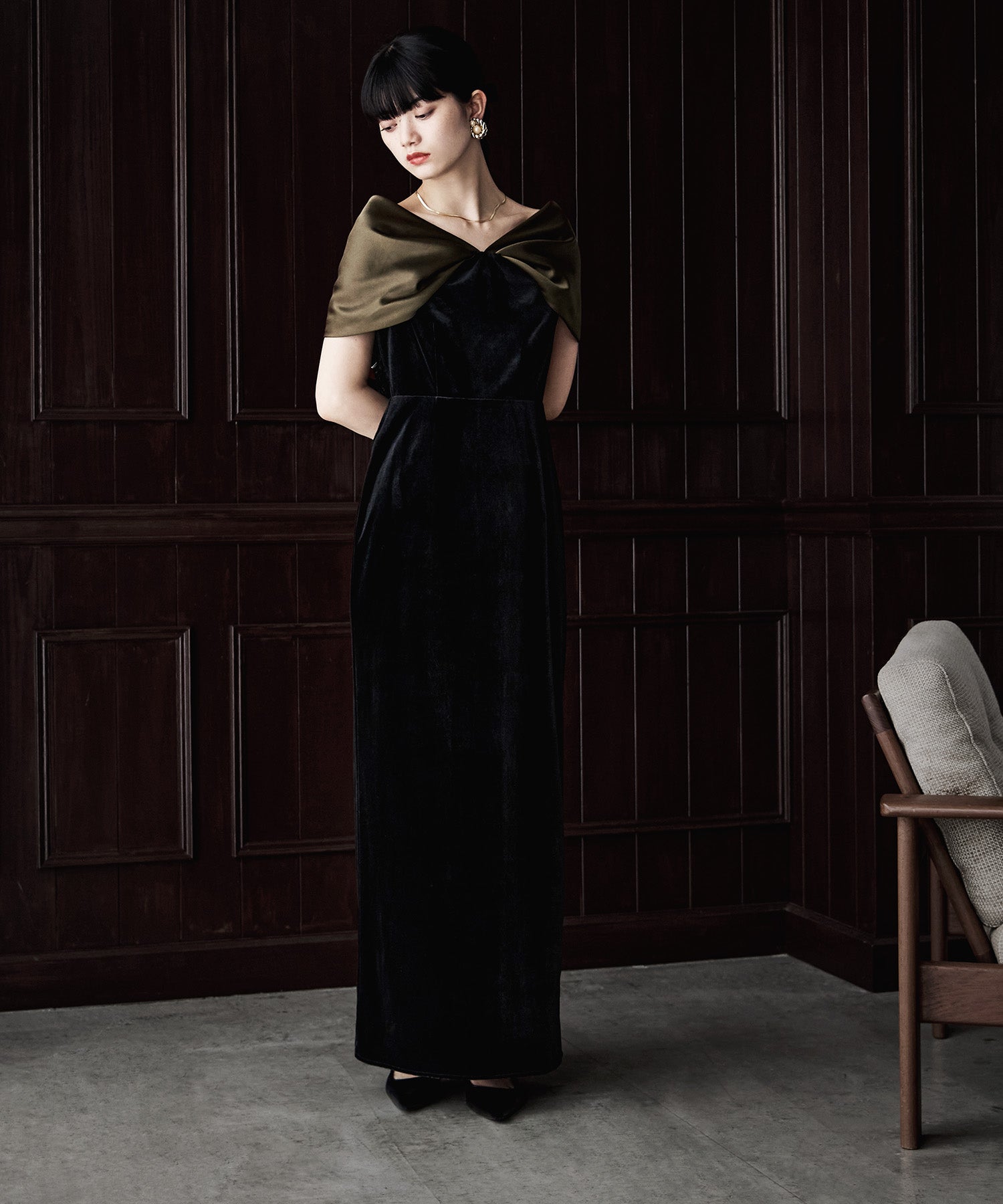 インパクトのあるモードなデザインをベロアに落とし込んだオケージョンドレス。