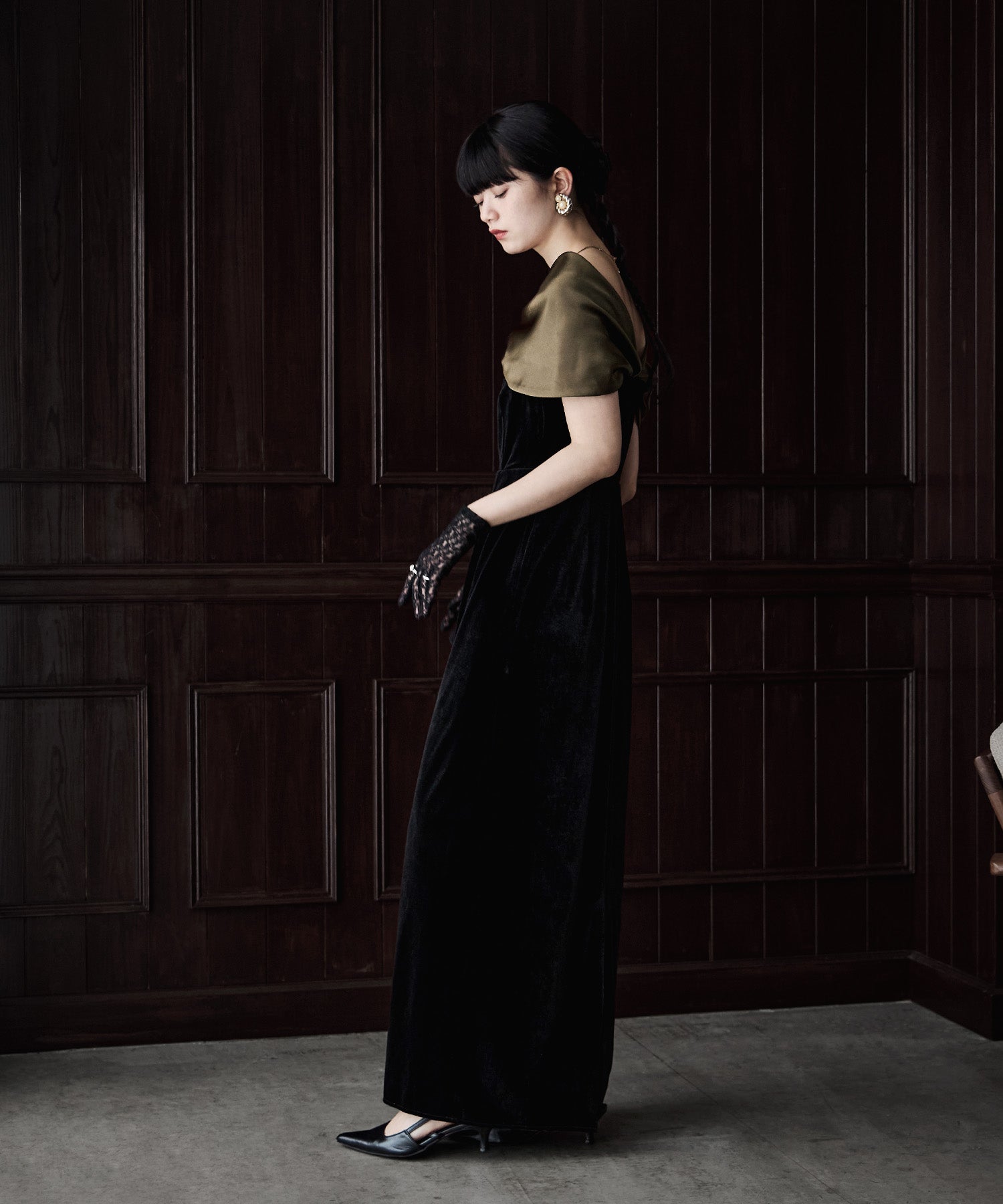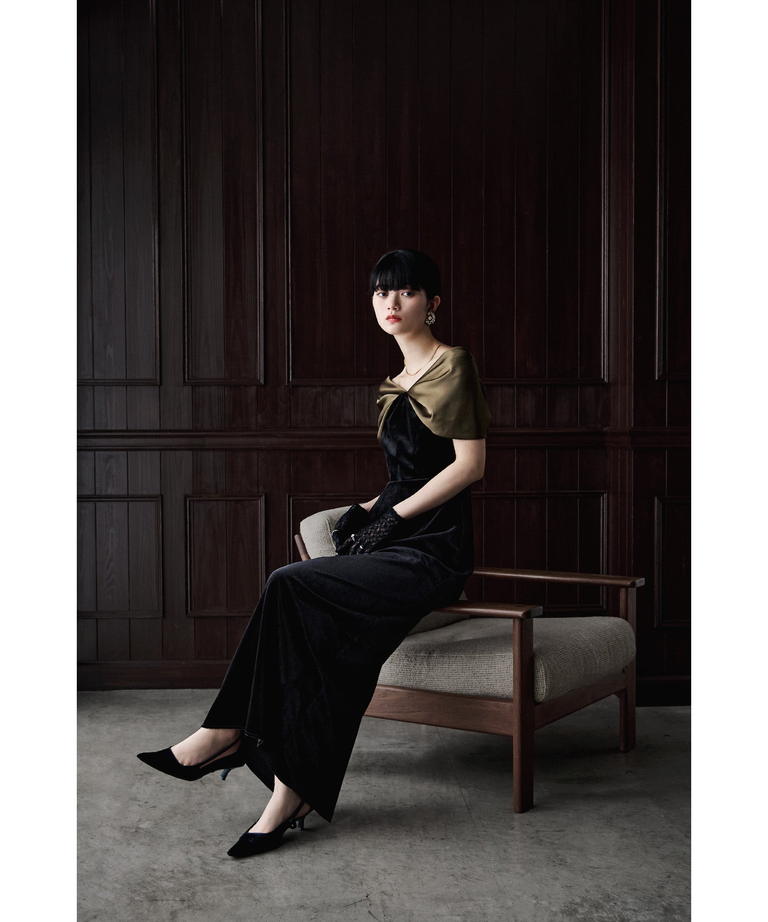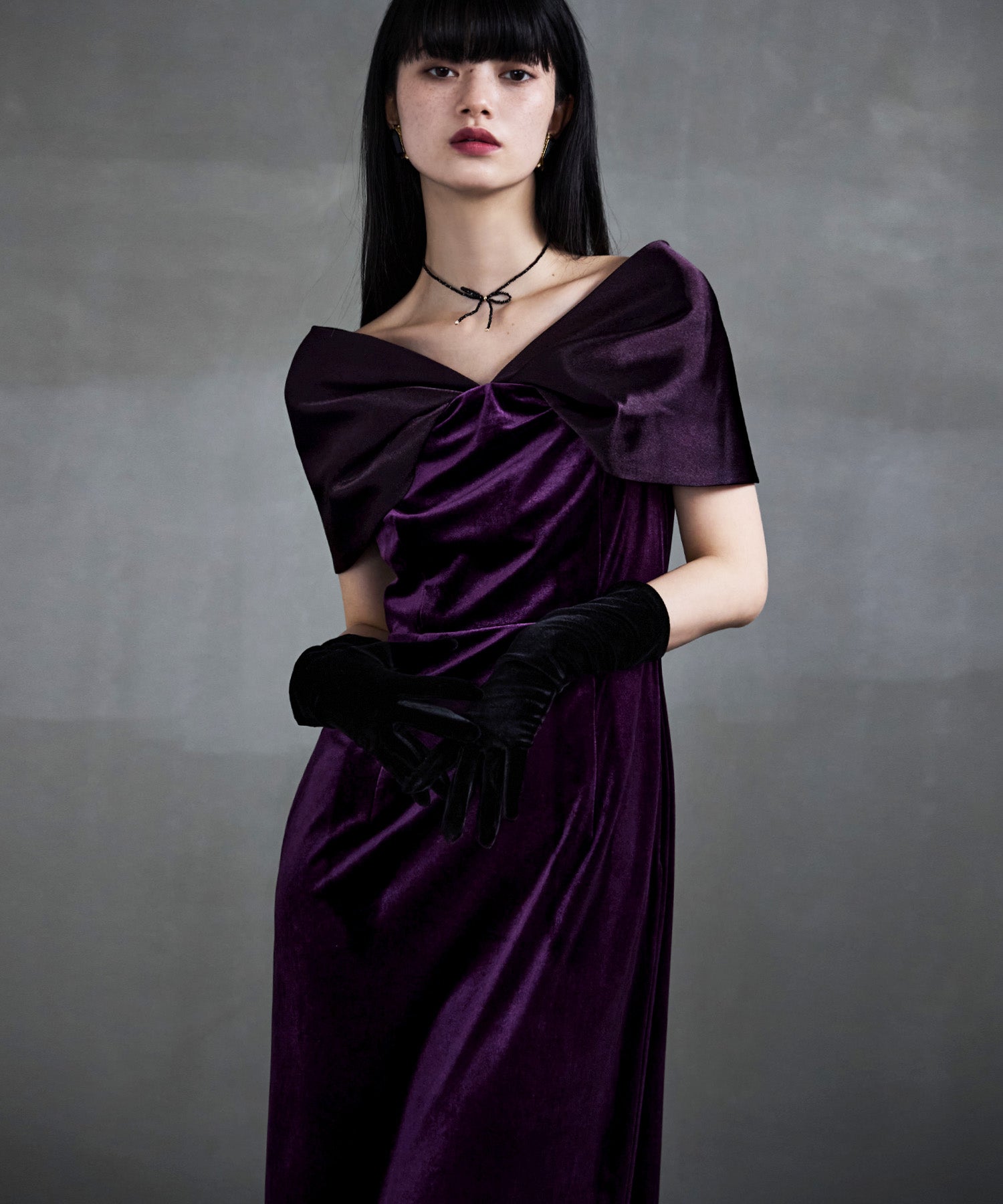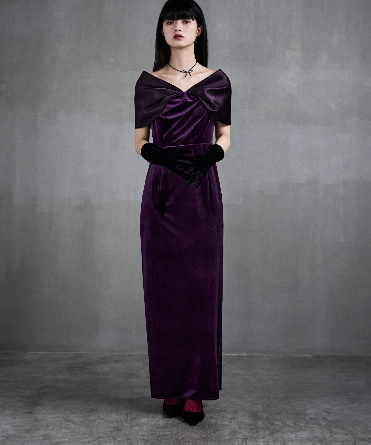 インパクトのあるモードなデザインをベロアに落とし込んだオケージョンドレス。