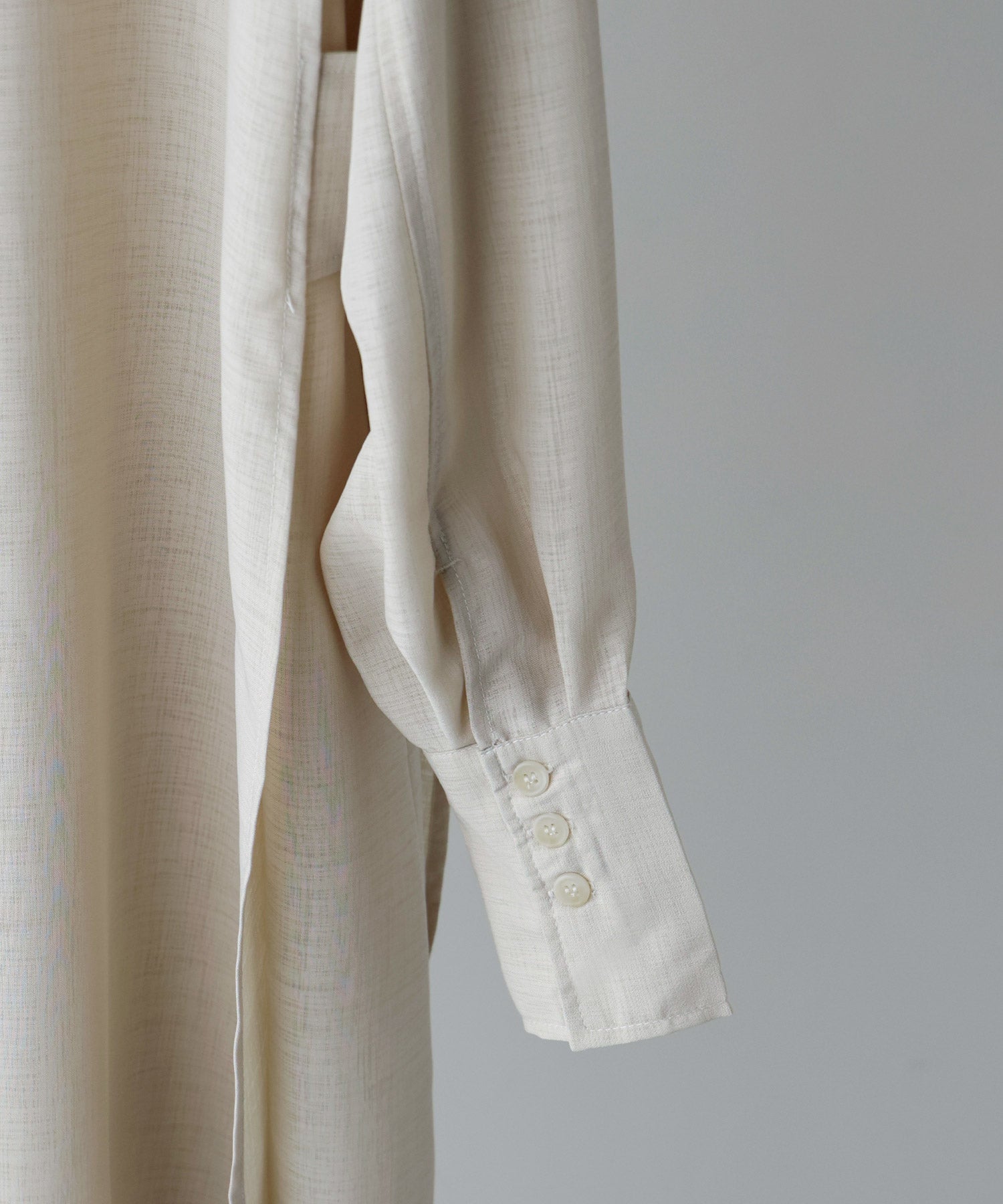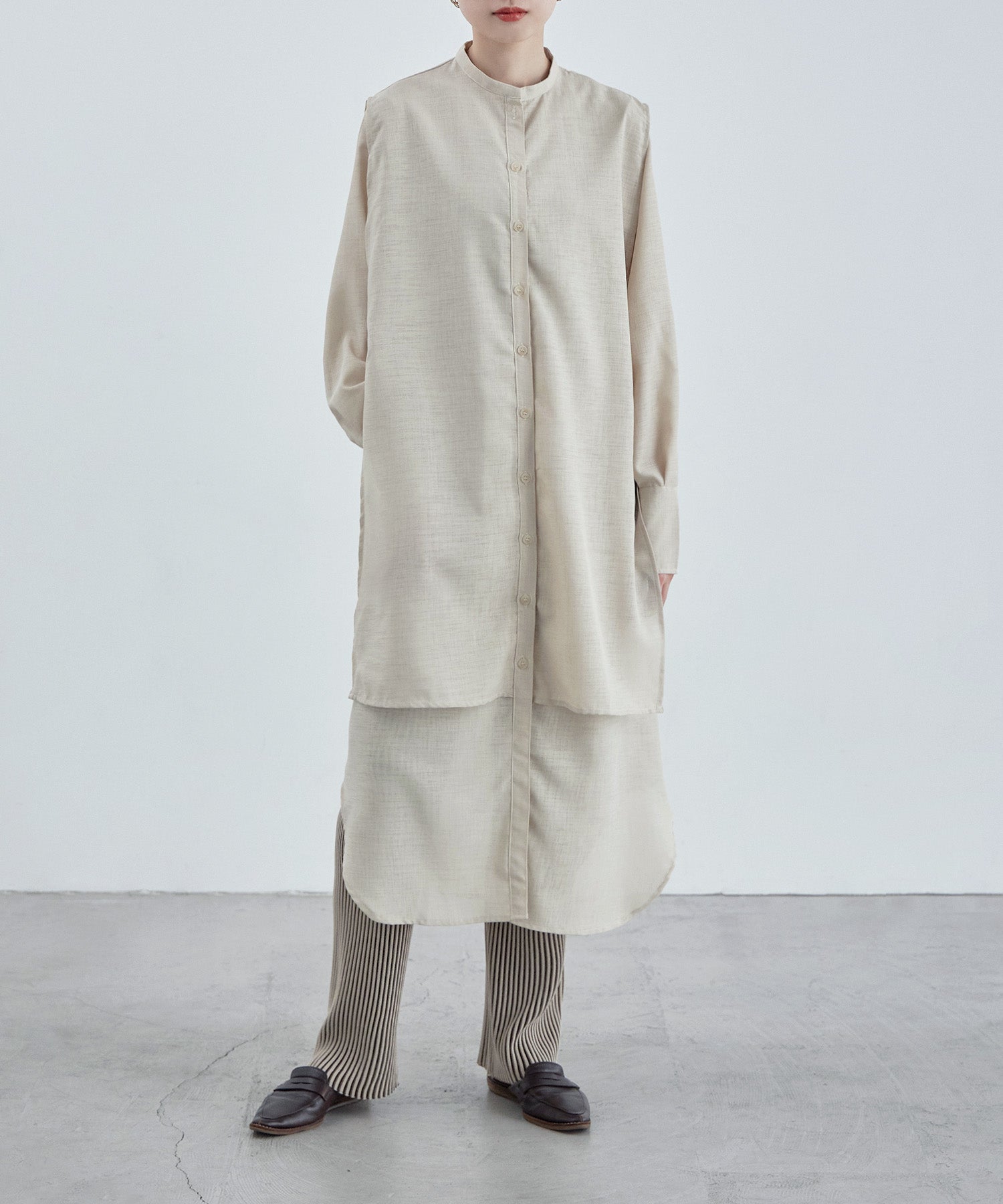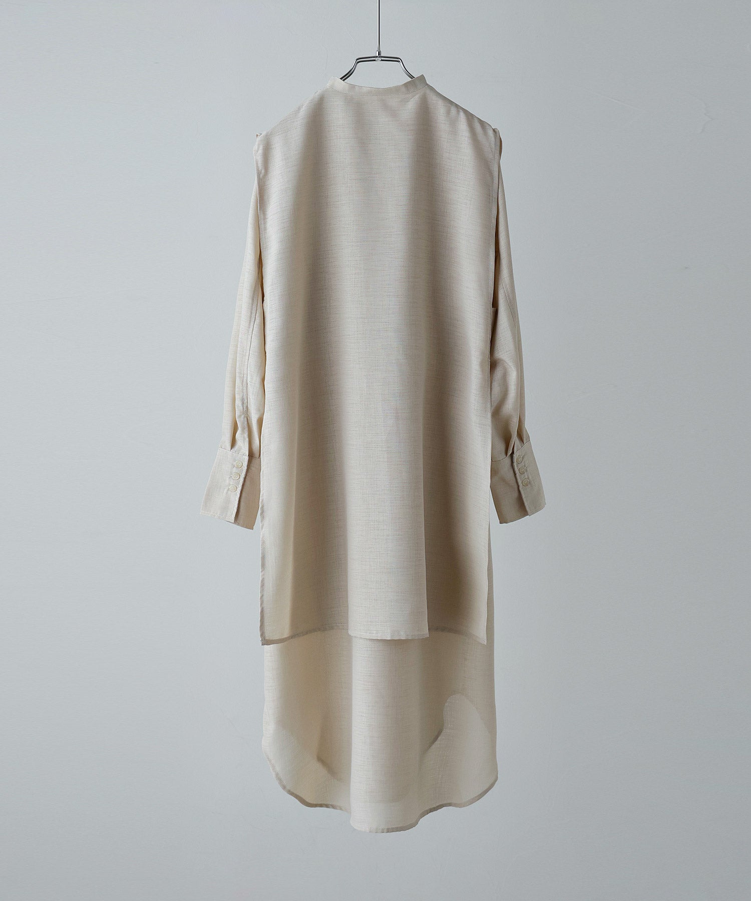 身頃部分をレイヤード風に仕上げ、さらに袖はカフスを長めにとったクラシカルな印象に仕上げました。