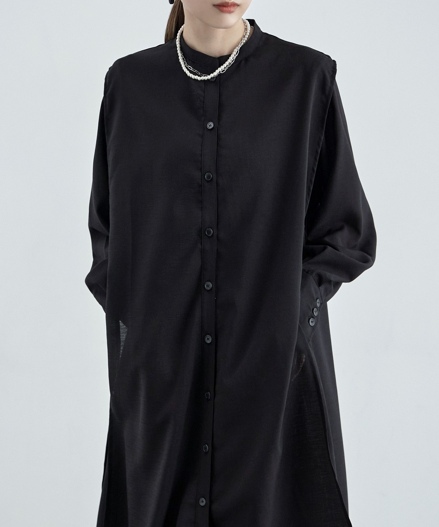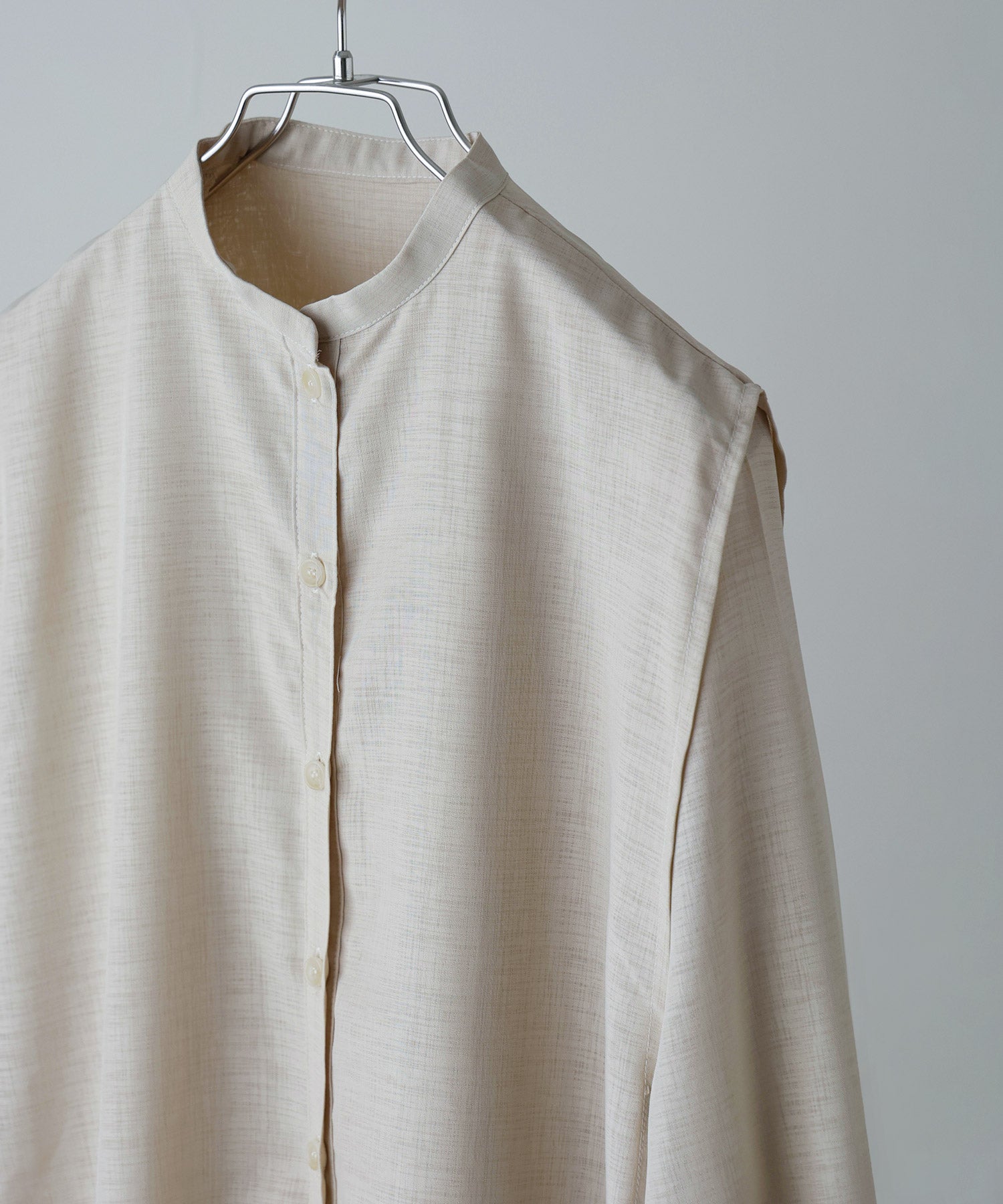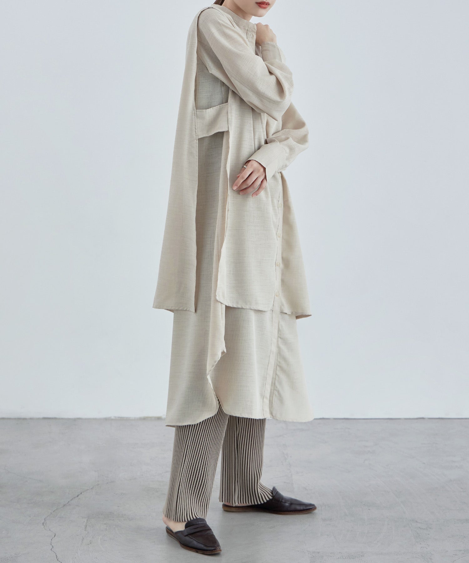 身頃部分をレイヤード風に仕上げ、さらに袖はカフスを長めにとったクラシカルな印象に仕上げました。