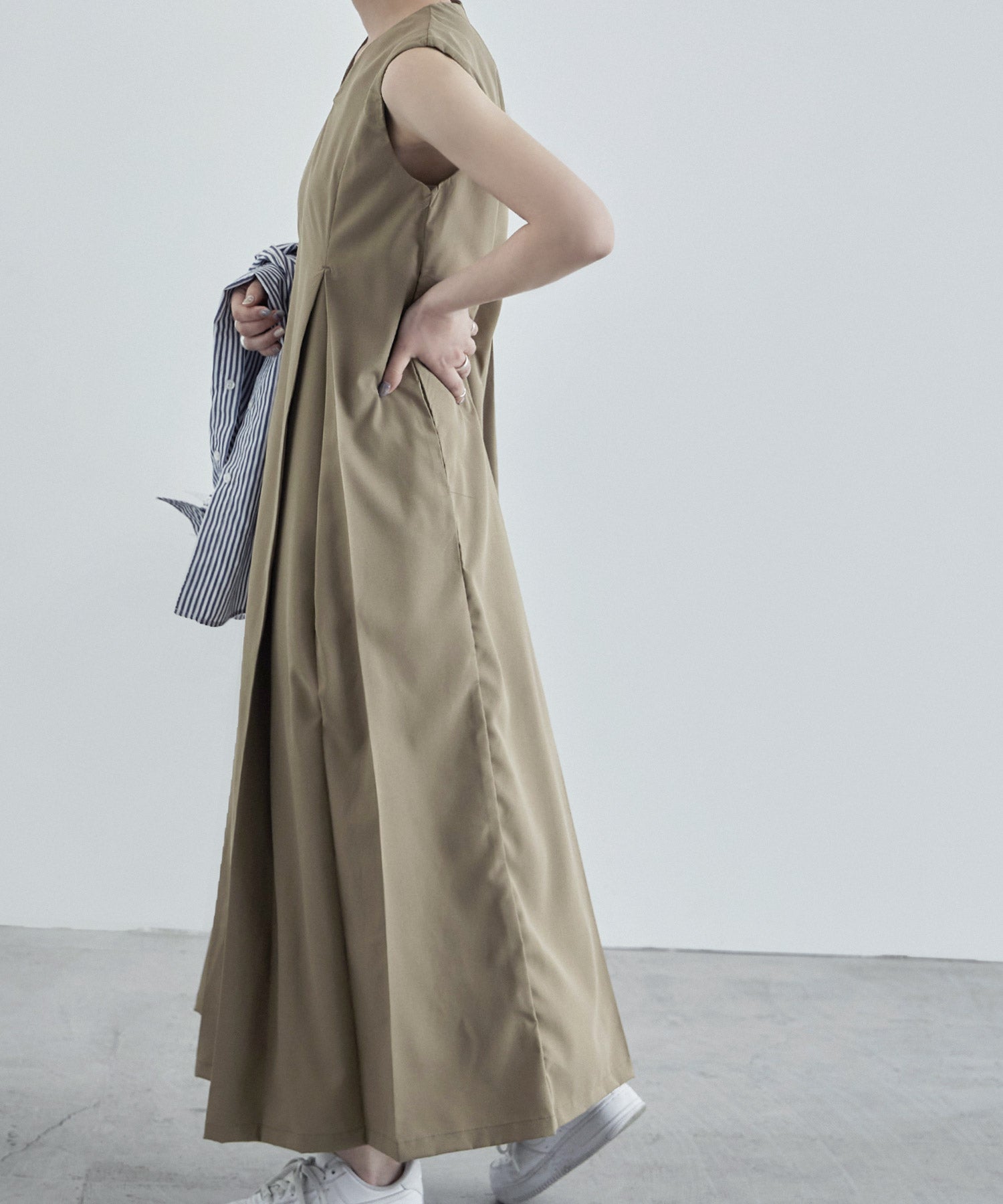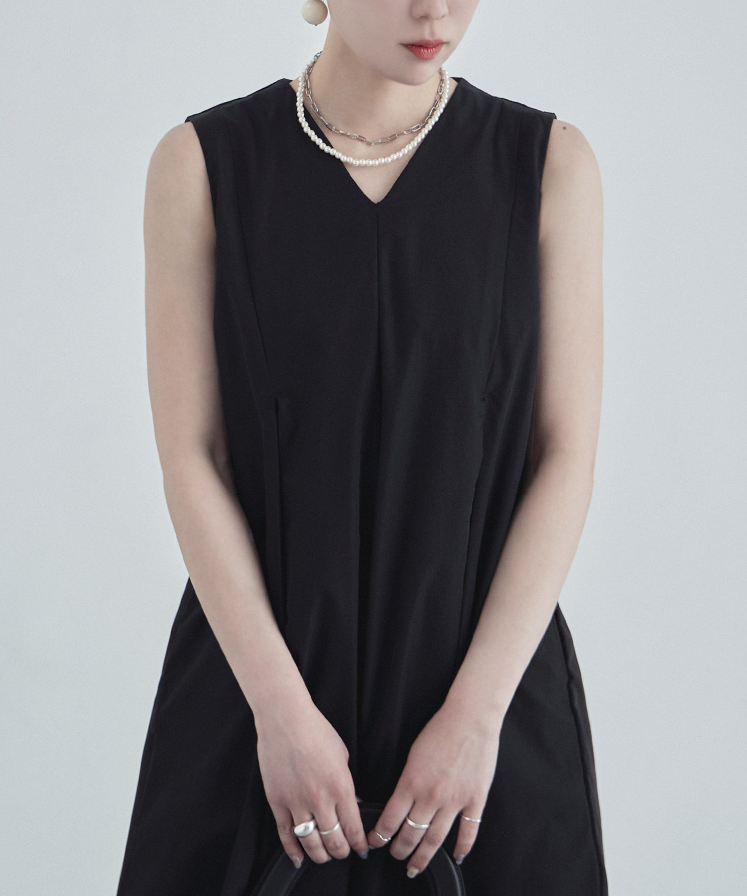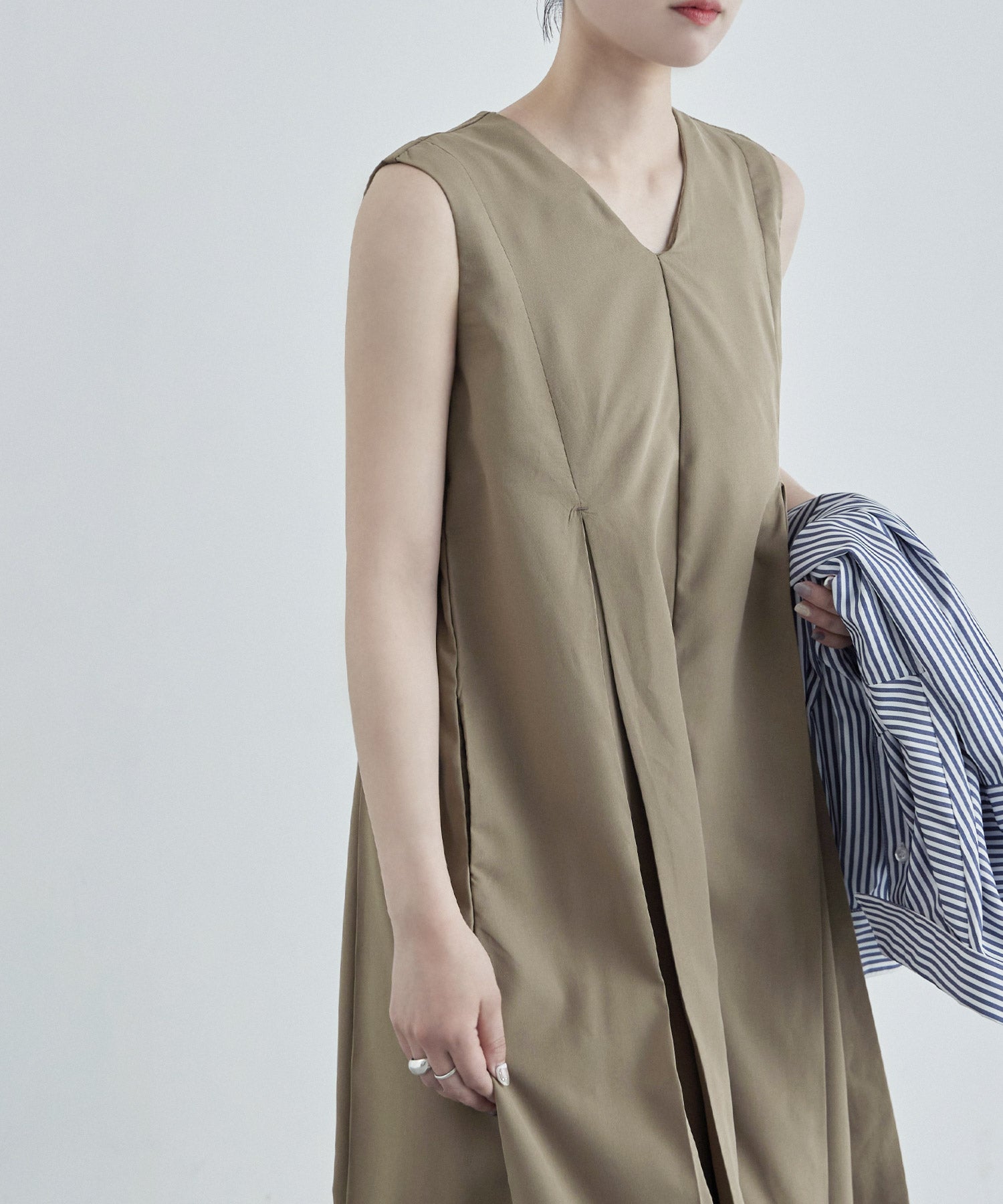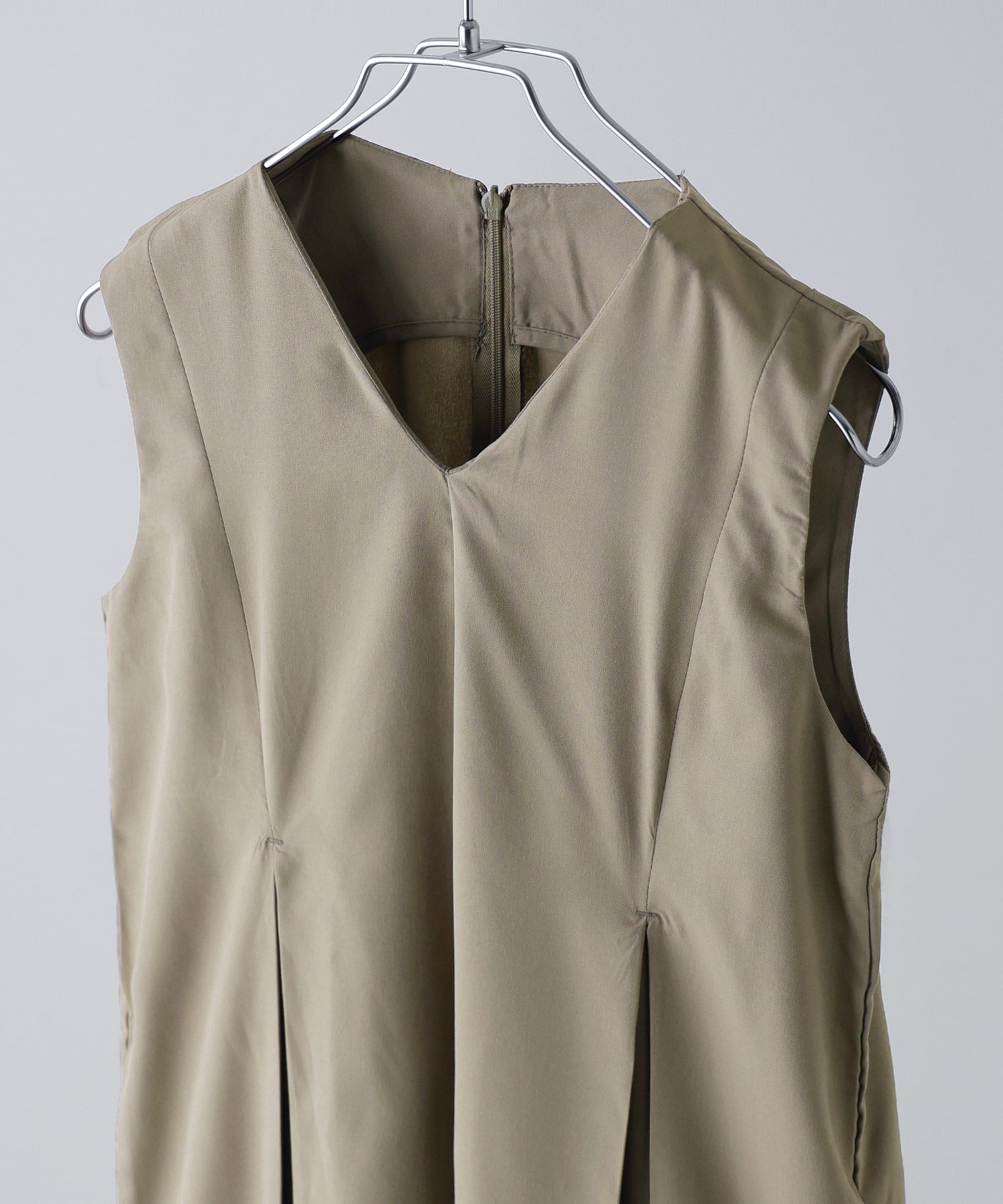 Rname スリーブレスタックフレアオールインワン オールインワン ワンピース ノースリーブ スリーブレス タック プリーツ フレア Vネック レディース ゆったり サロペット オーバーオール Aライン 無地