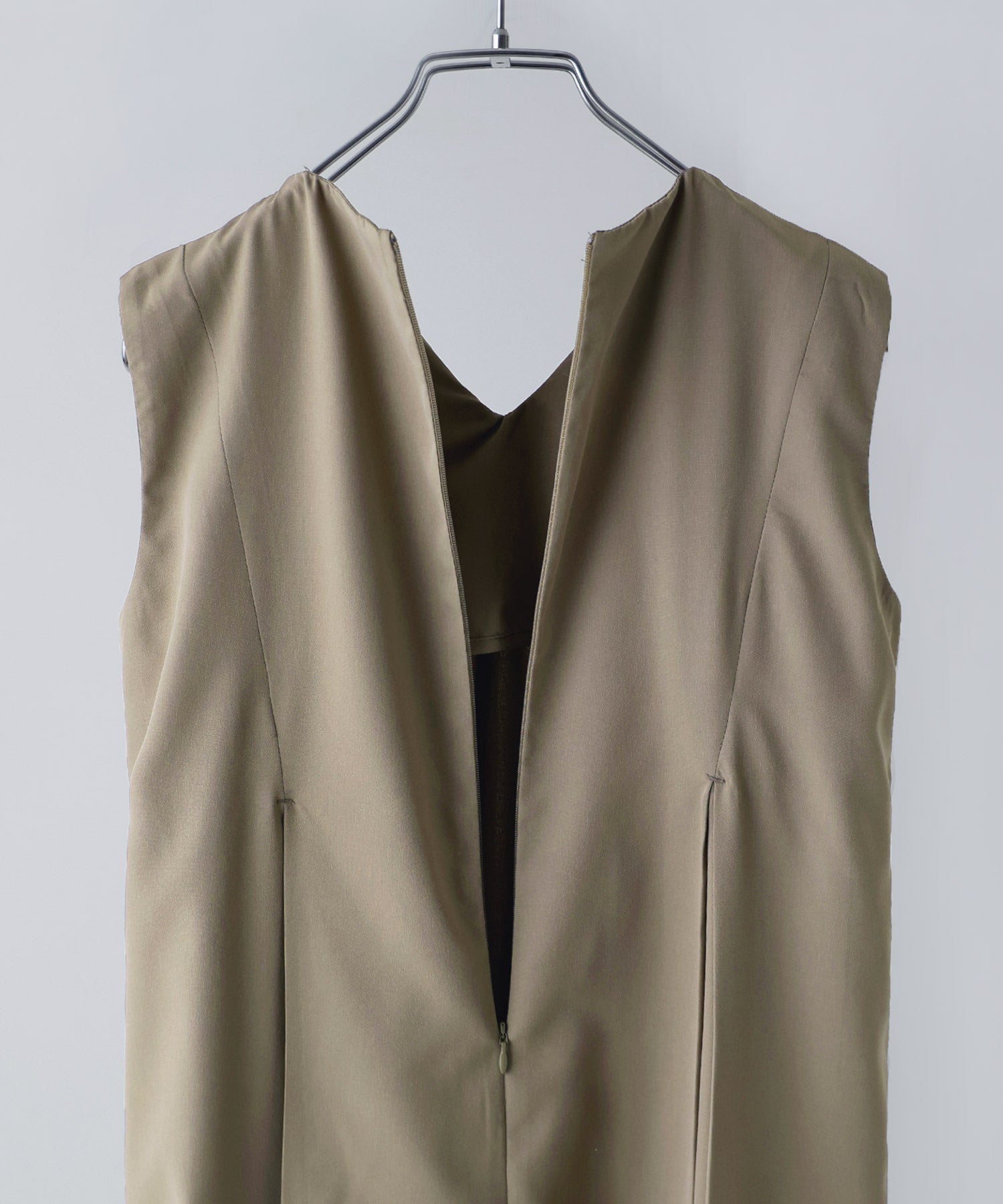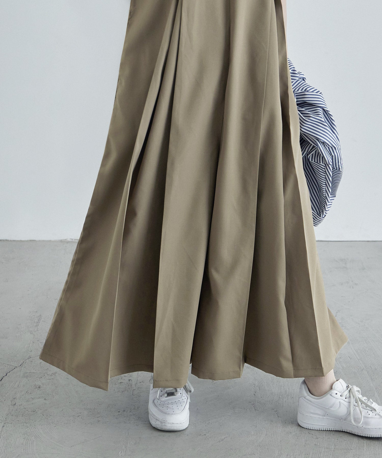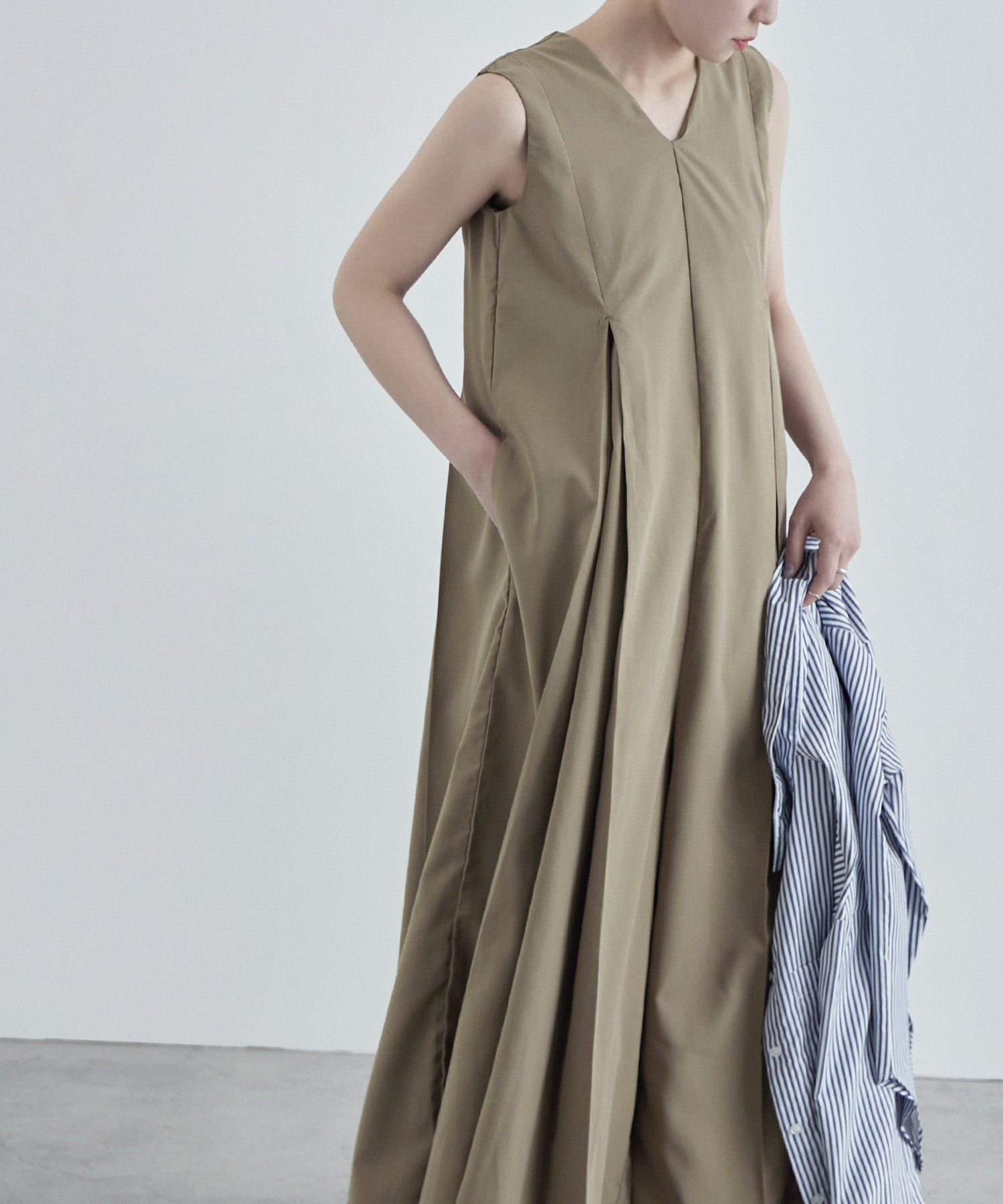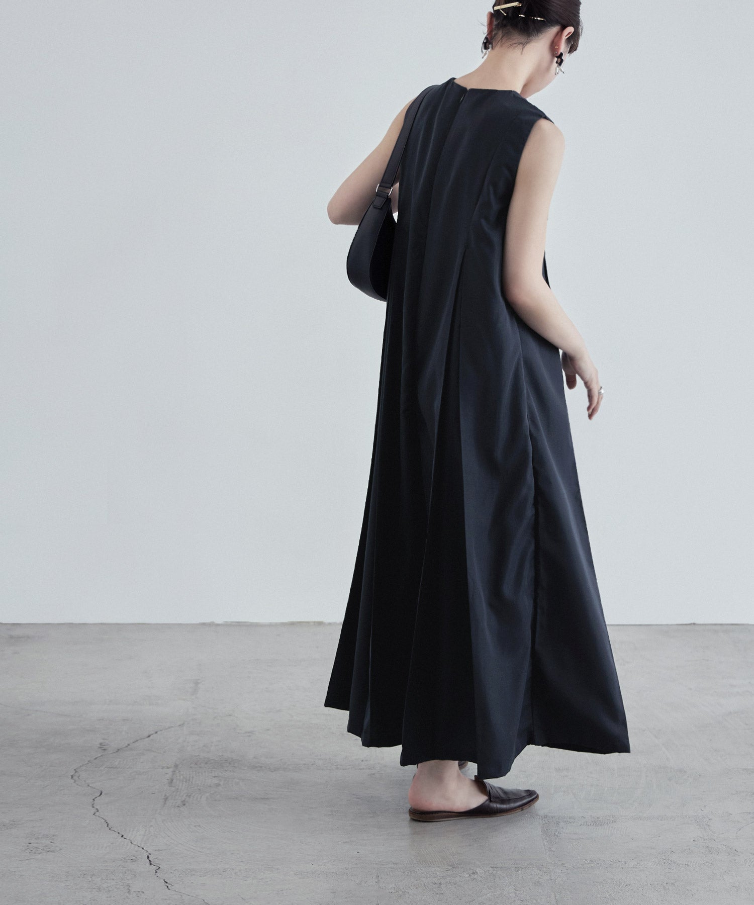 歩くたび広がるラインが美しい、スリーブレスのフレアオールインワン。