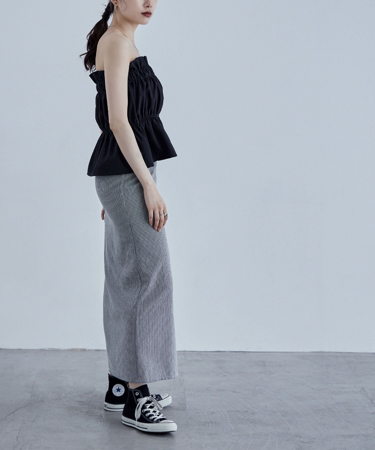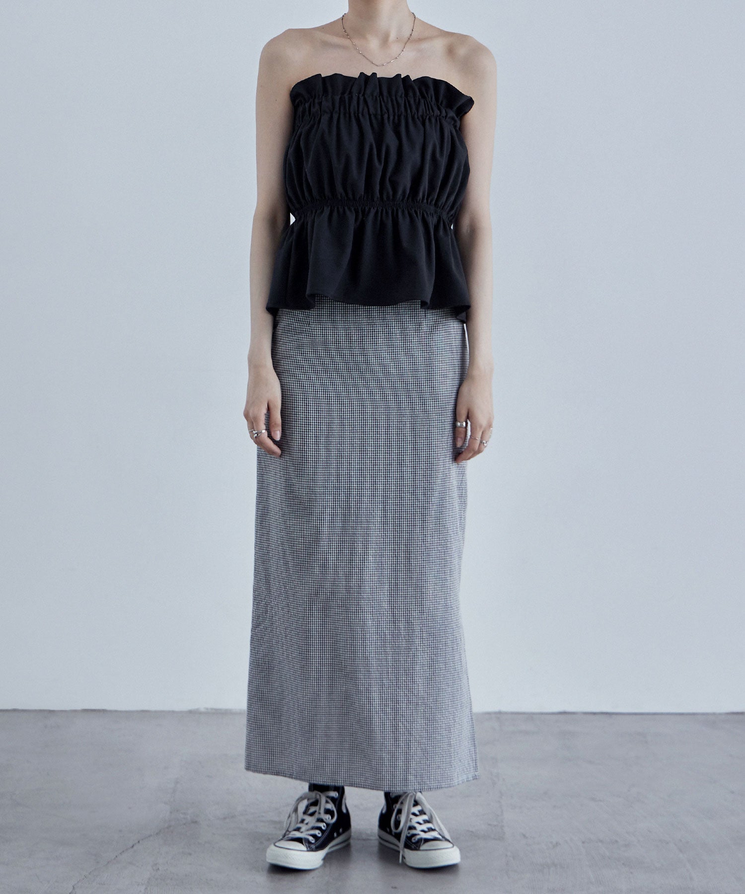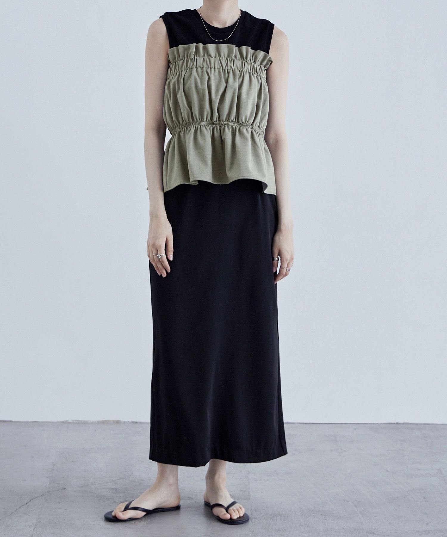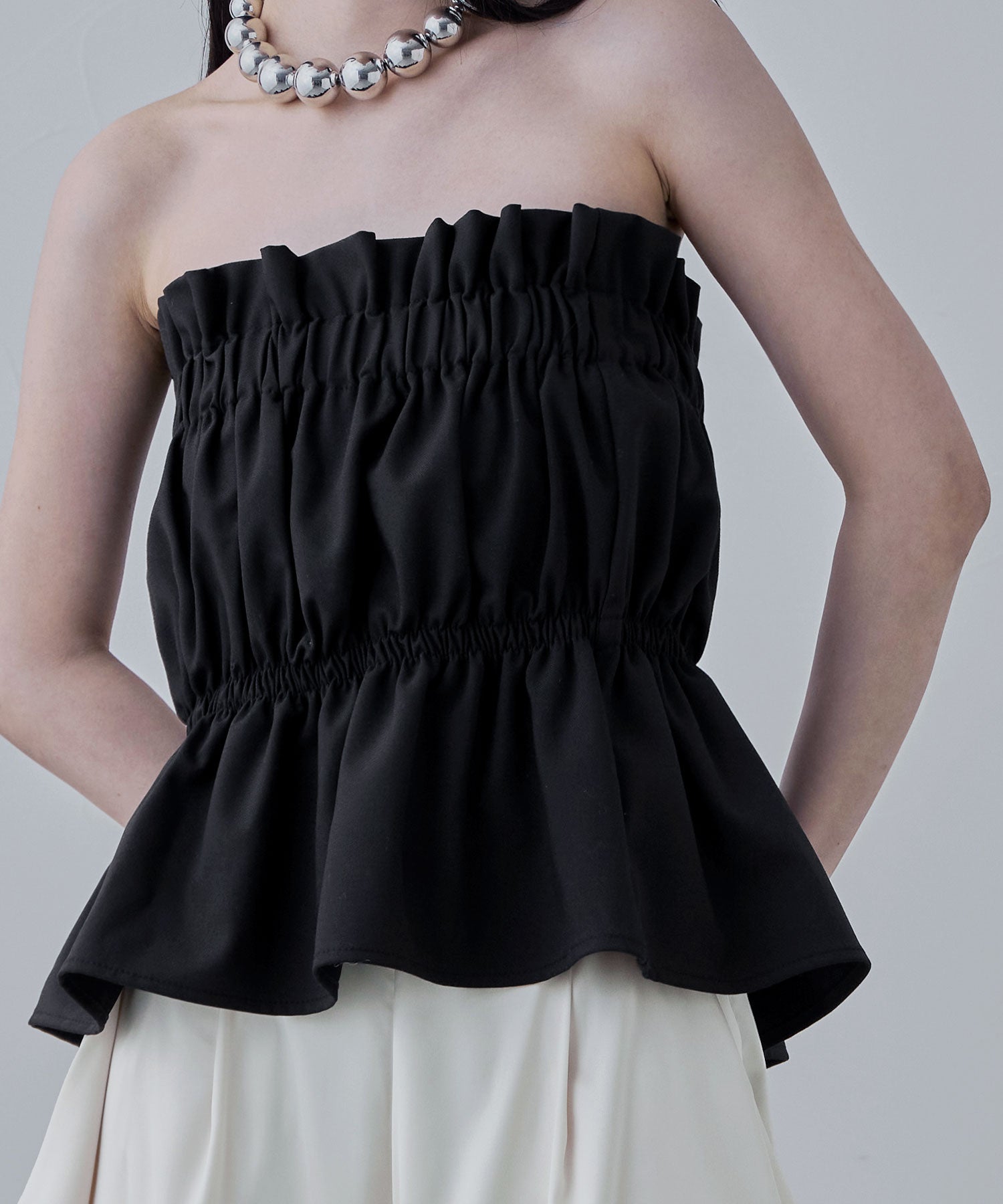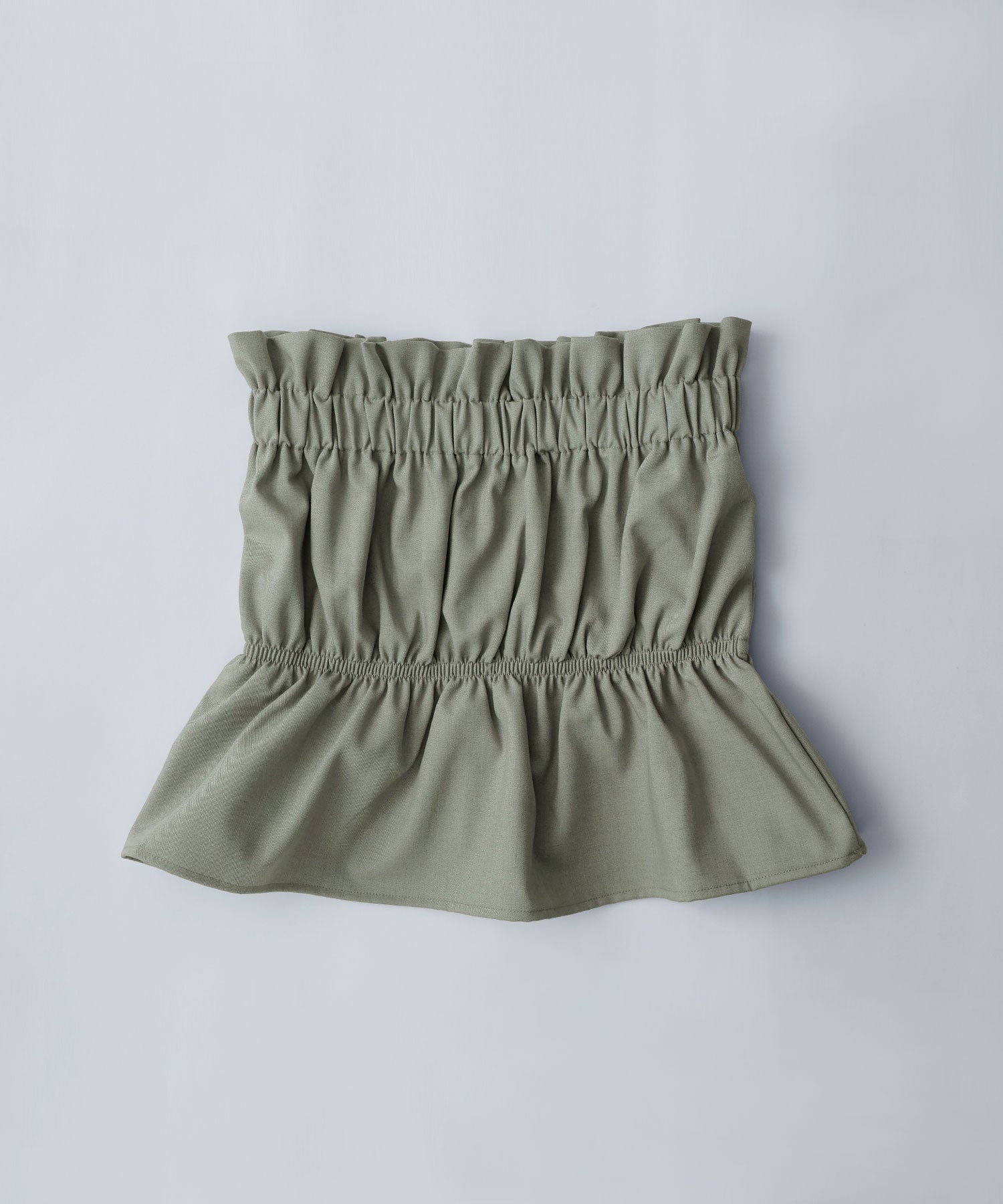 Rname リネンタッチギャザーベアトップ トップス ビスチェ ノースリーブ ベアトップ チューブトップ ギャザー フリル 重ね着 レイヤード