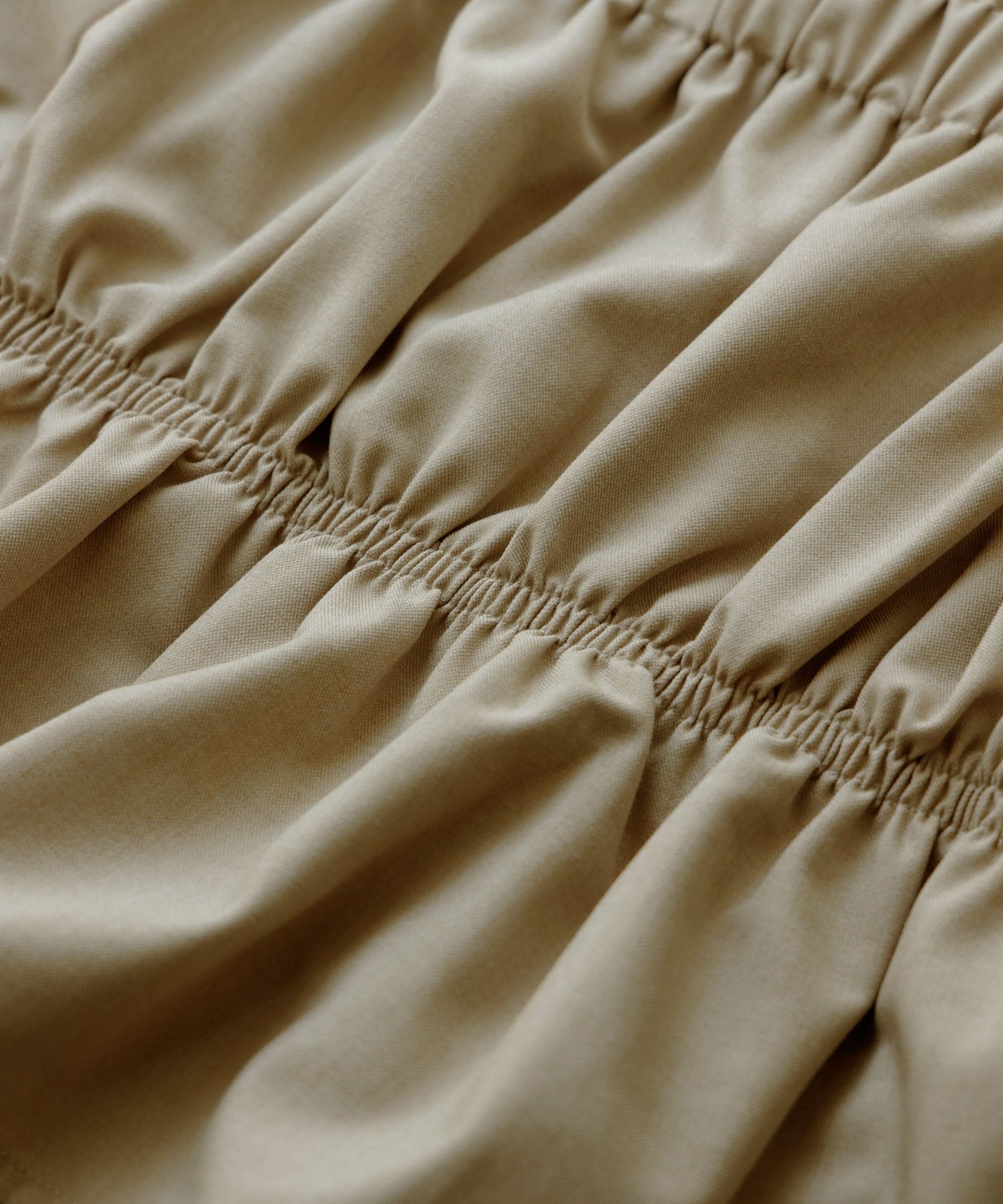 レイヤードが楽しくなる、リネンタッチのギャザーベアトップ。