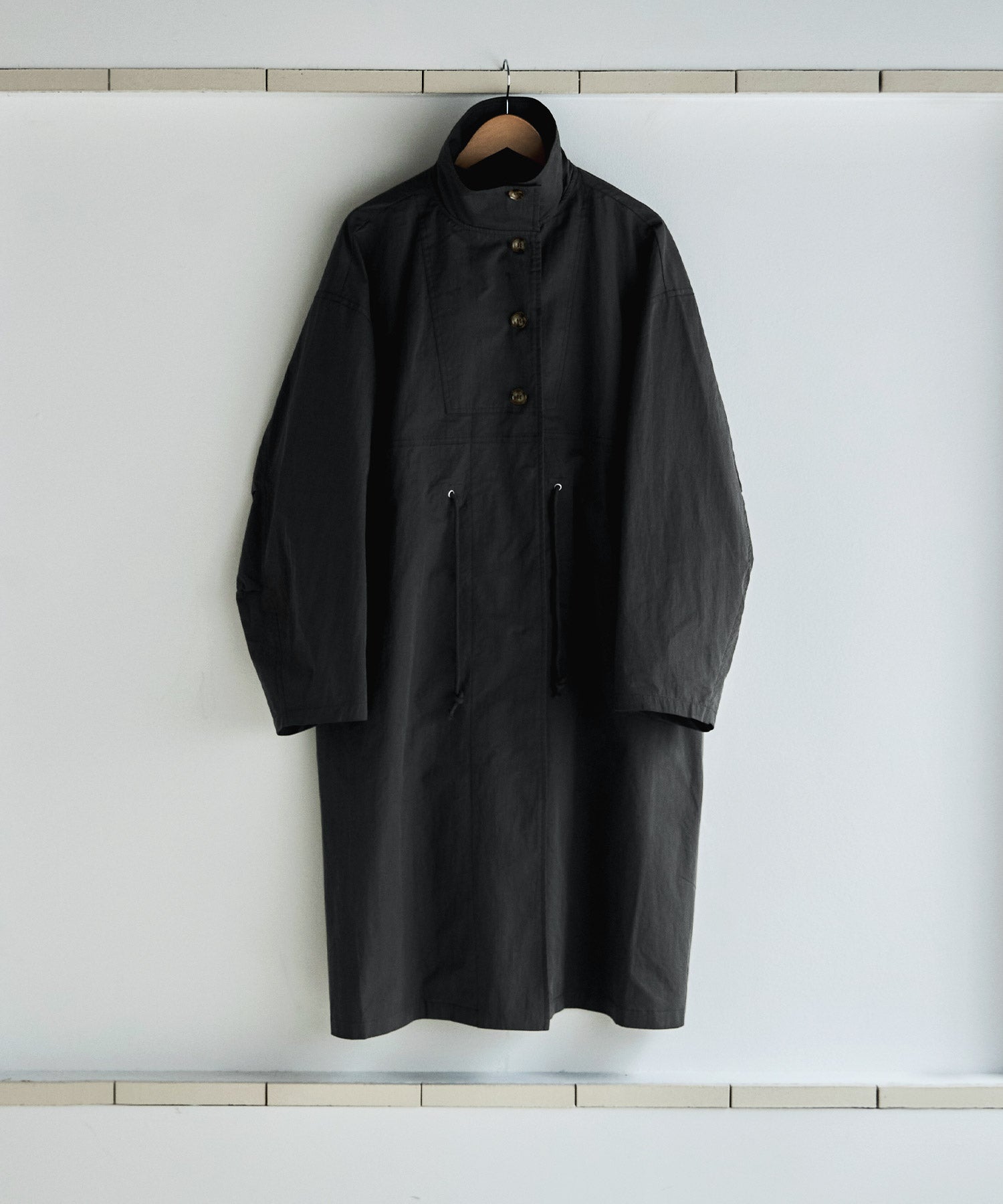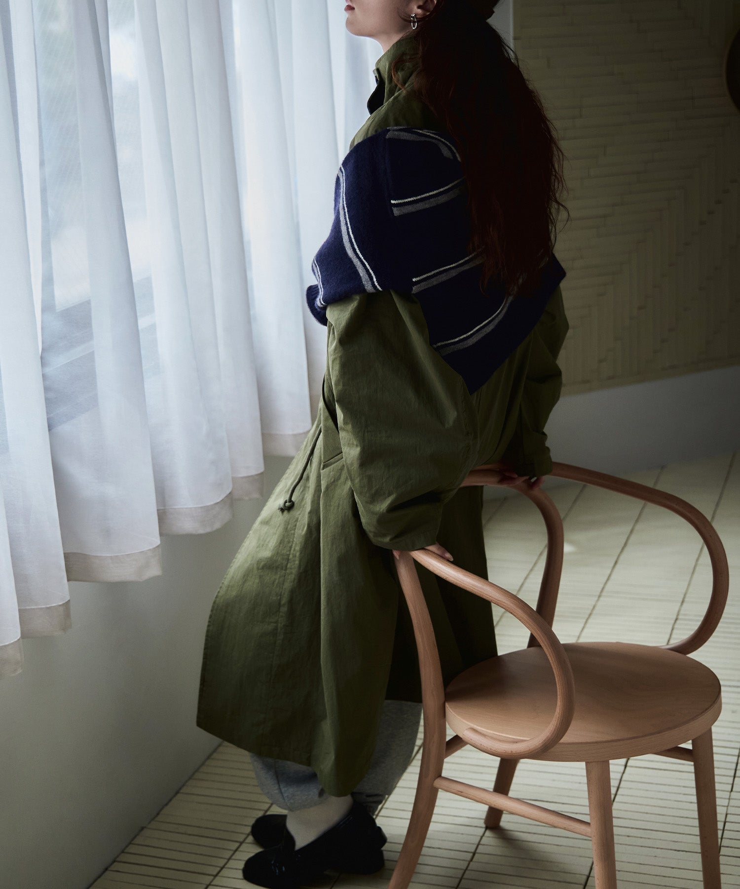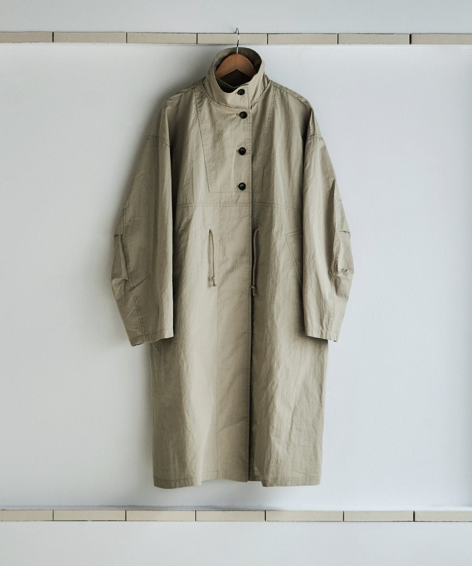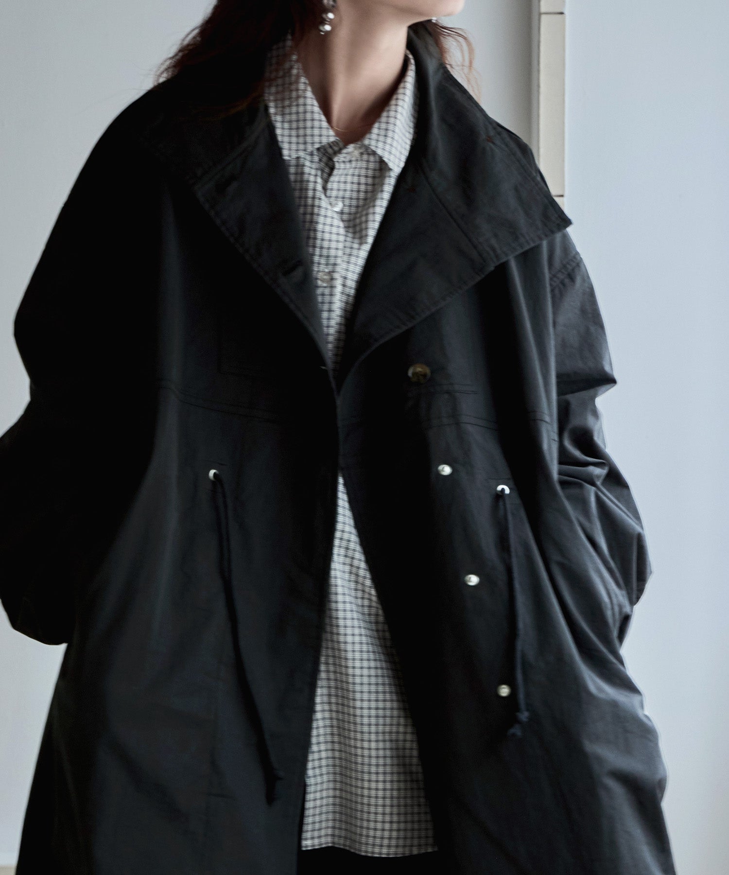 しっかり襟を立てて着ても、倒して着ても首元のアクセントになり、品よくカジュアルなスタイリングに整えてくれるスタンドカラーコート。