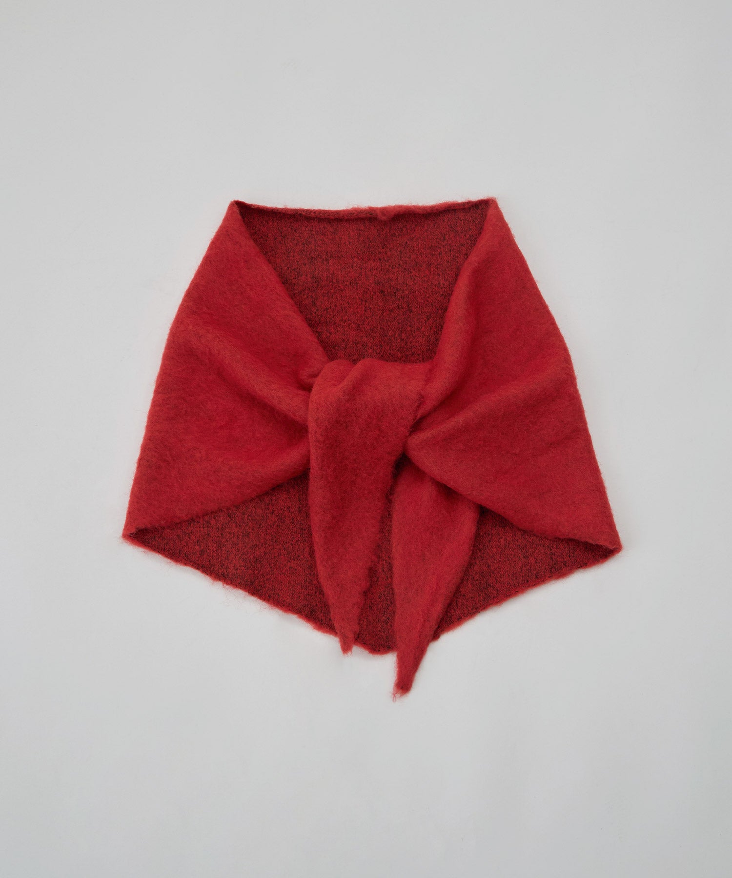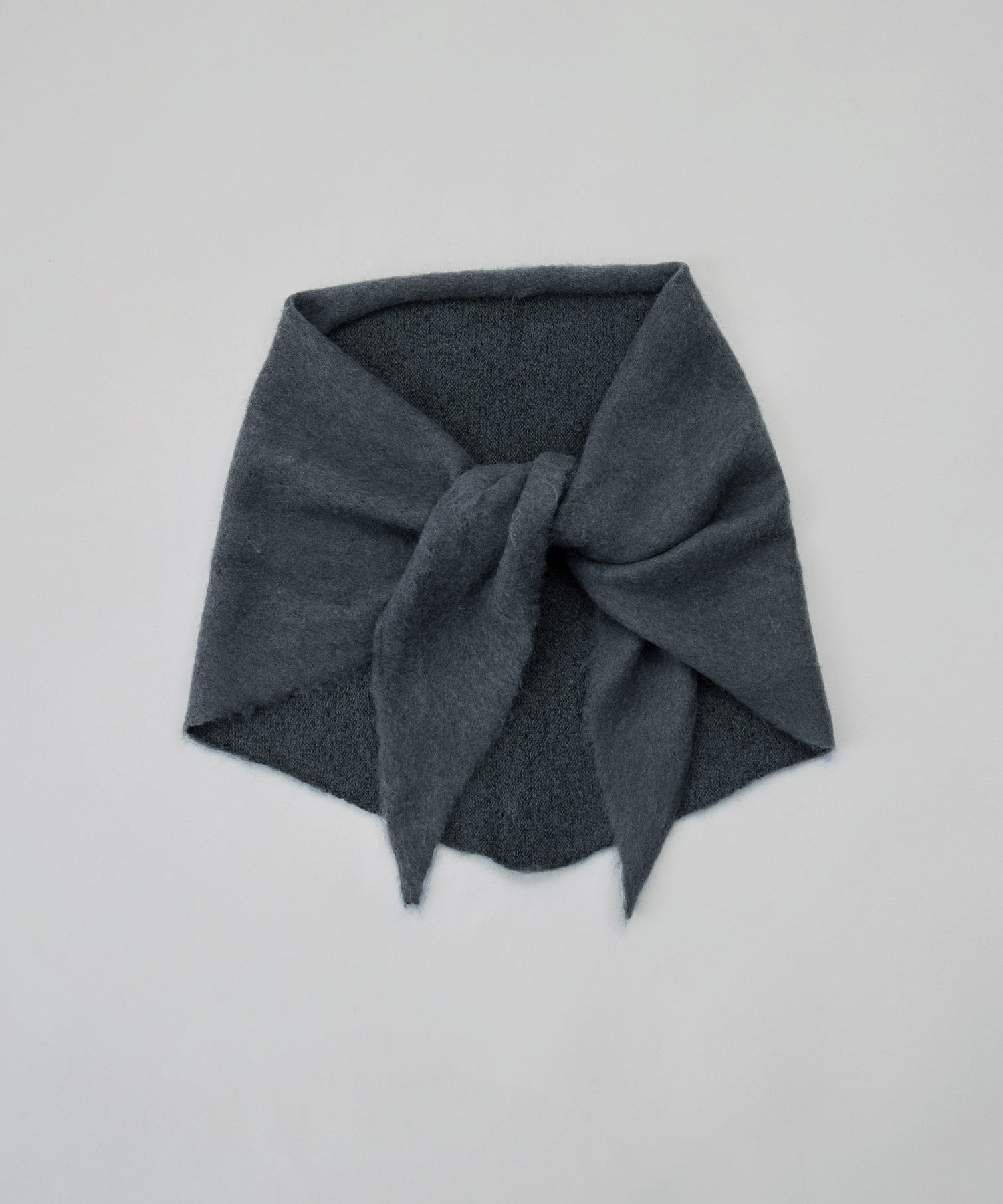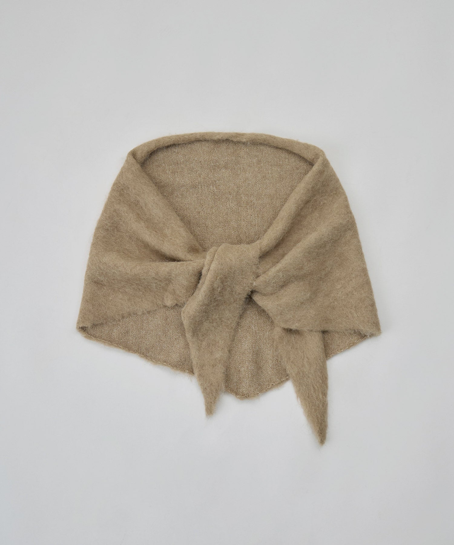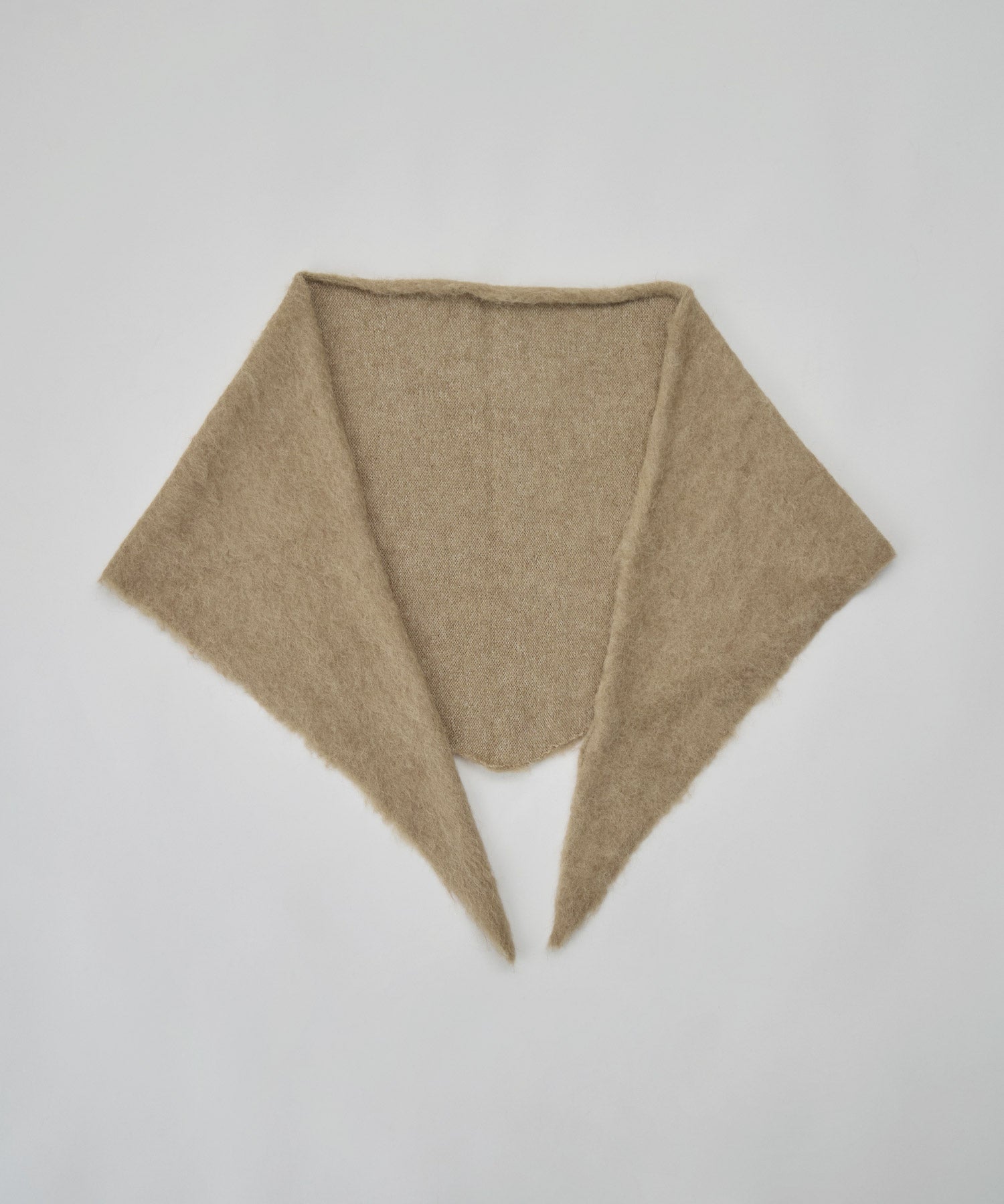 モヘアタッチの柔らかな起毛糸で仕立てたトライアングルスカーフです。