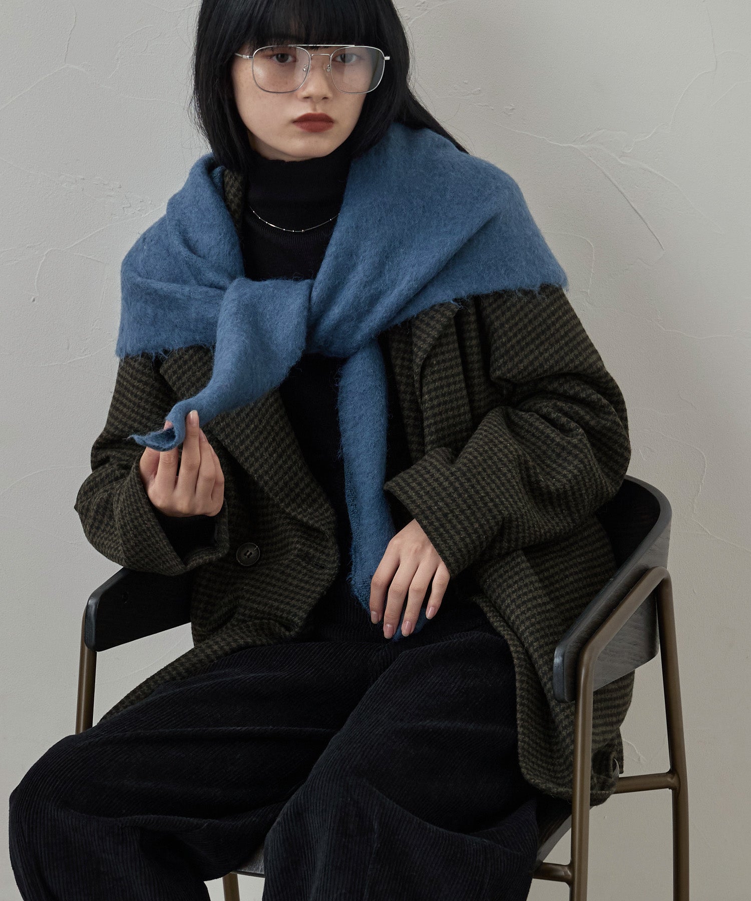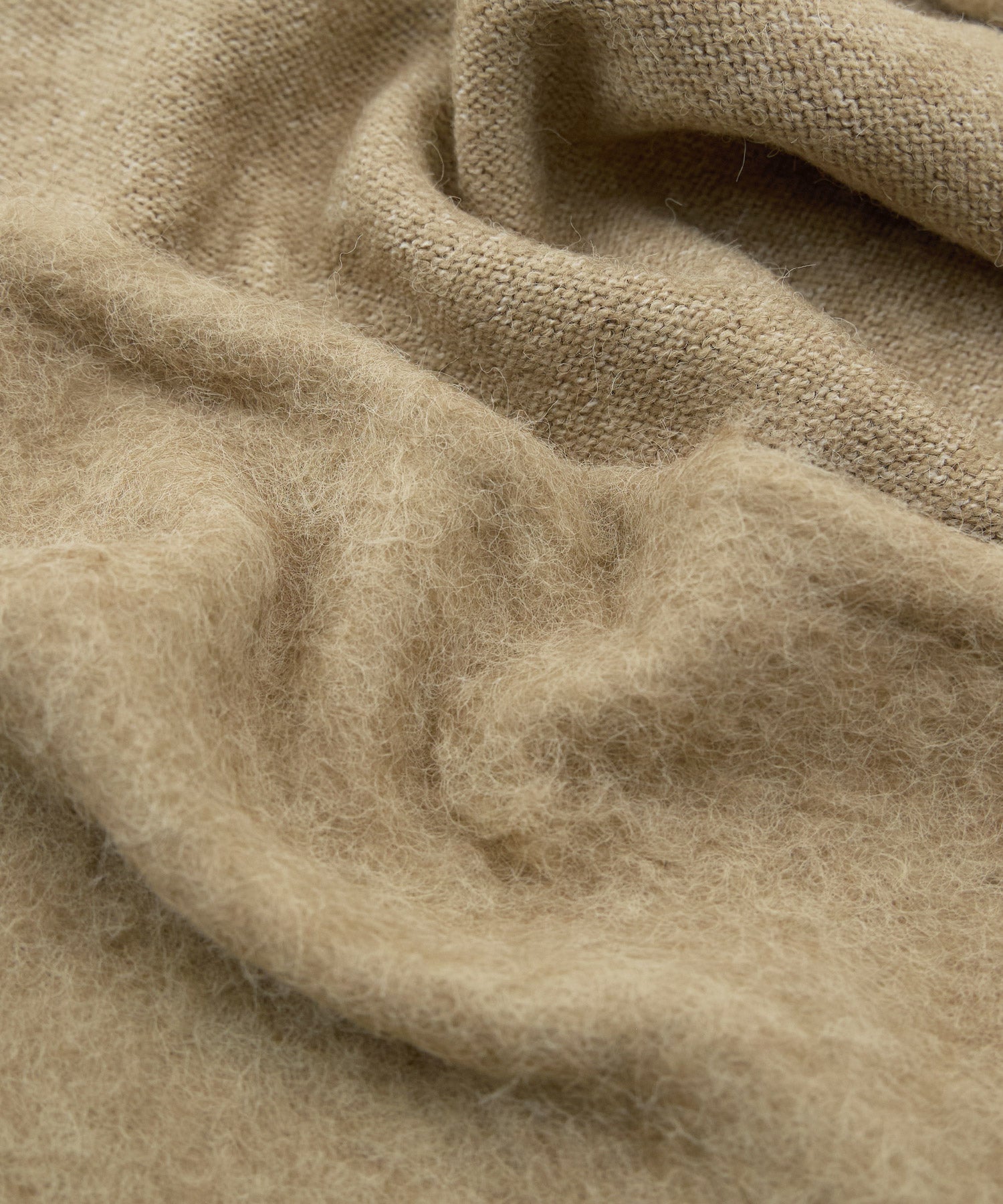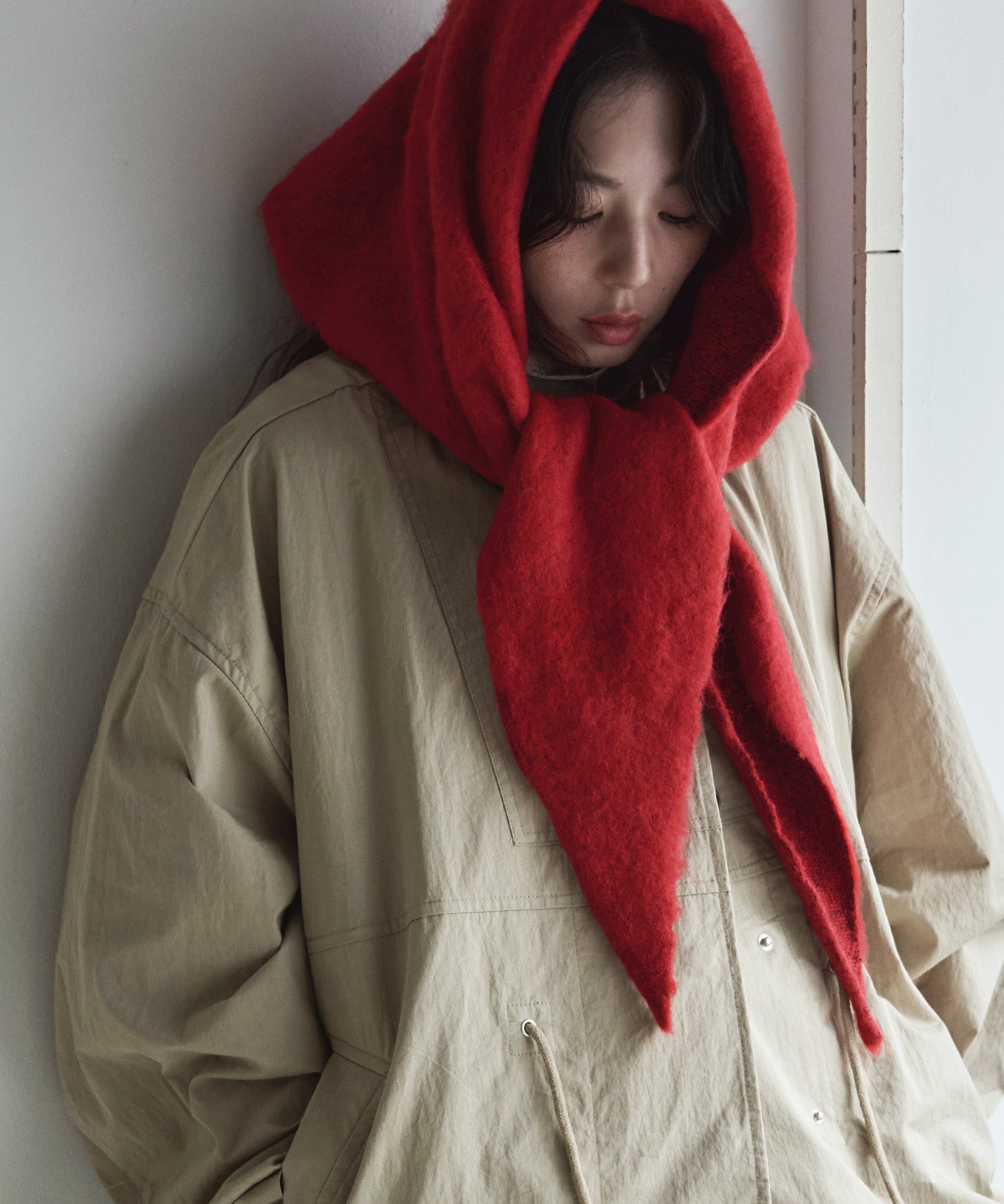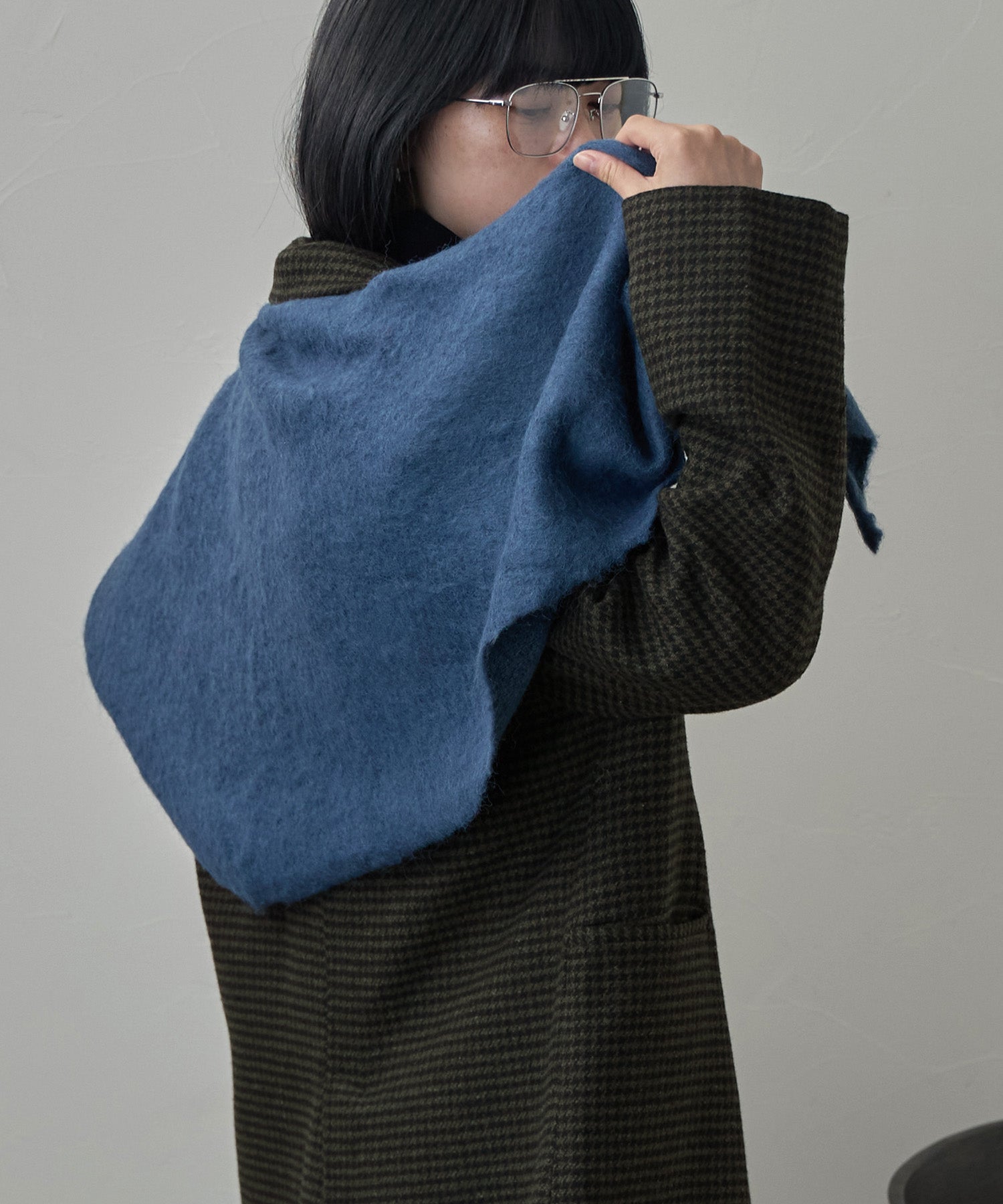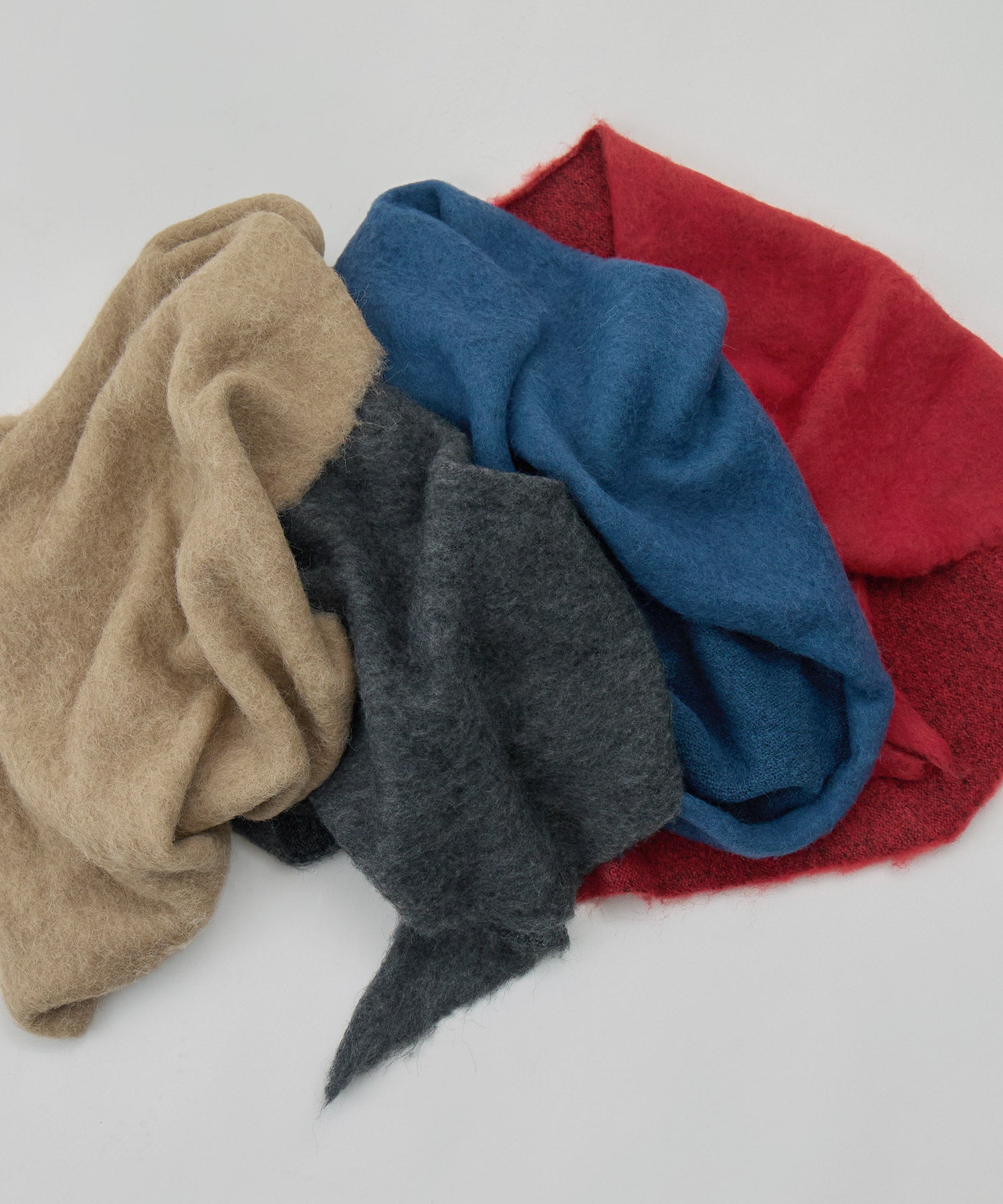 モヘアタッチの柔らかな起毛糸で仕立てたトライアングルスカーフです。