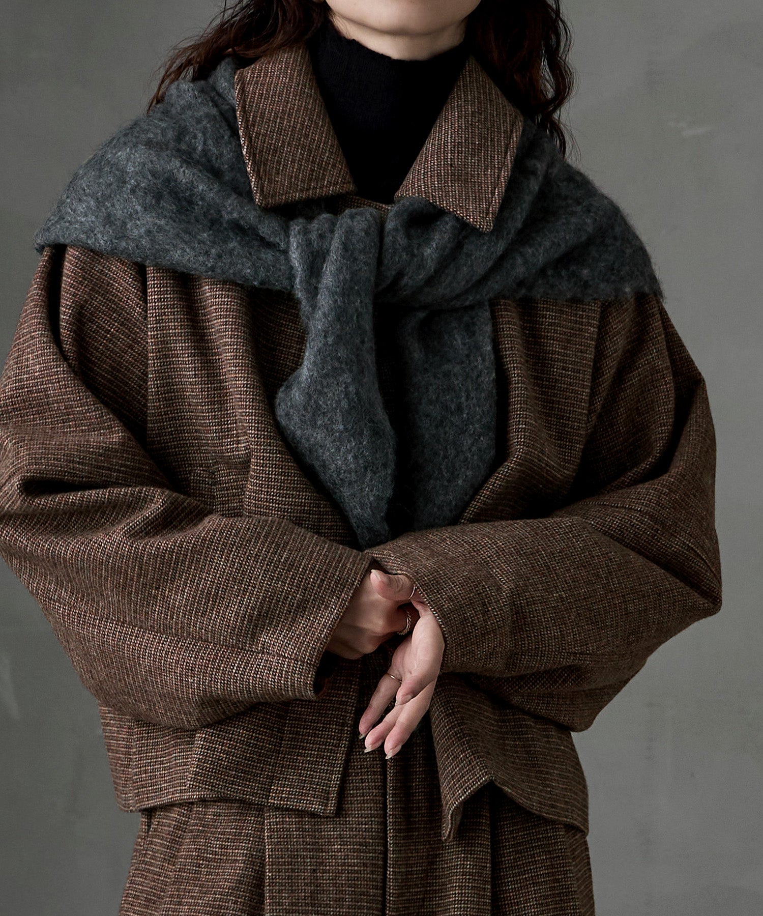 ショール感覚で肩にかけたり、バブーシュカのように頭をすっぽり覆ってみたり。