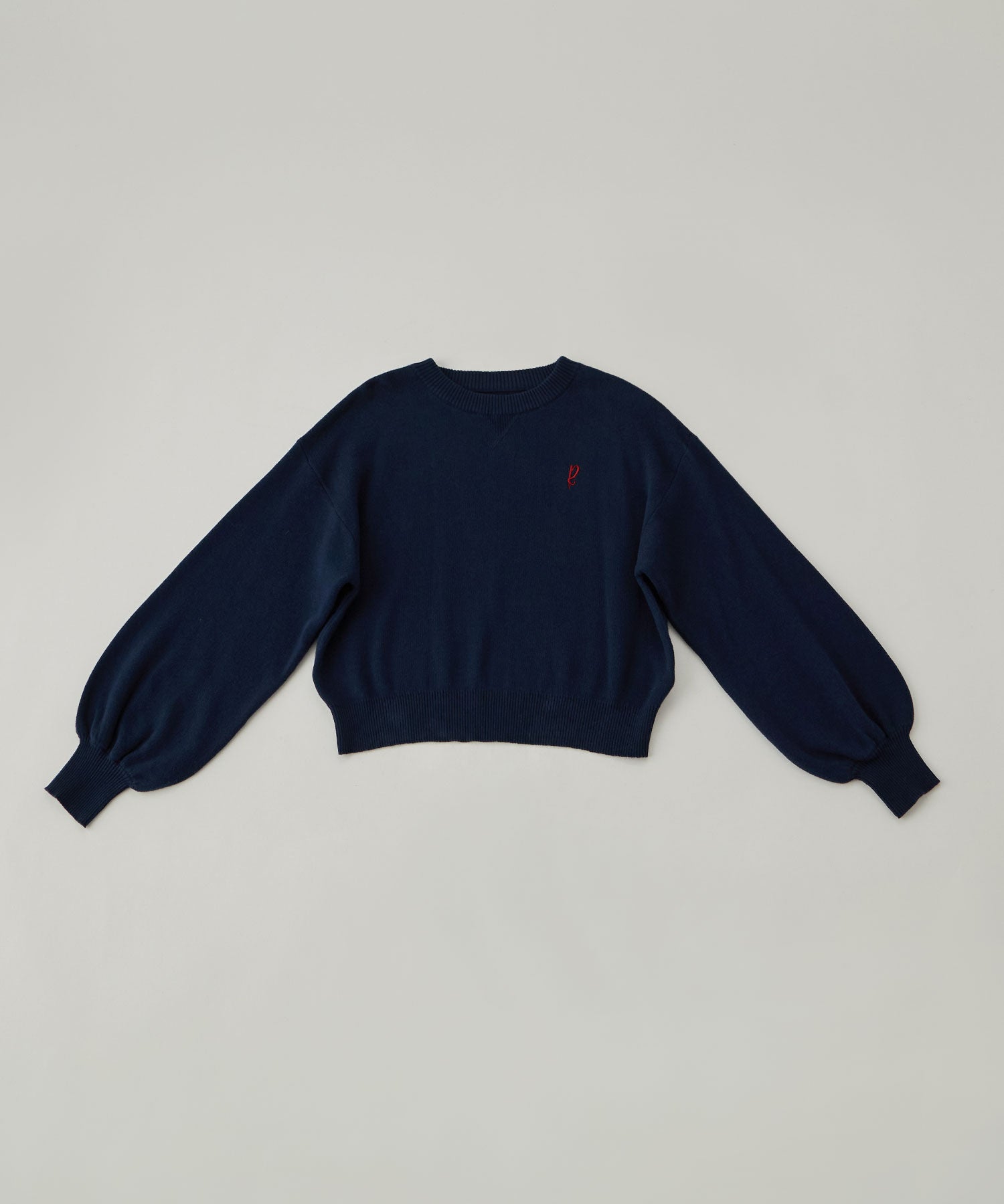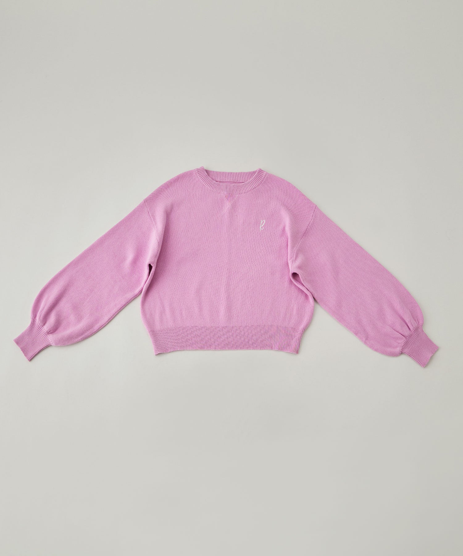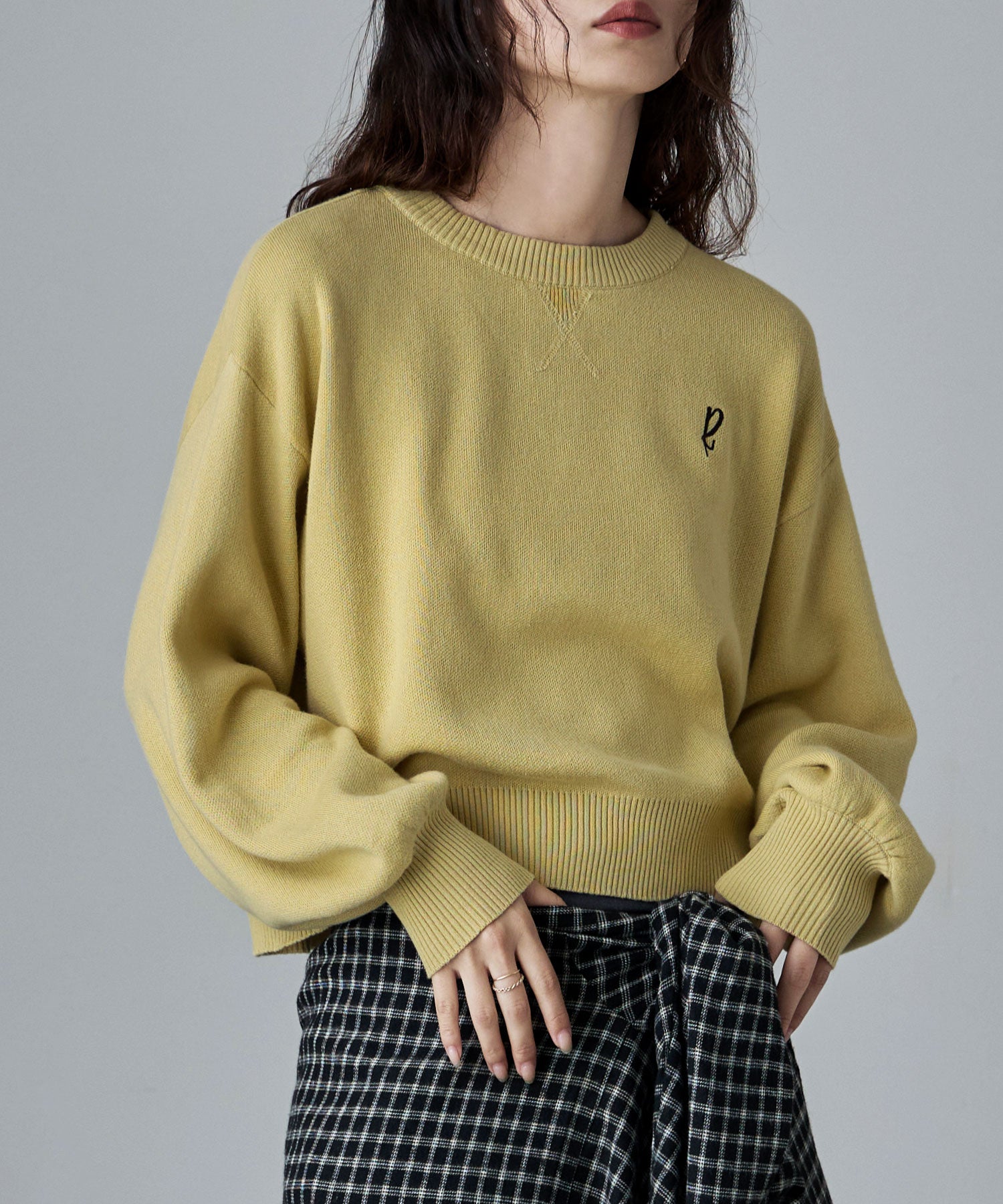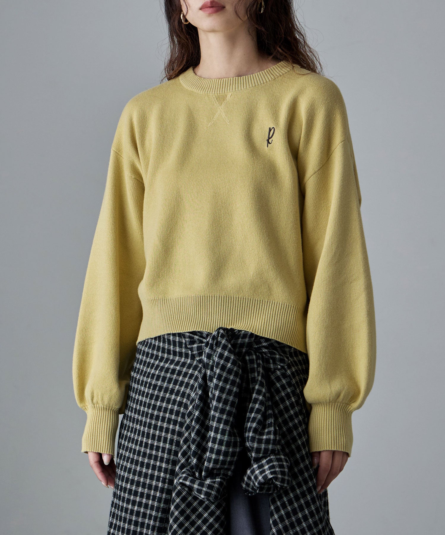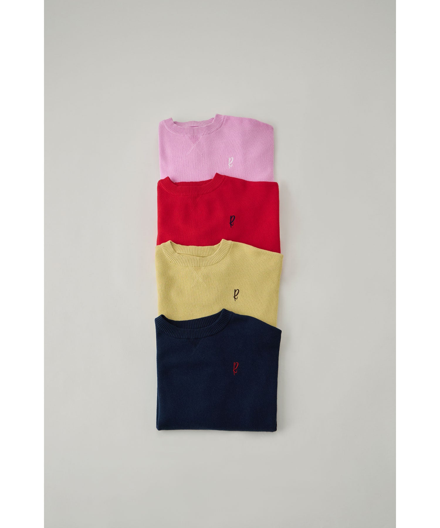 Rname スウェットライク刺繍ロゴニット トップス ニット セーター 長袖 スウェット カラーニット クルーネック ロゴ ショート丈 ビッグシルエット ゆったり クロップド オーバーサイズ 無地