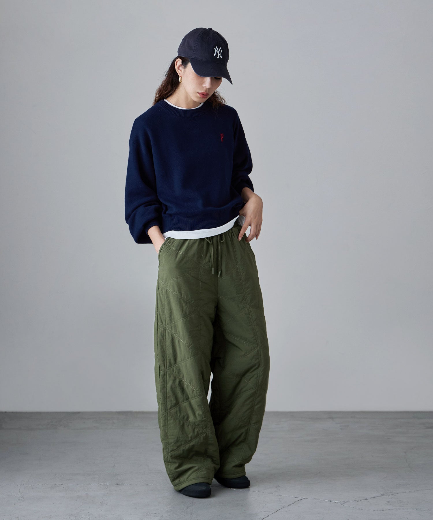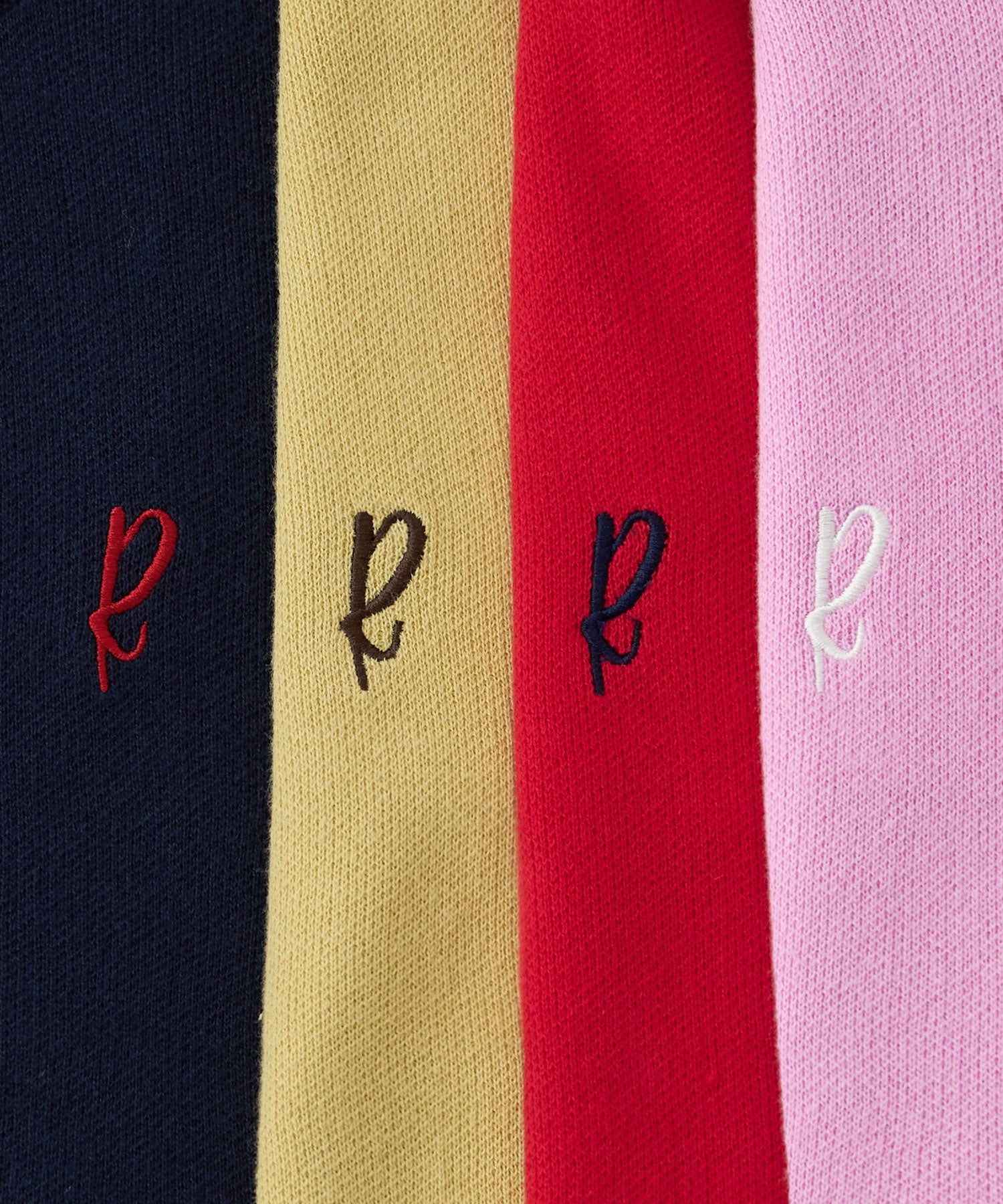 刺繍ロゴのワンポイントはカレッジカジュアルを彷彿させ、ロンTやシャツを合わせたレイヤードスタイルでのアレンジも◎。