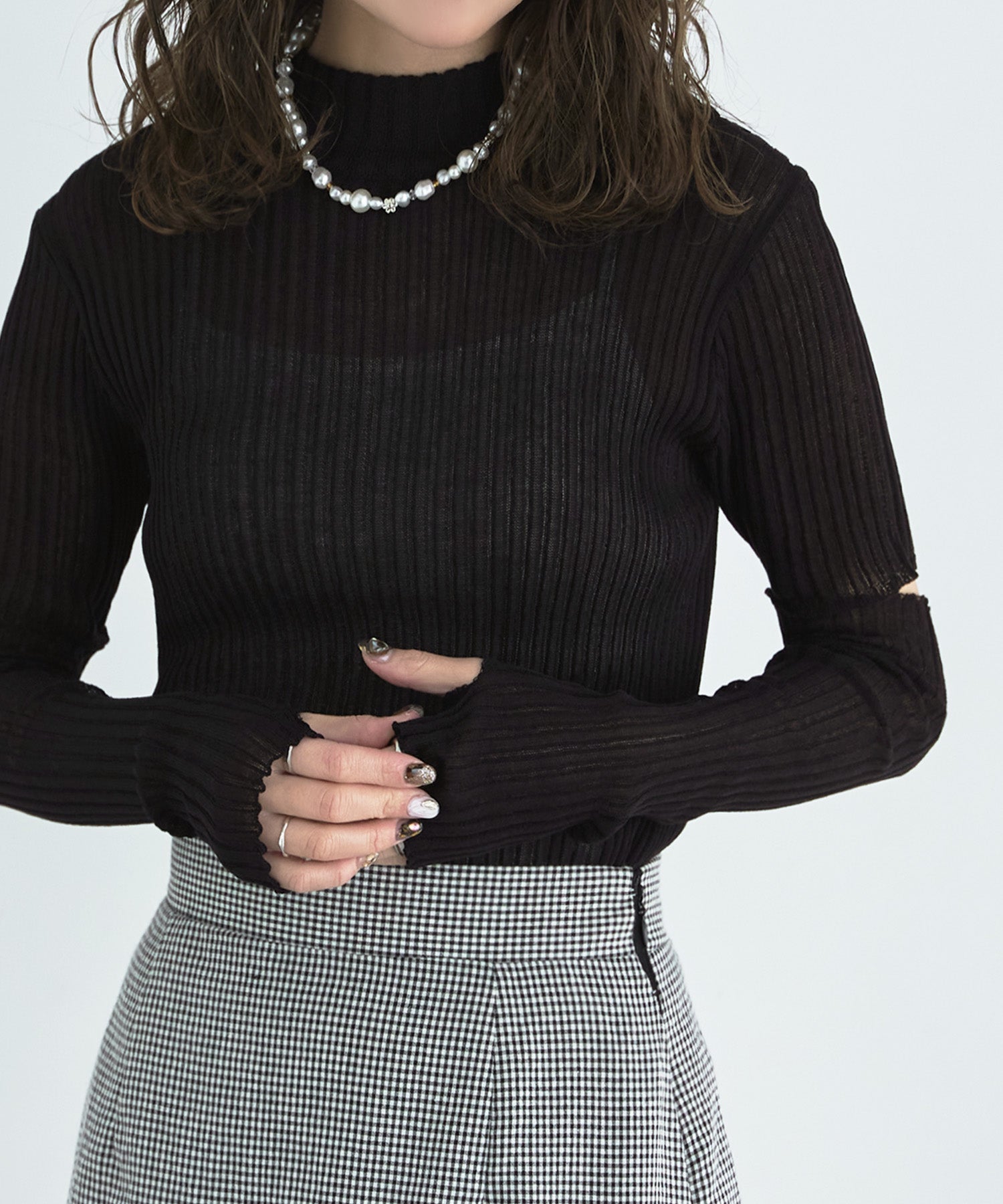 Rname 3wayアームウォーマーリブニット トップス レディース アームウォーマー 3way フィンガーホールニット ニットT レディース セーター モックネック リブ ニット カットアウト ショート丈 タイト 長袖 カラーニット 無地 伸縮性 重ね着 指穴