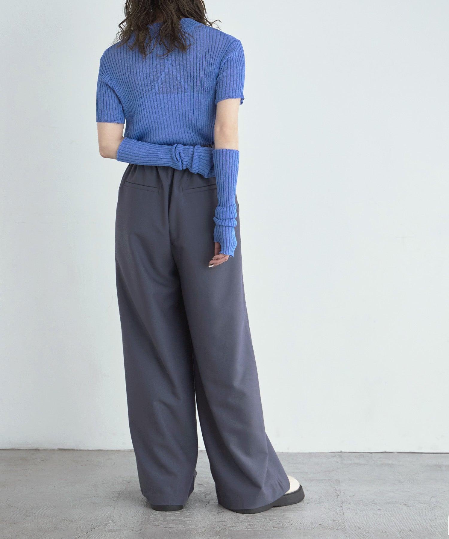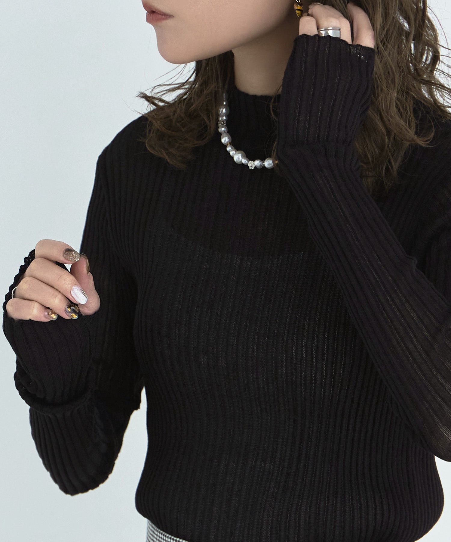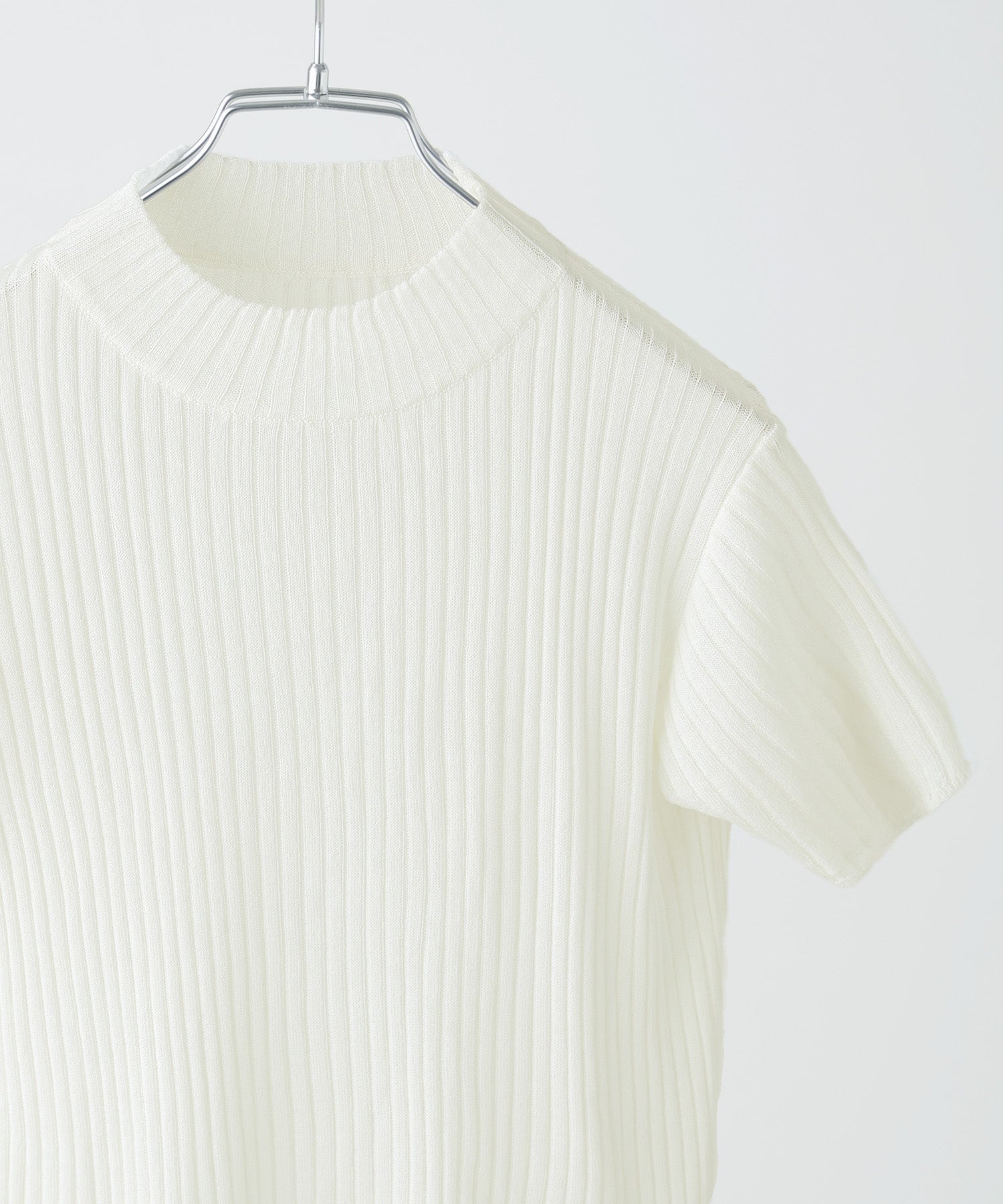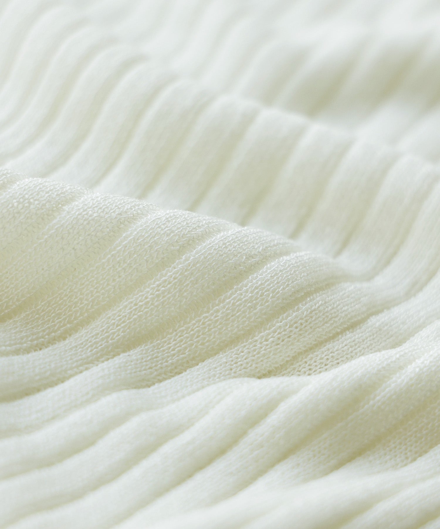 伸縮性もあるのでボディーラインに優しくフィットし、立体感のあるリブの編地がすっきり細見えをアシストします。