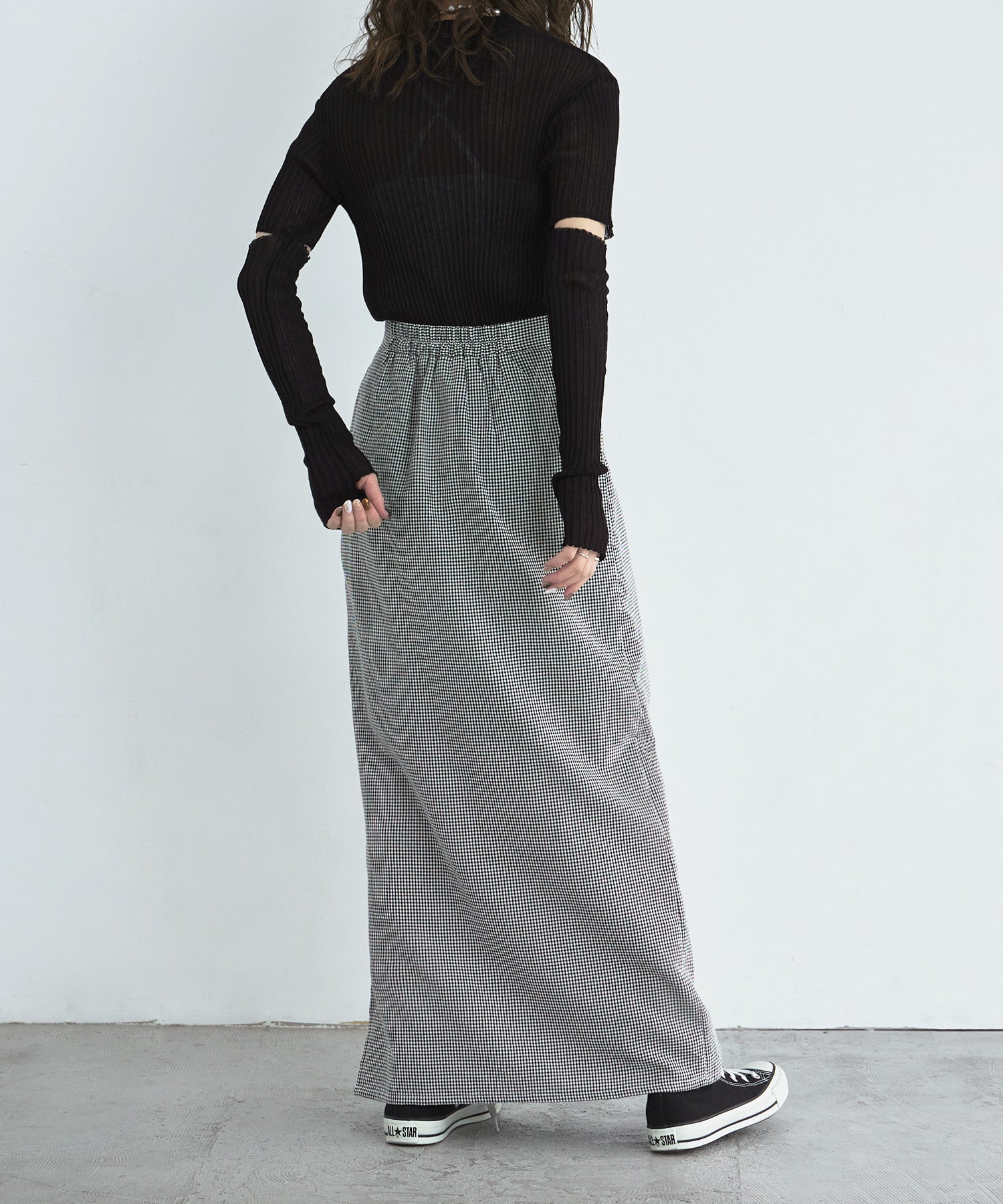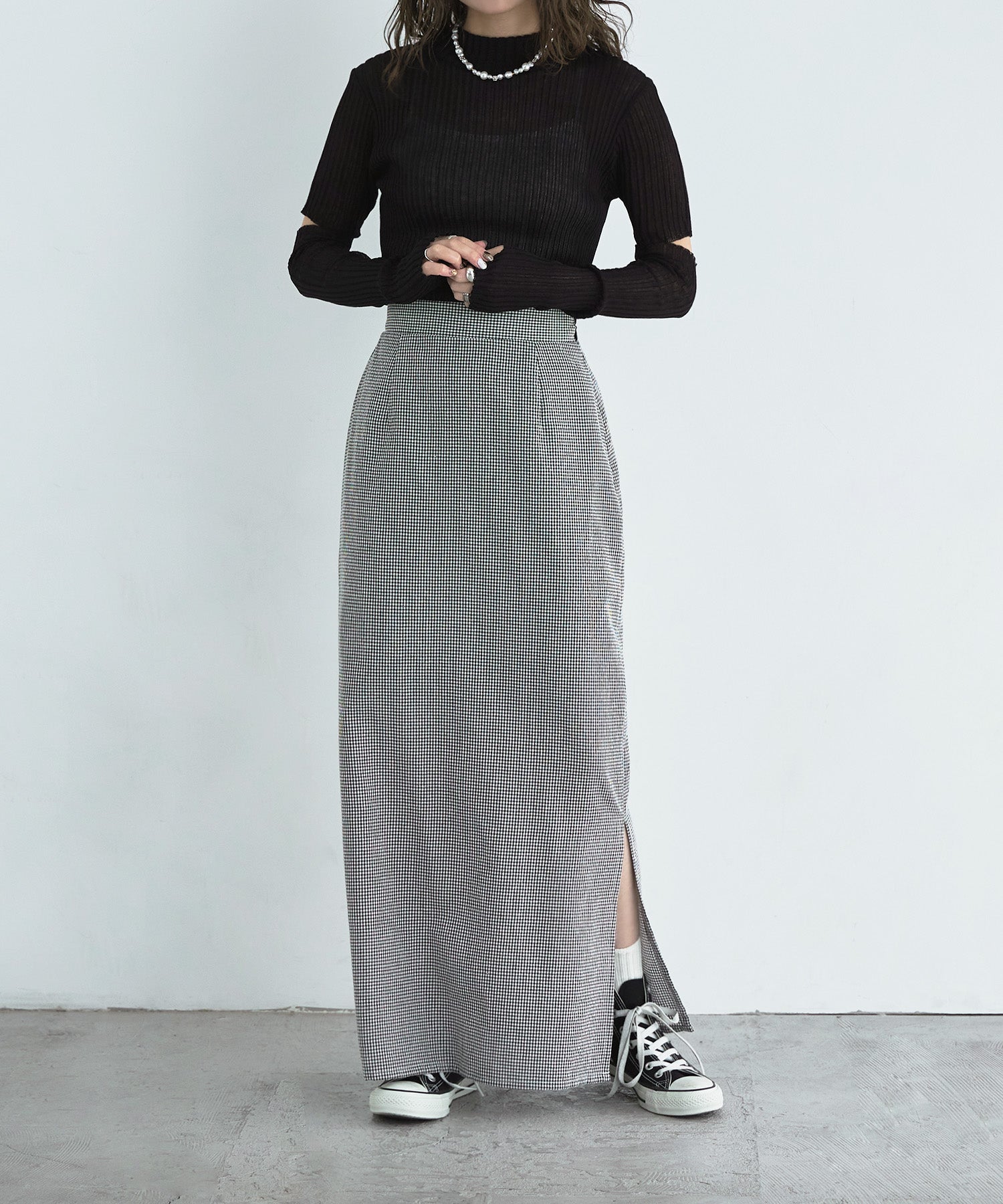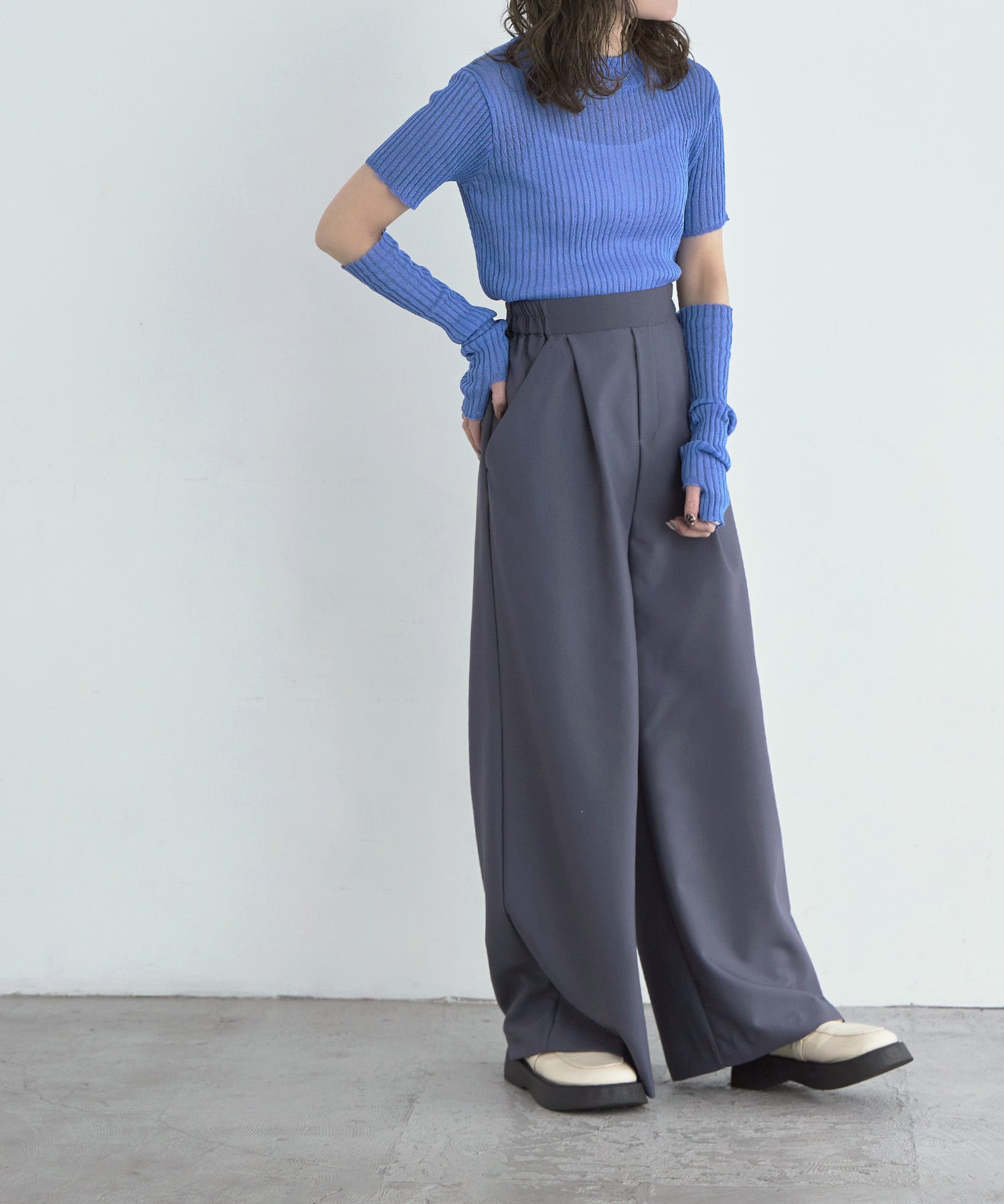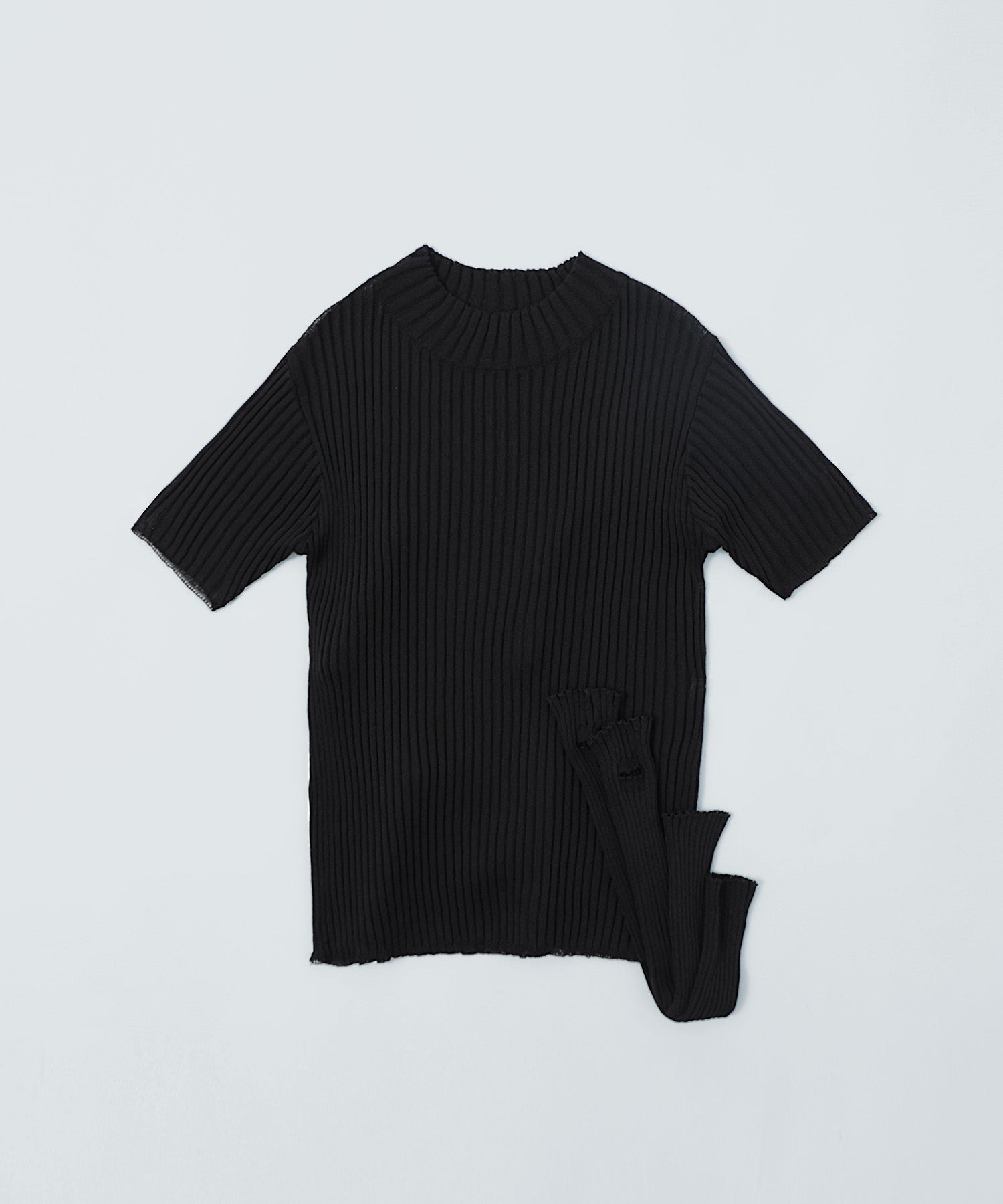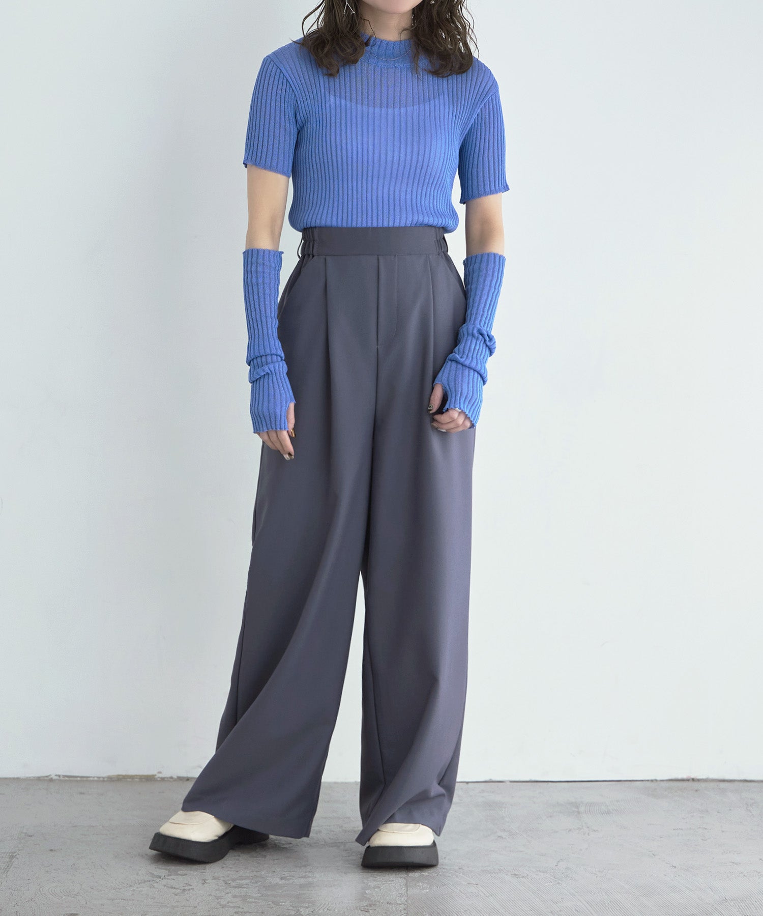 伸縮性もあるのでボディーラインに優しくフィットし、立体感のあるリブの編地がすっきり細見えをアシストします。