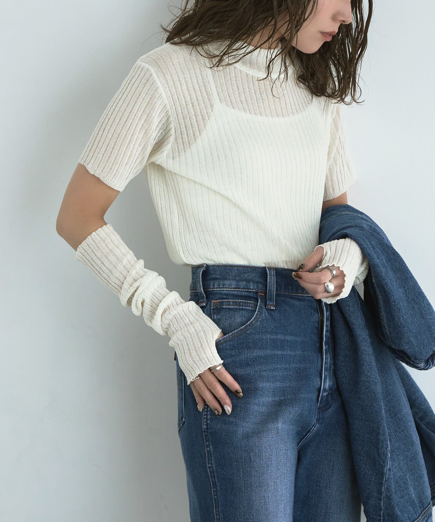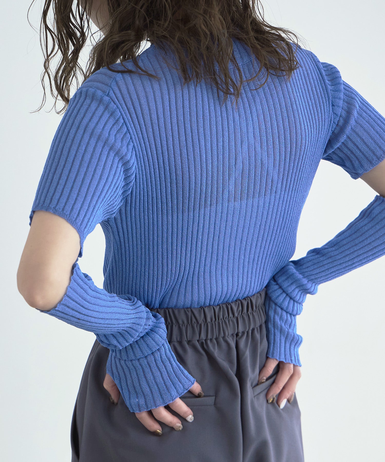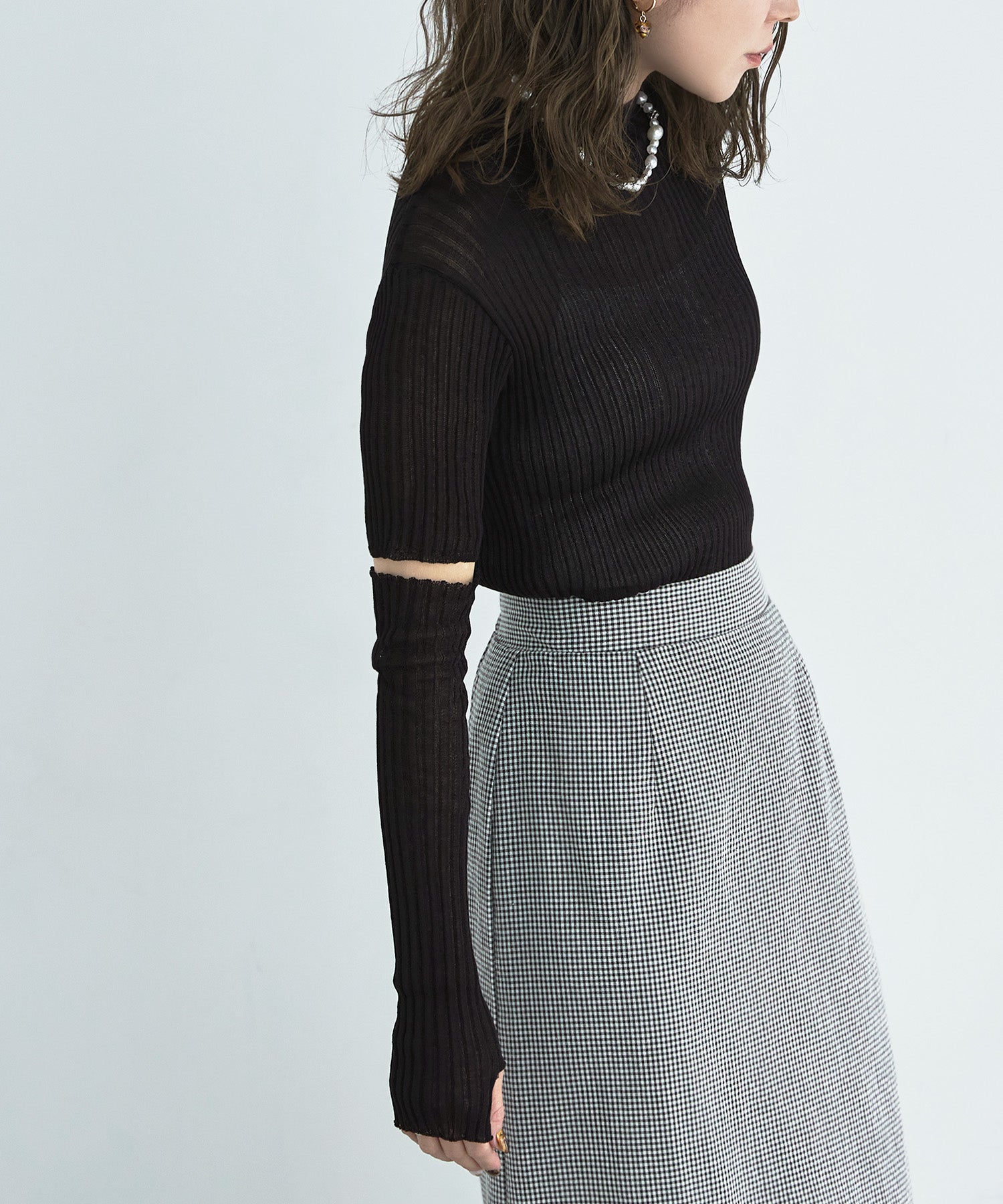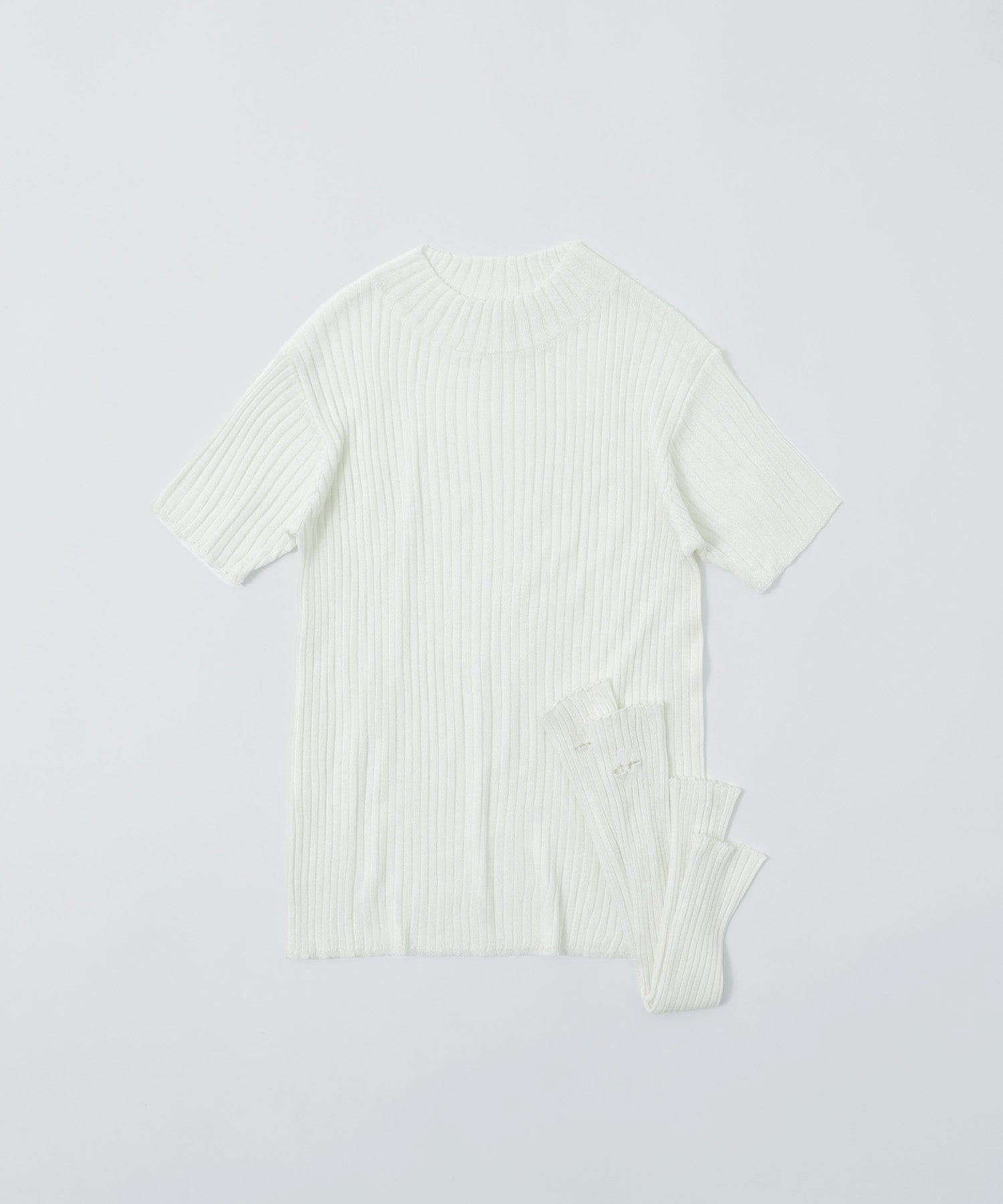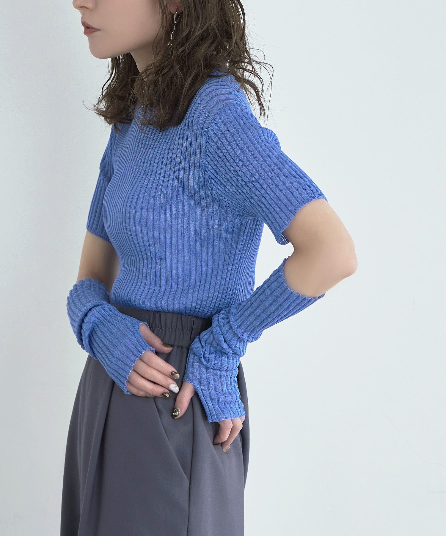 モックネックのショートスリーブニットと、アームウォーマーがセットになったマルチデザイン。