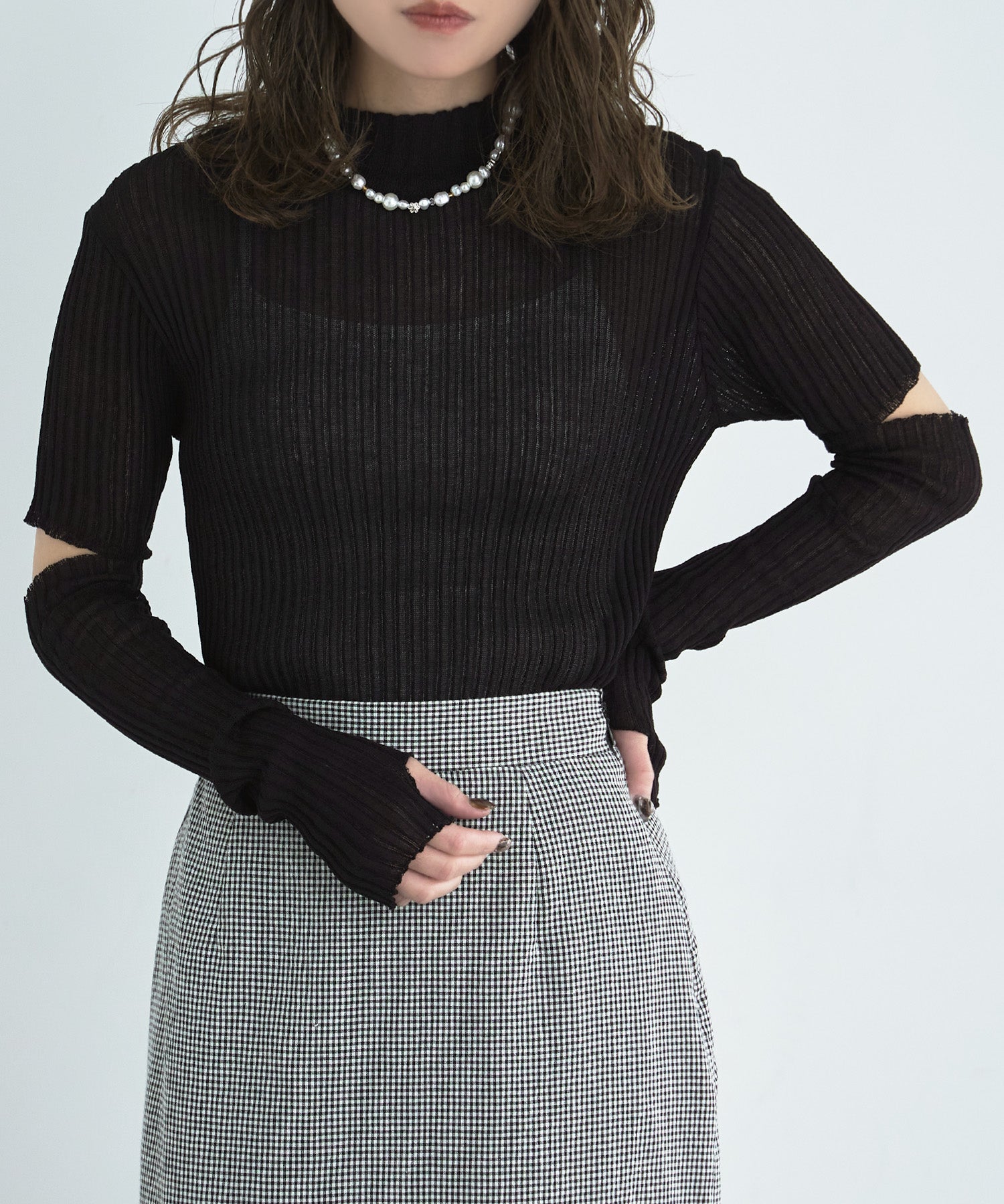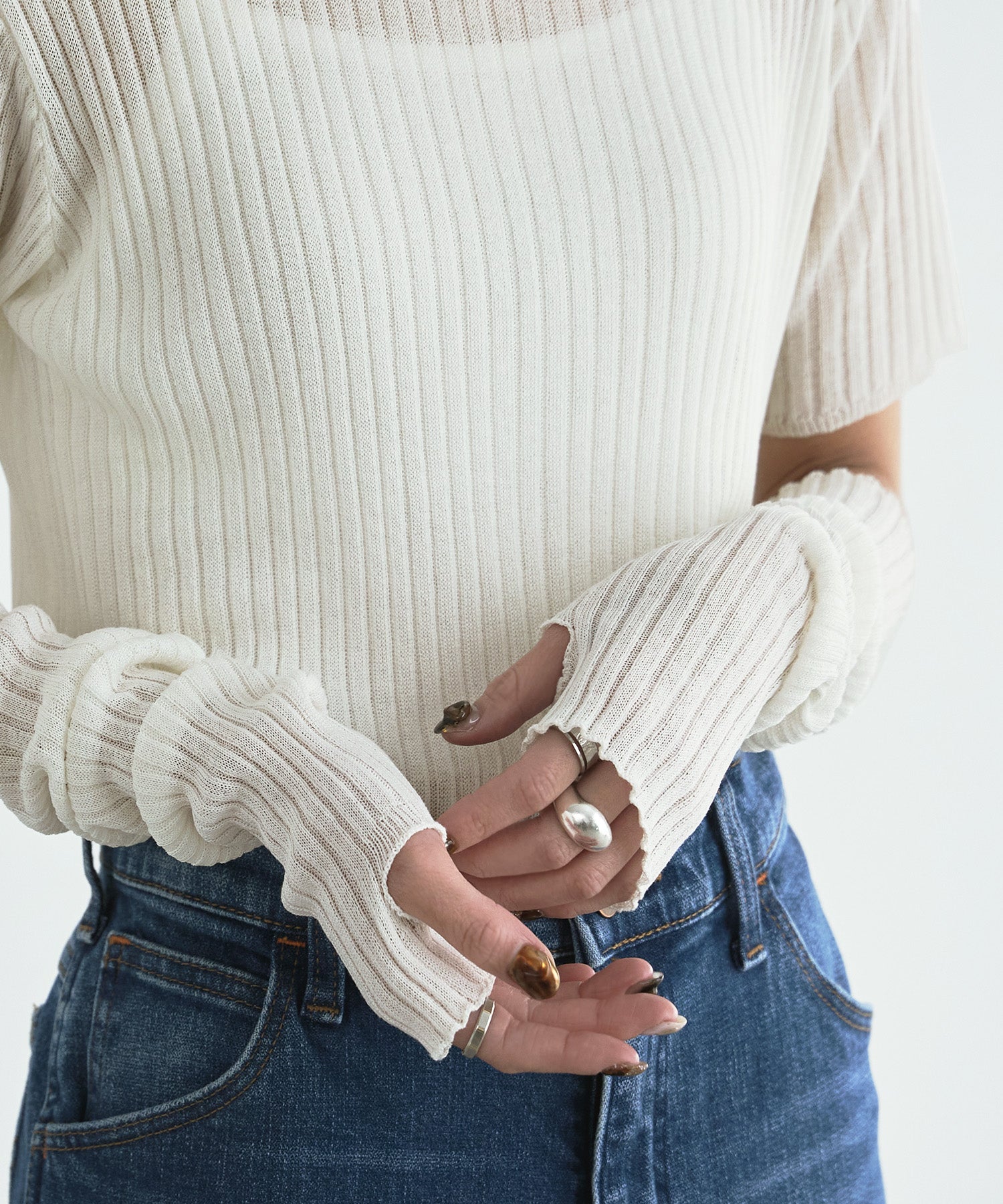 袖コンシャスで様々な着こなしが楽しめる、3WAYアームウォーマーリブニット。