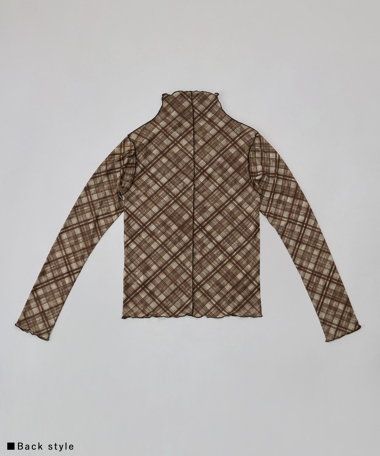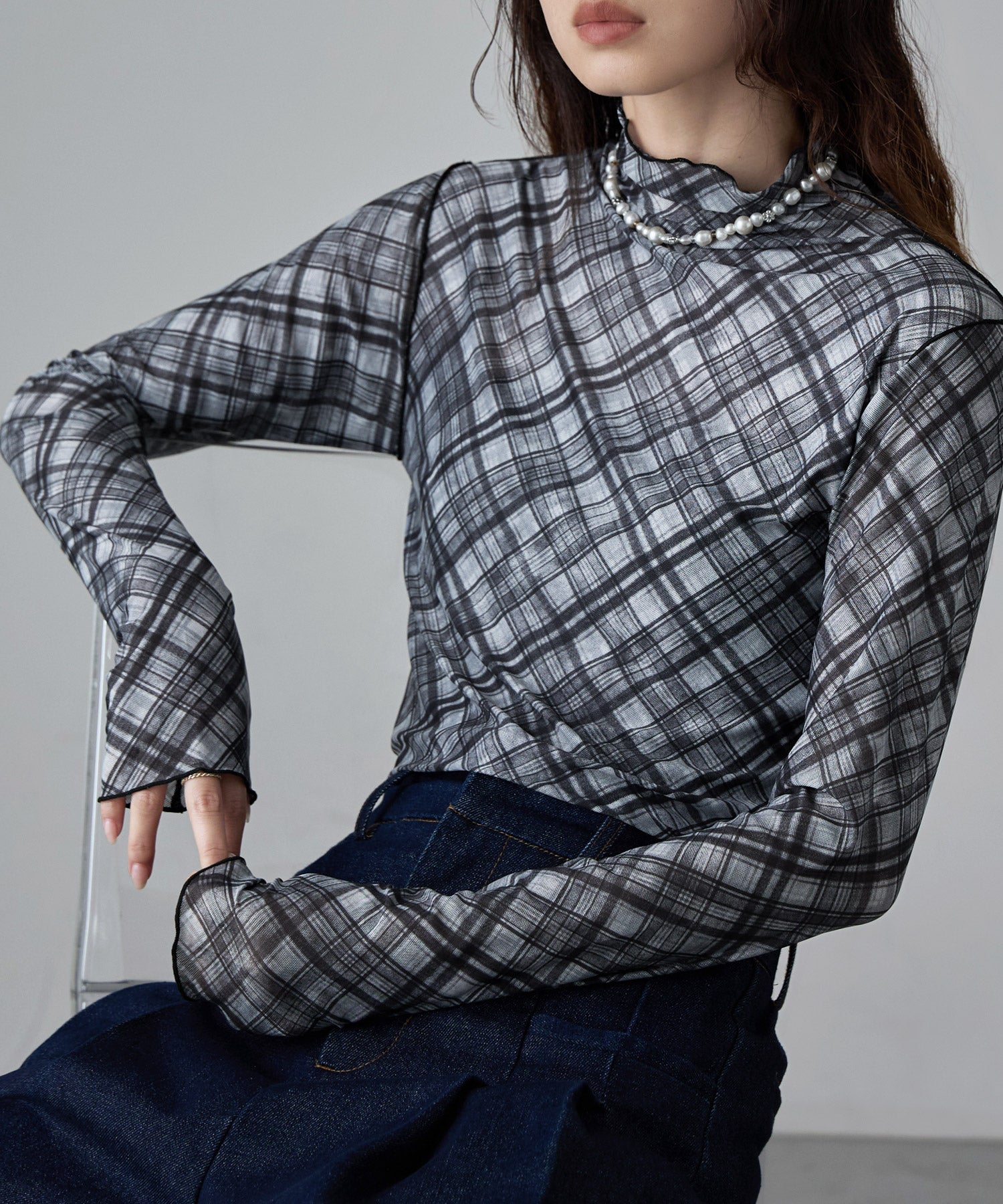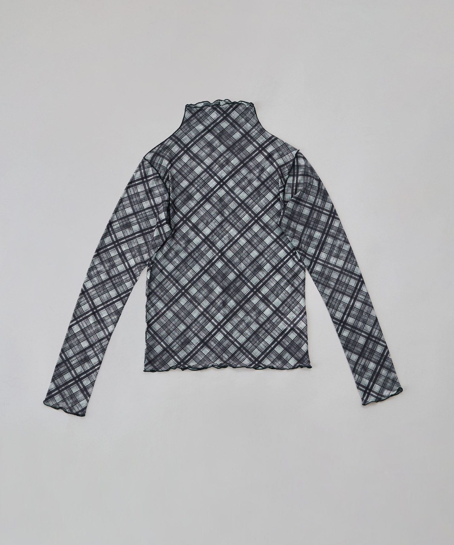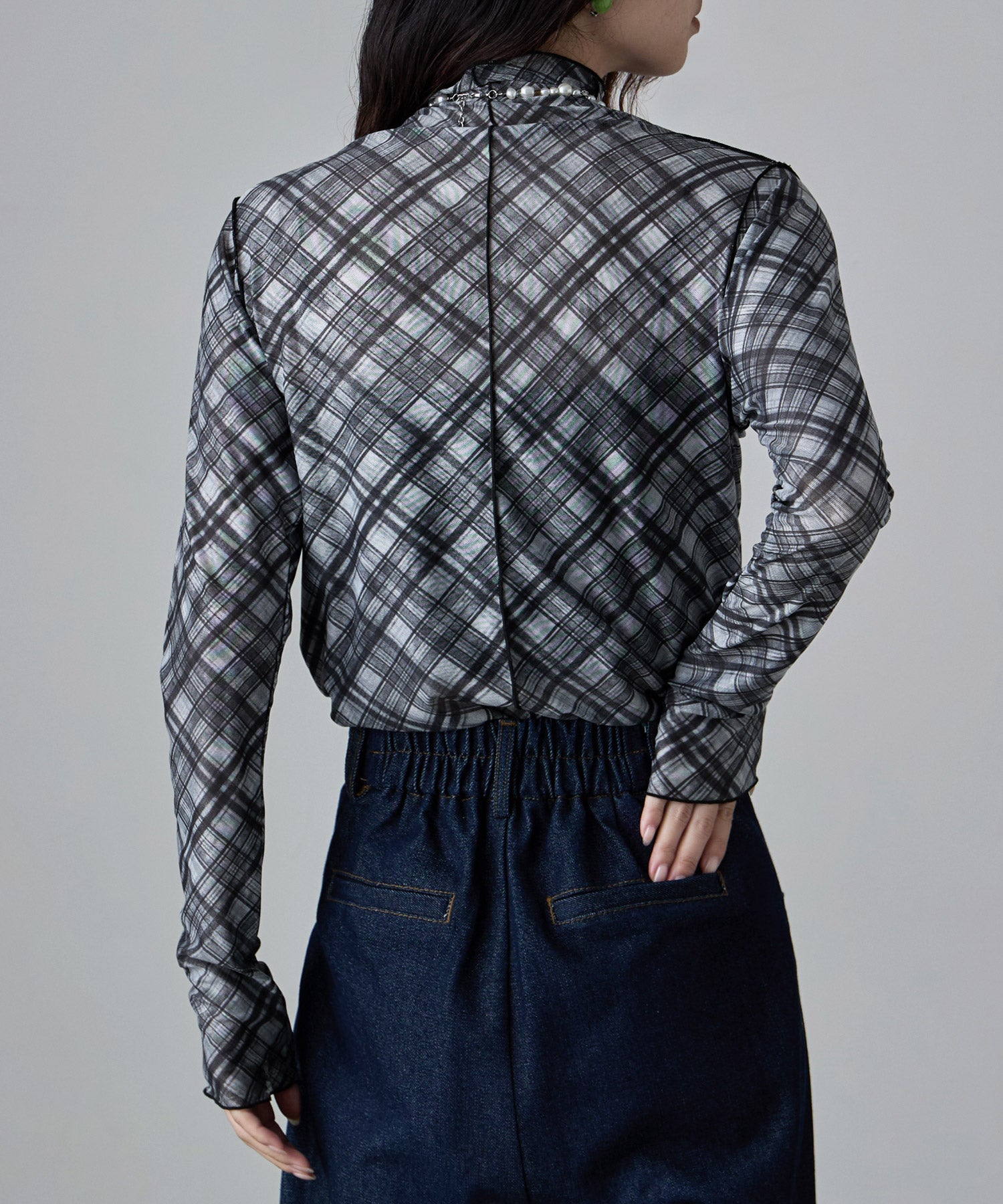 Zname チェック柄シアーボトルネックトップス