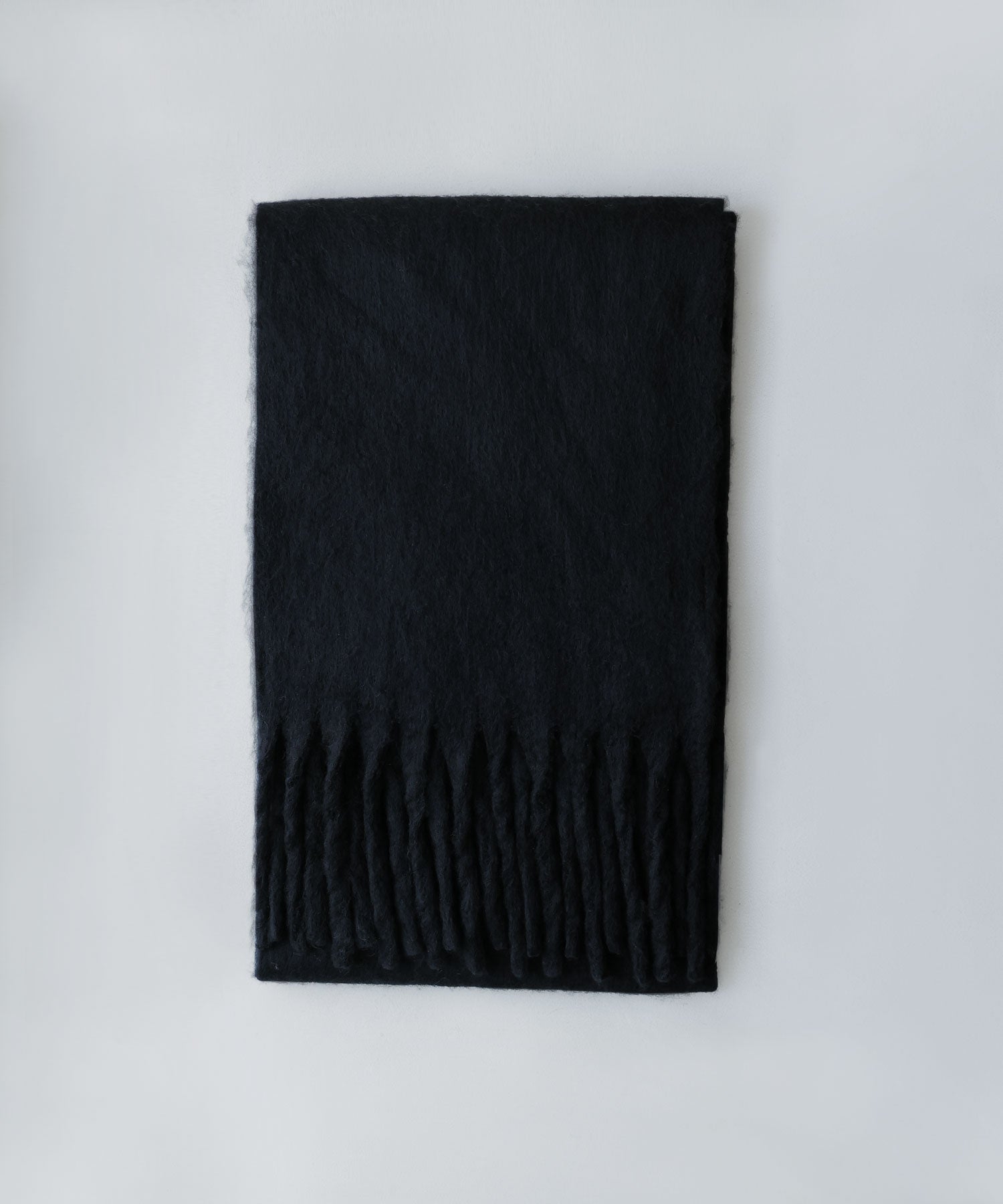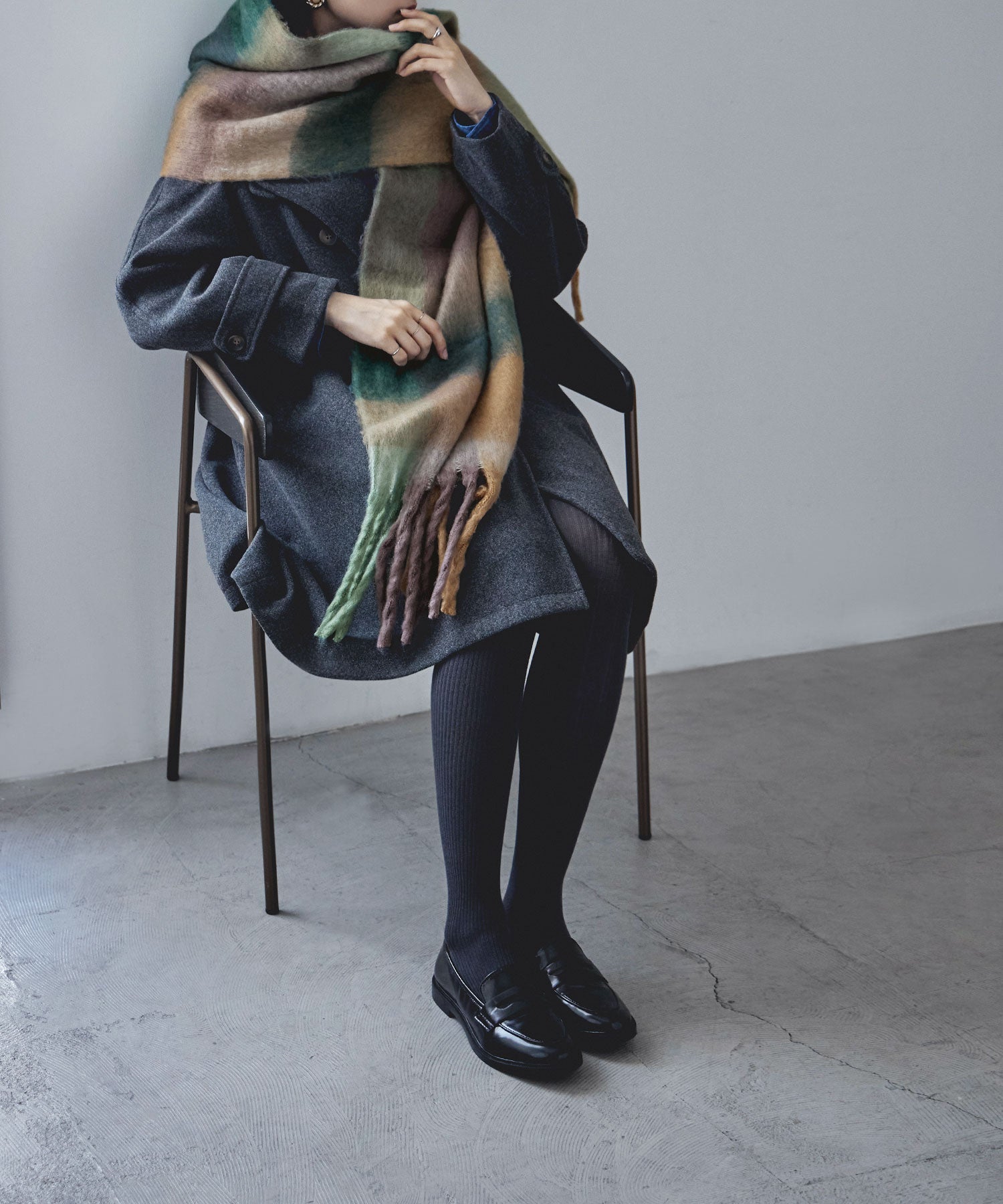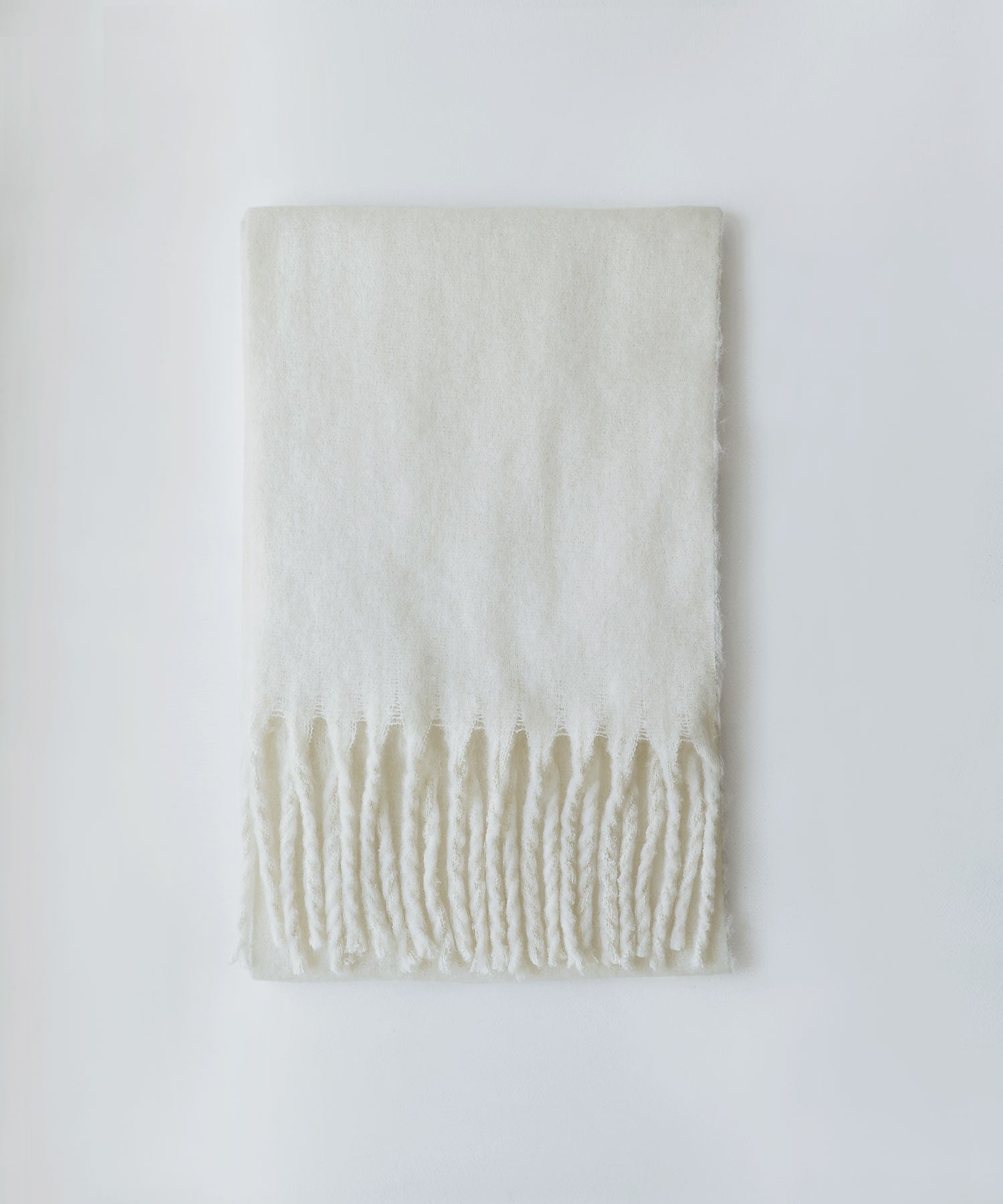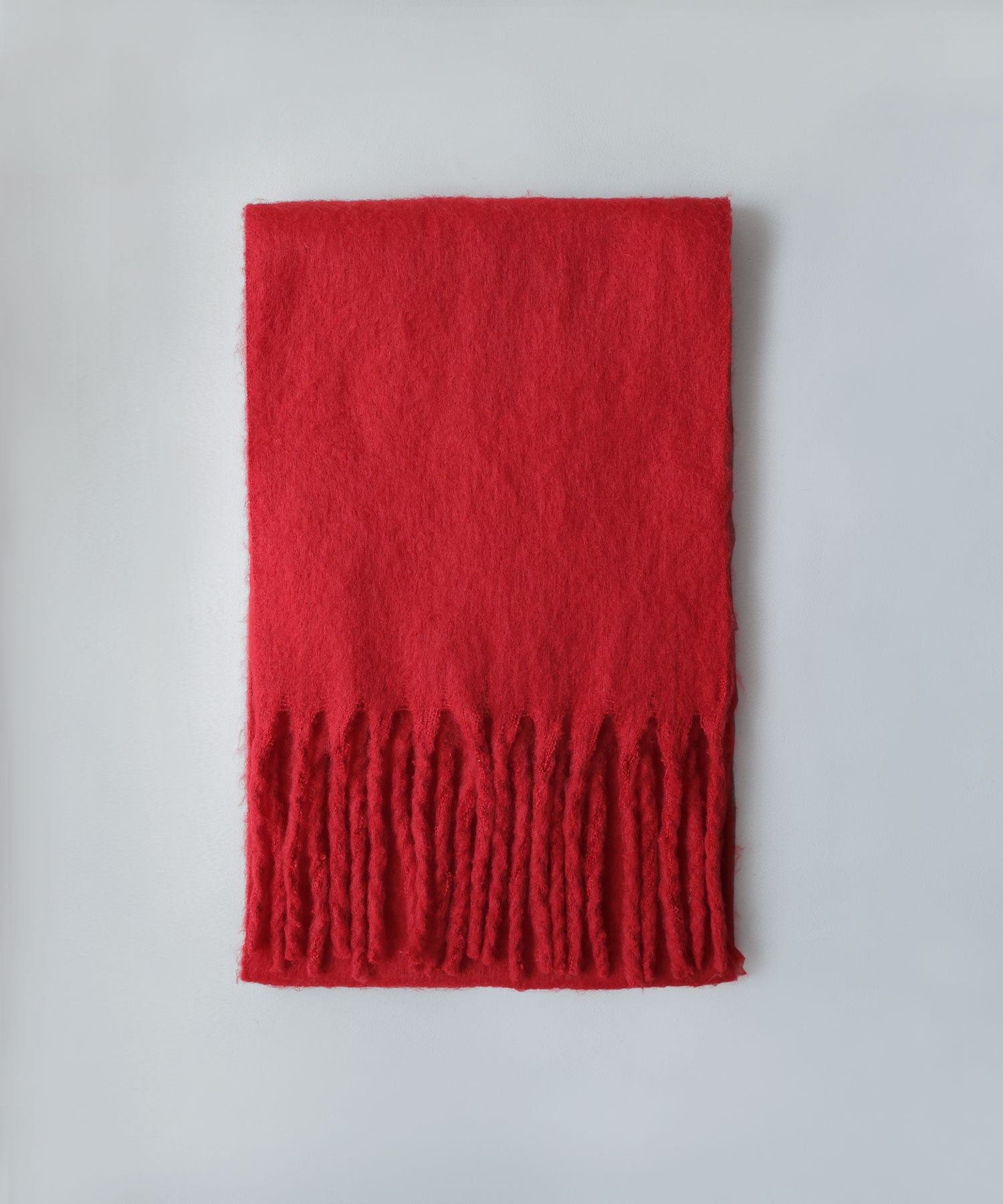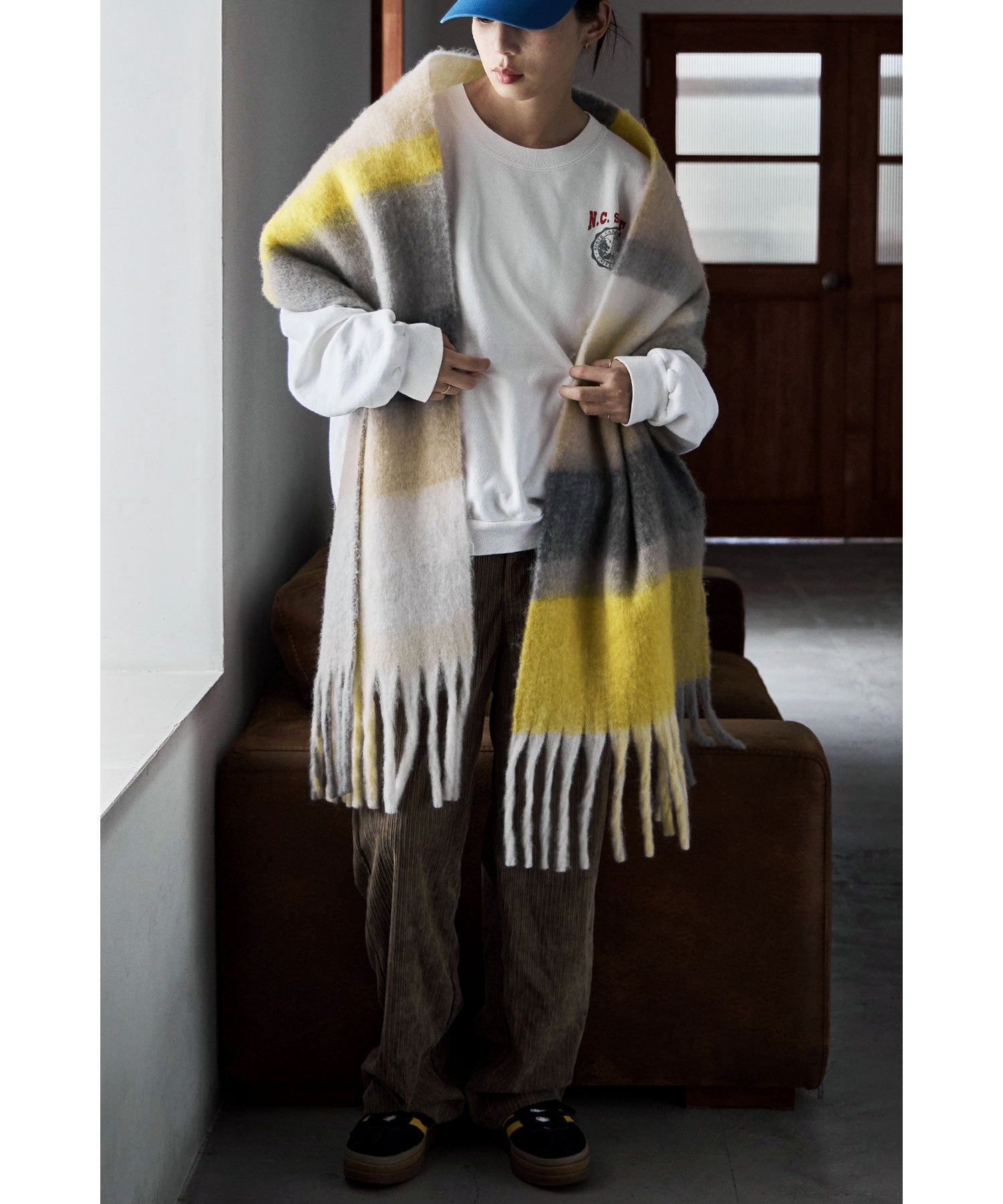 顔が埋もれるくらいふわりとした素材感で、服に負けない存在感を発揮してくれるボリュームマフラー。