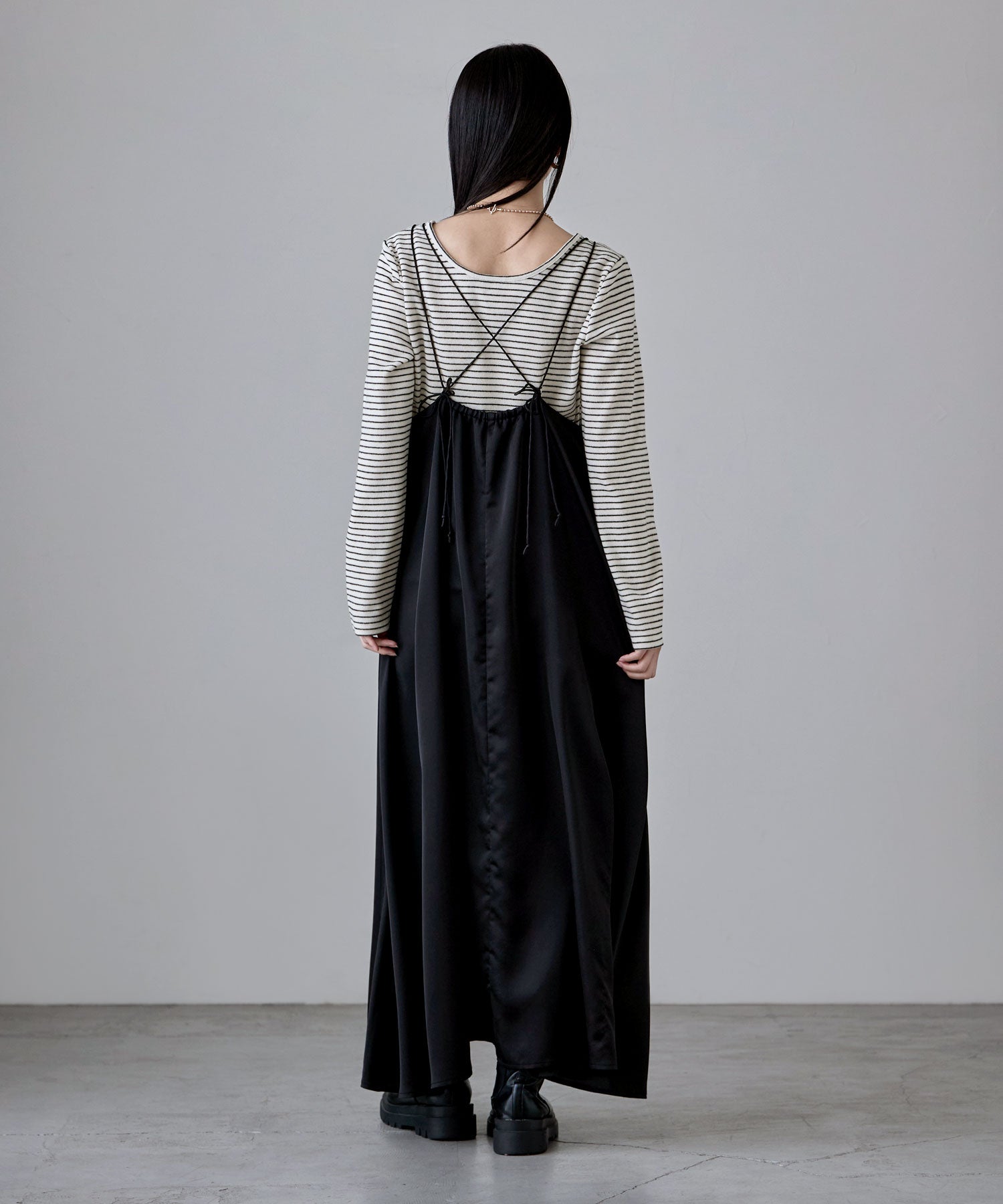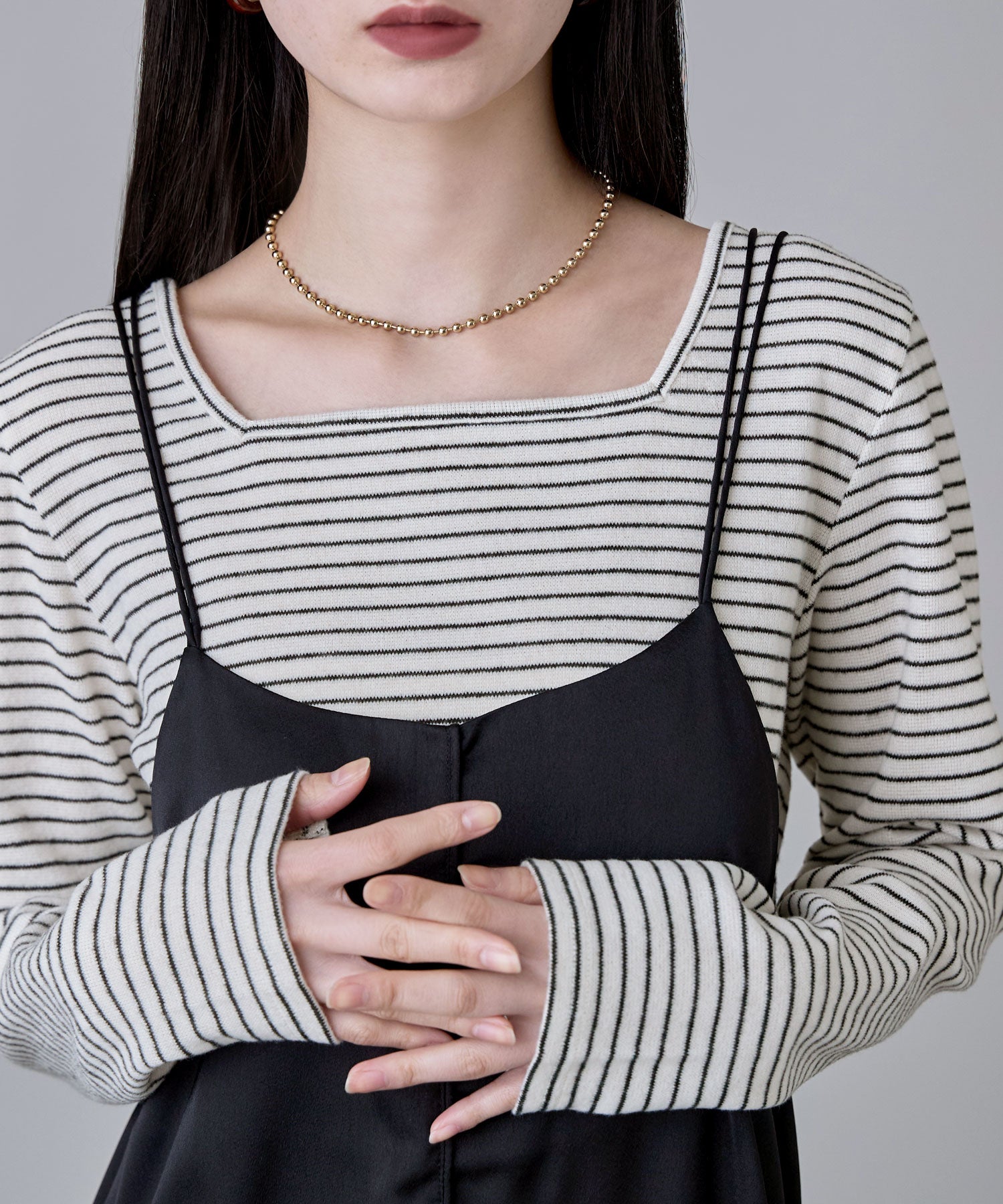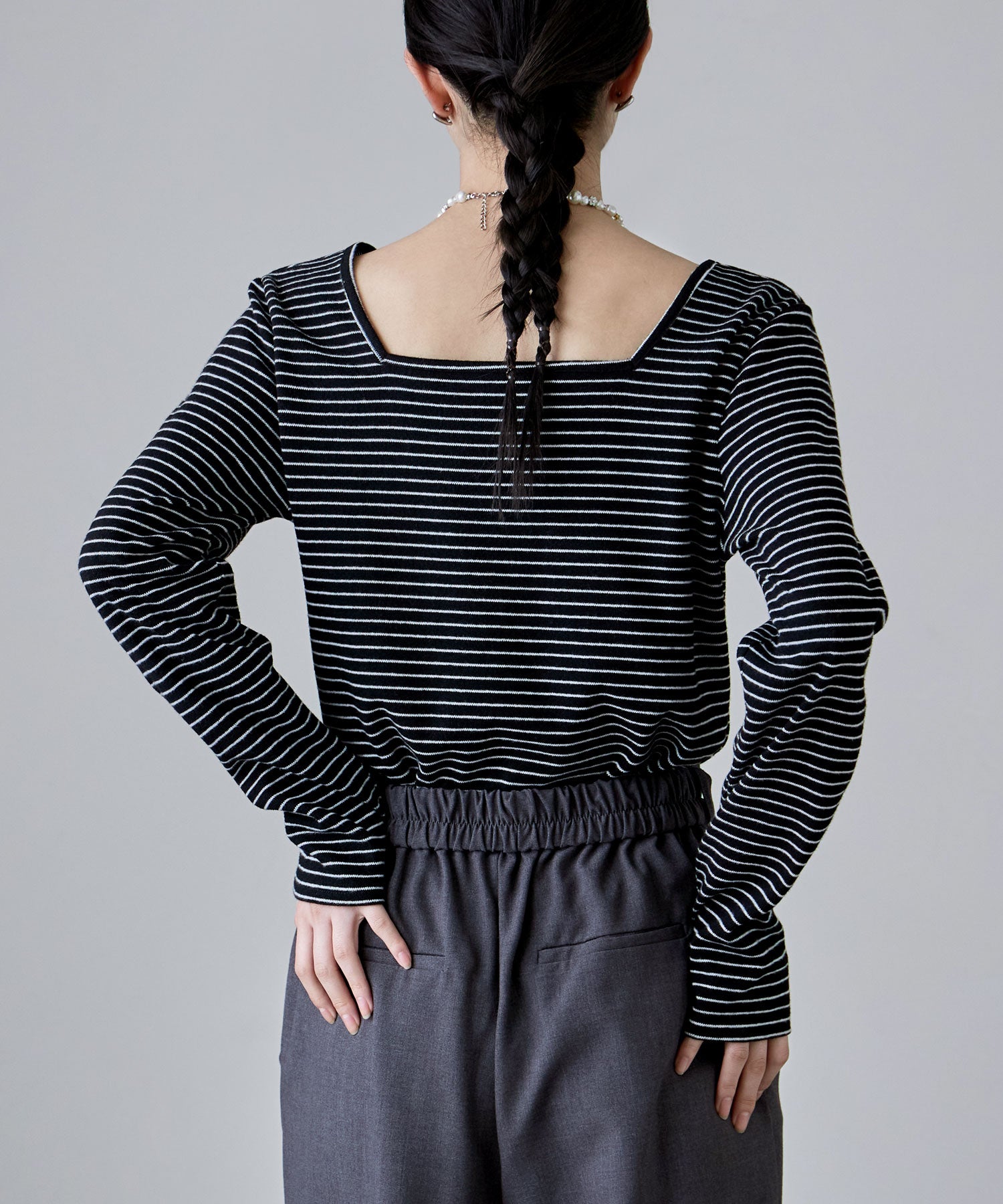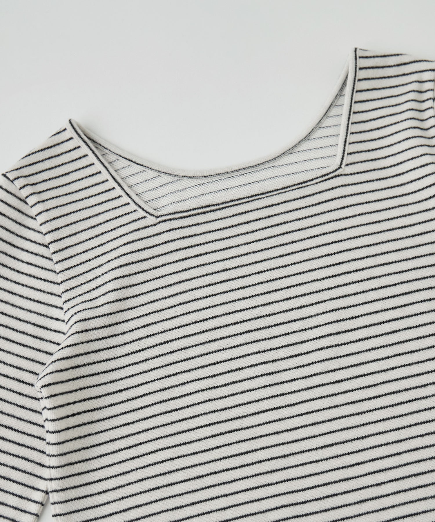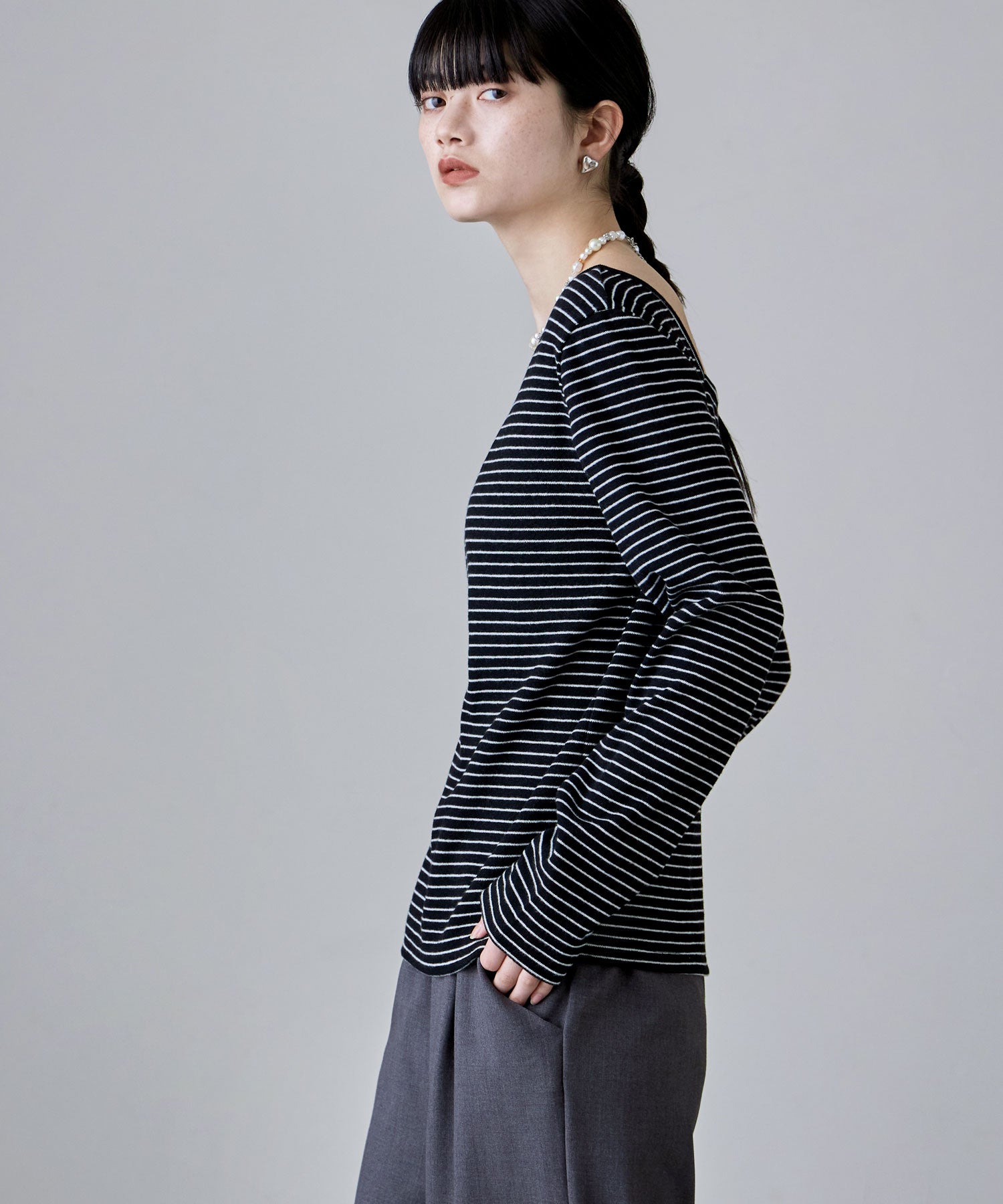クルーネックとスクエアネックで着られる前後2way仕様のバックオープンデザイン。