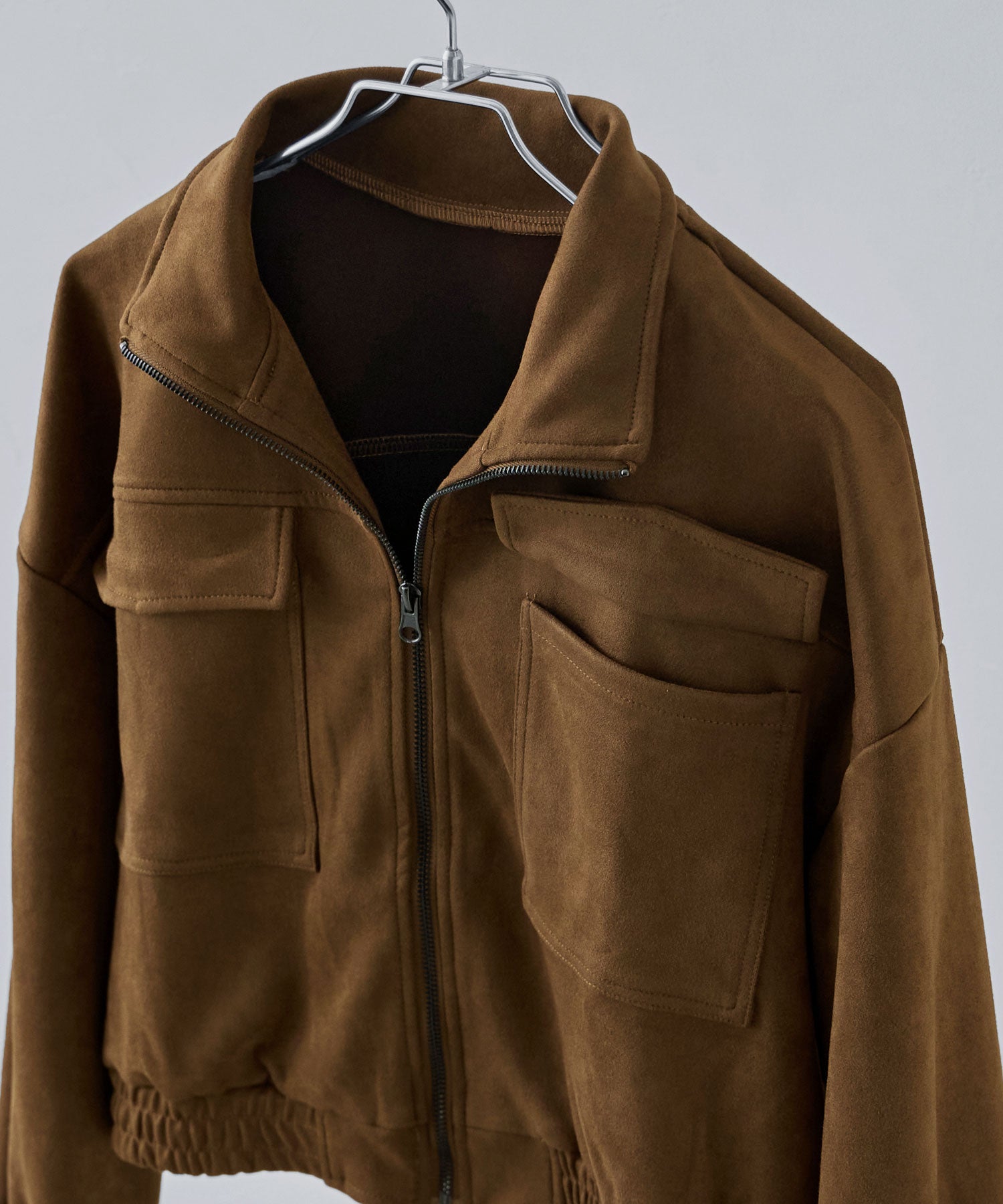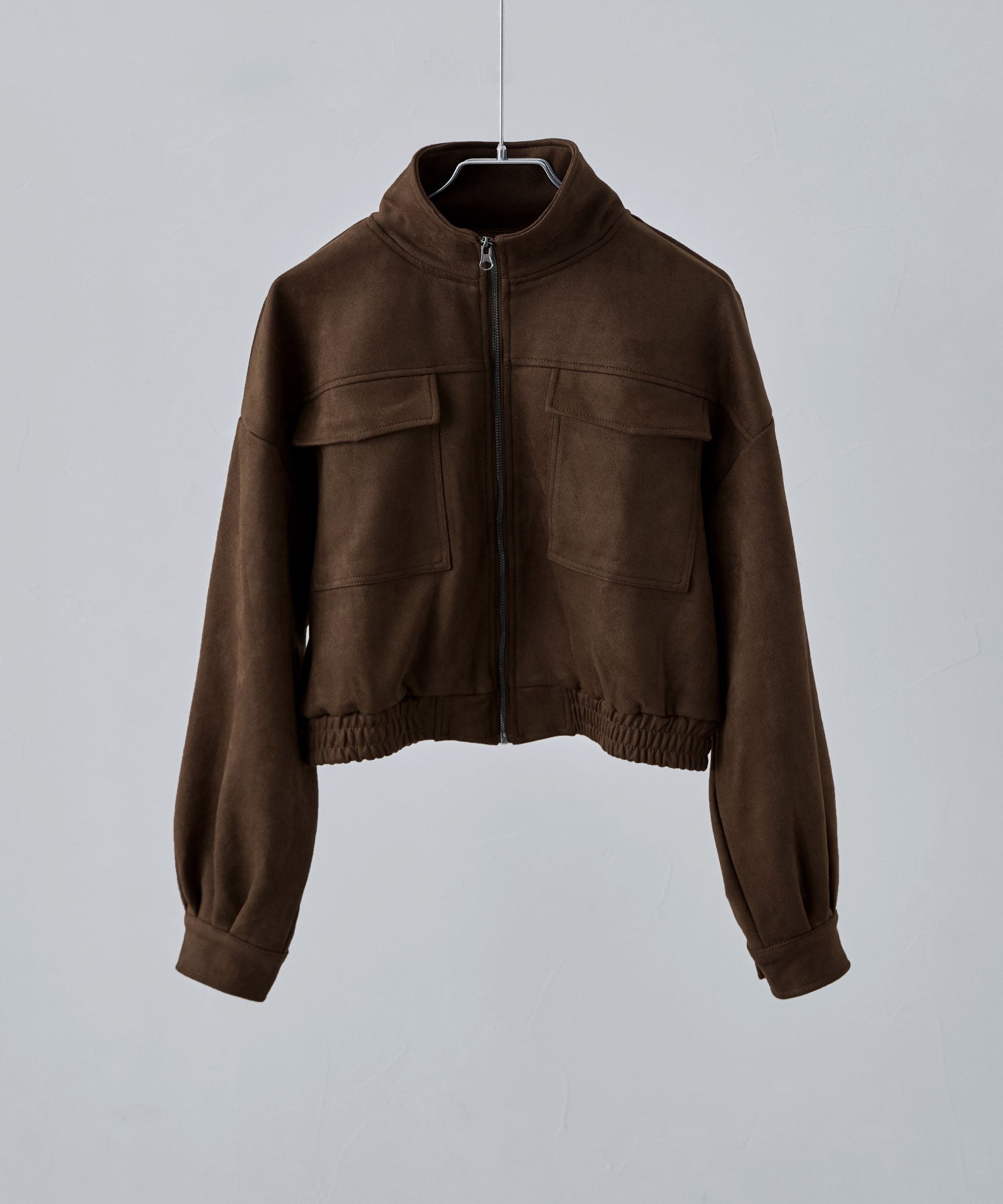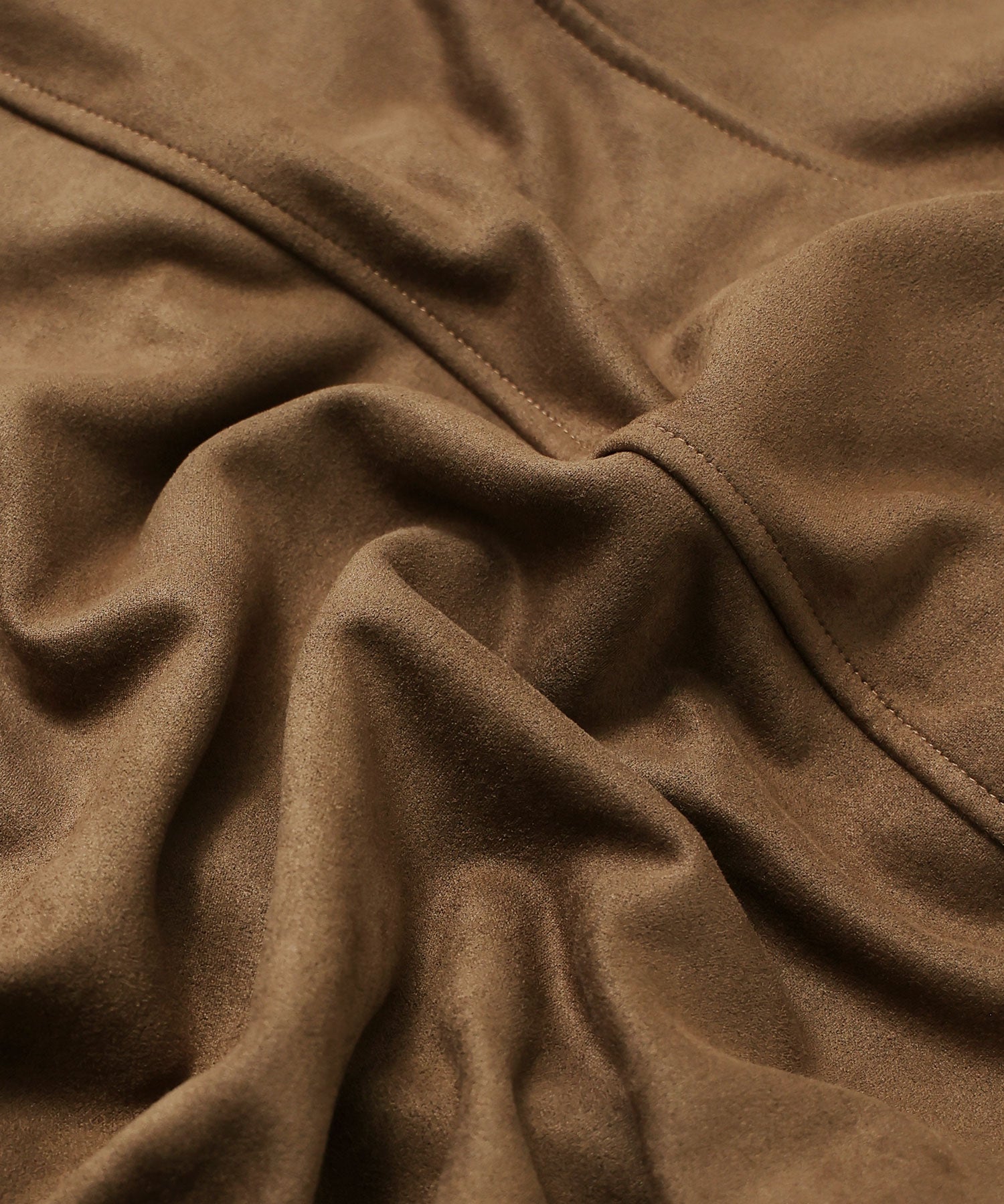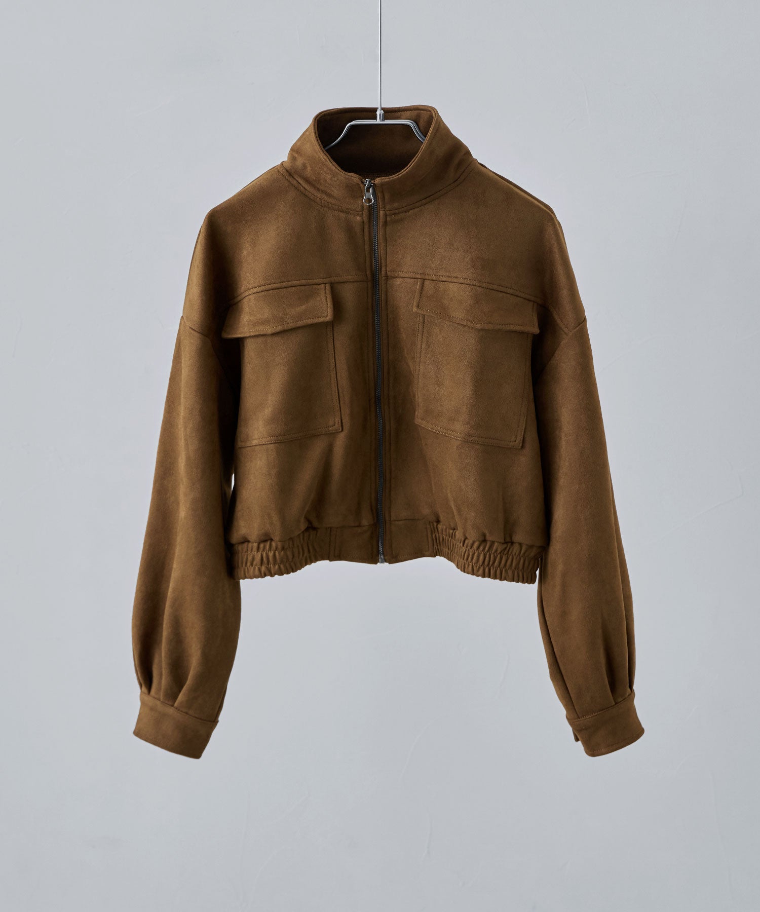 ハイセンスなスタンドネック、気軽に羽織れるくたっと感が魅力のスエード風素材。