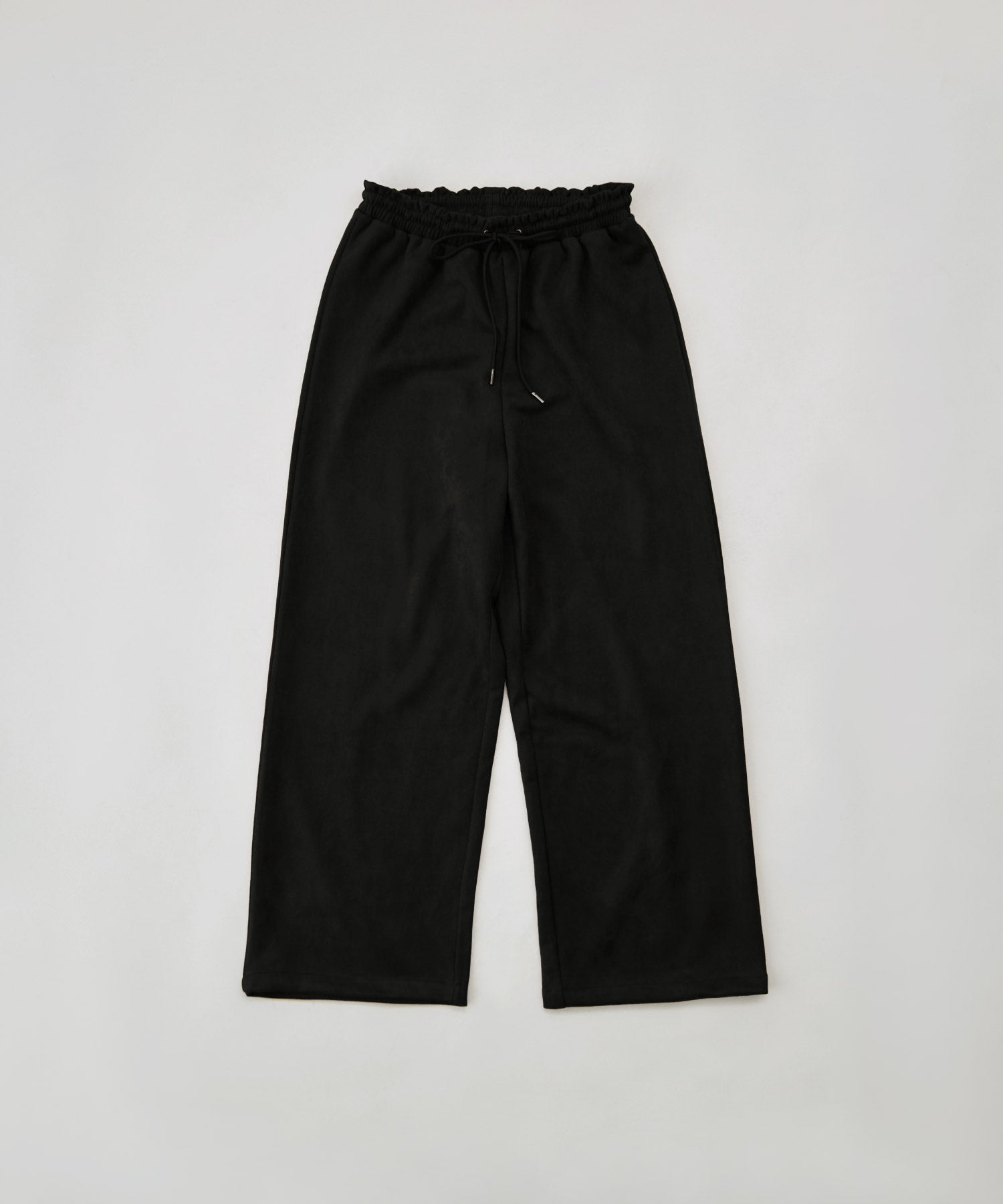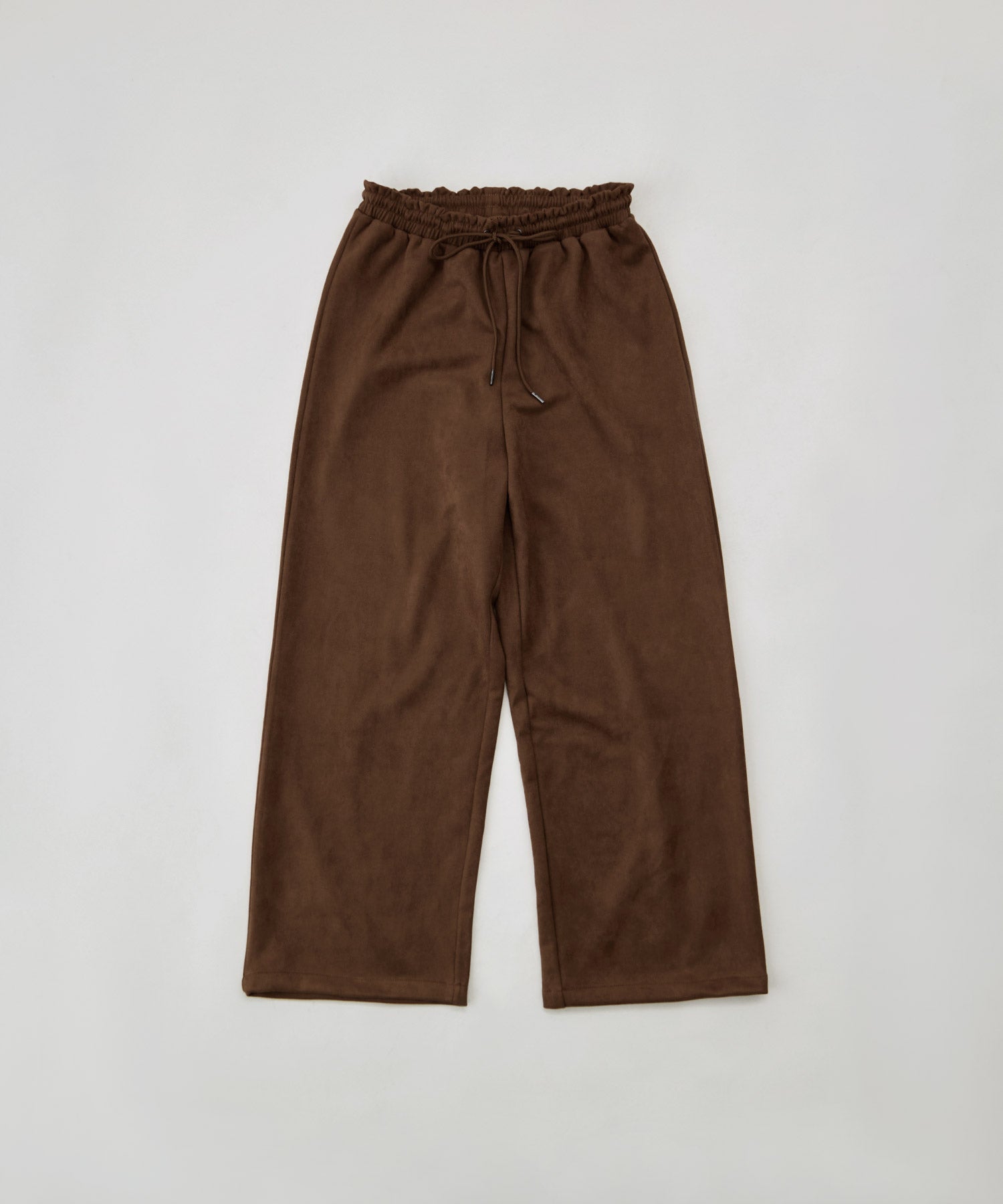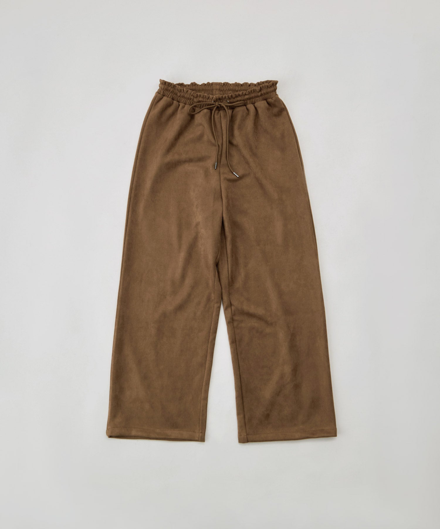 Rname スエードライクワイドイージーパンツ ボトムス パンツ ワイドパンツ ストレートパンツ イージーパンツ スウェード ロング 長ズボン スエード 無地 ウエストゴム 起毛 総ゴム 楽ちん