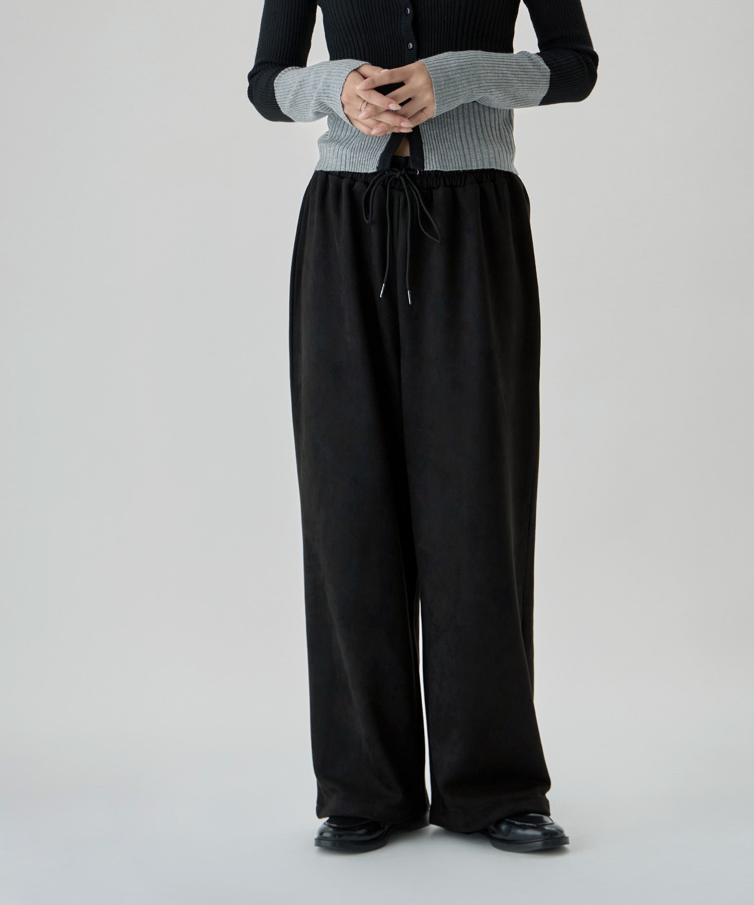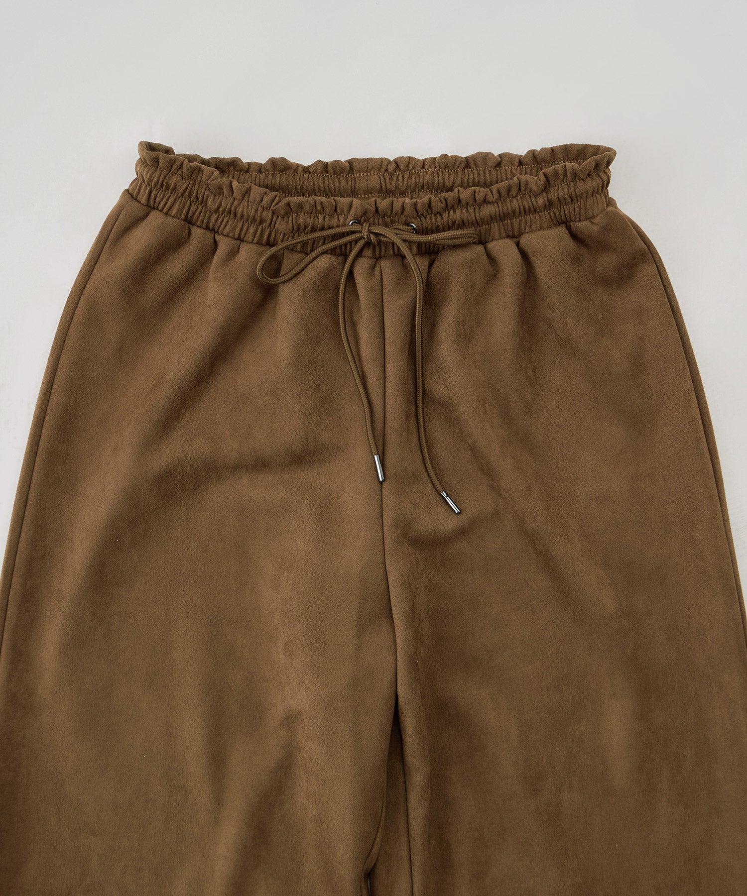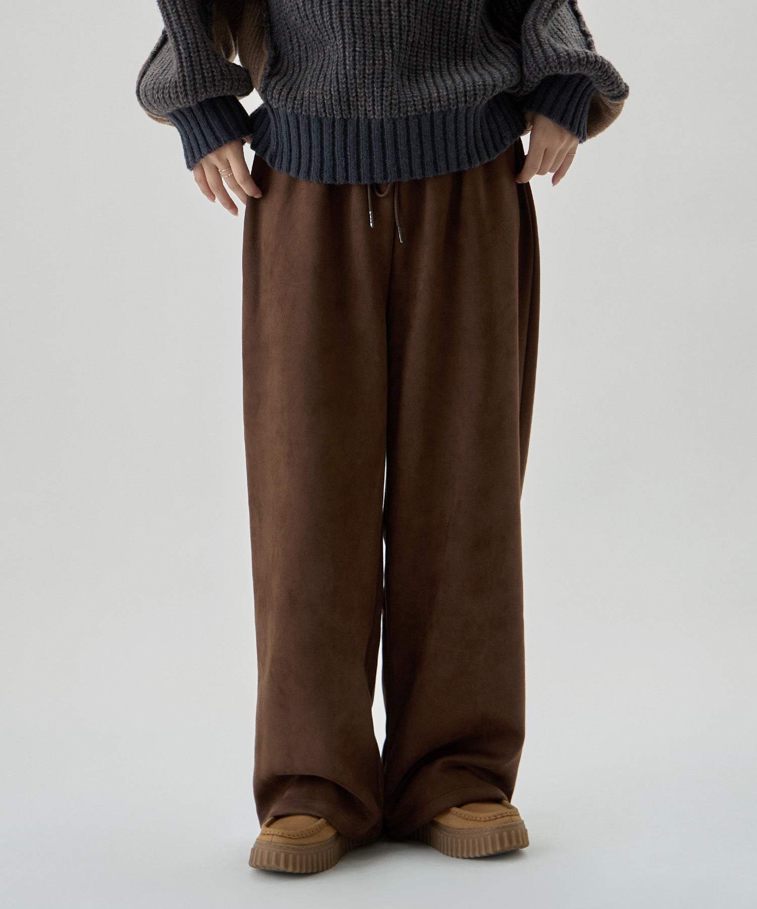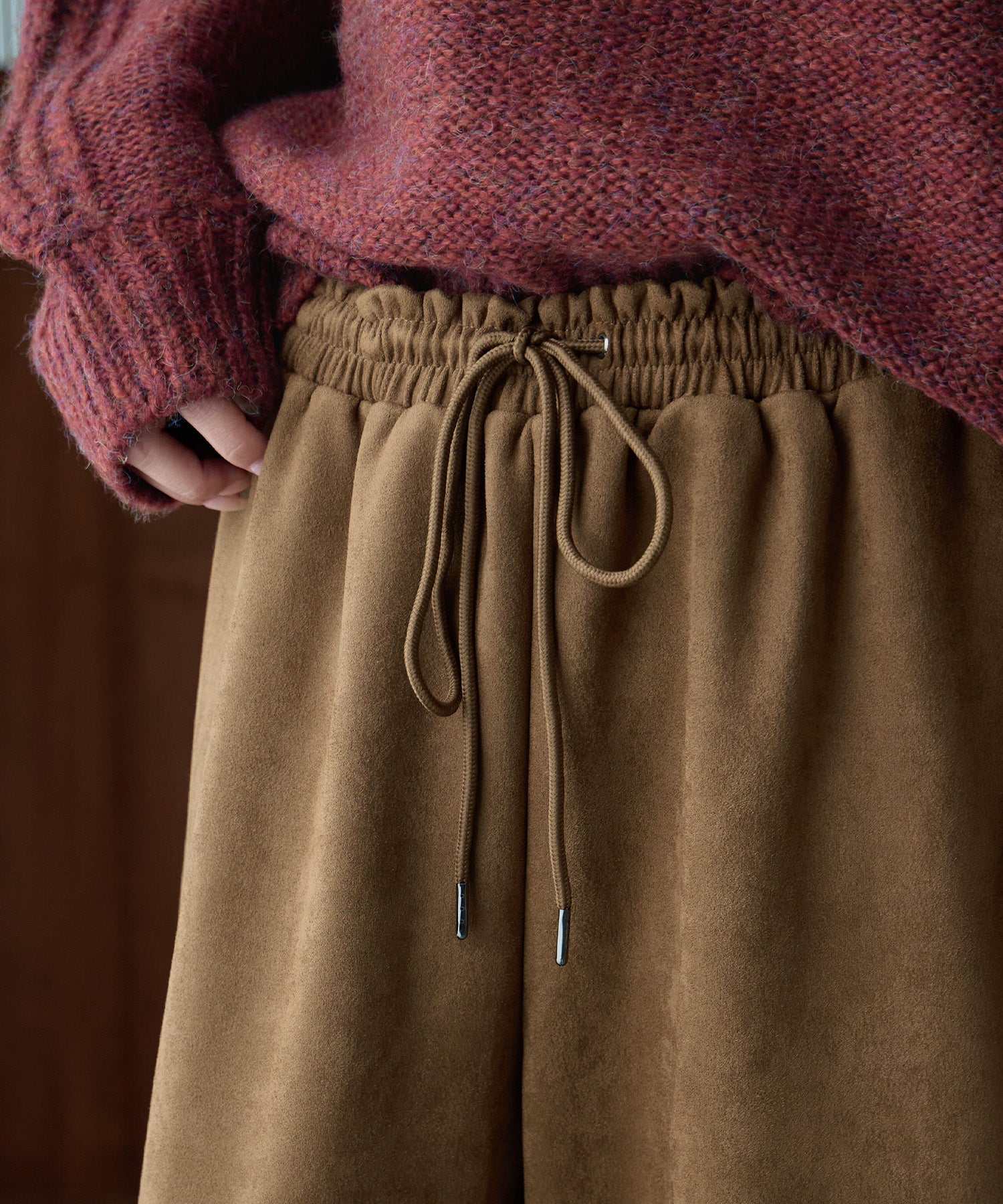 シーズンムードの高まるフェイクスエード素材で仕立てたワイドパンツ。