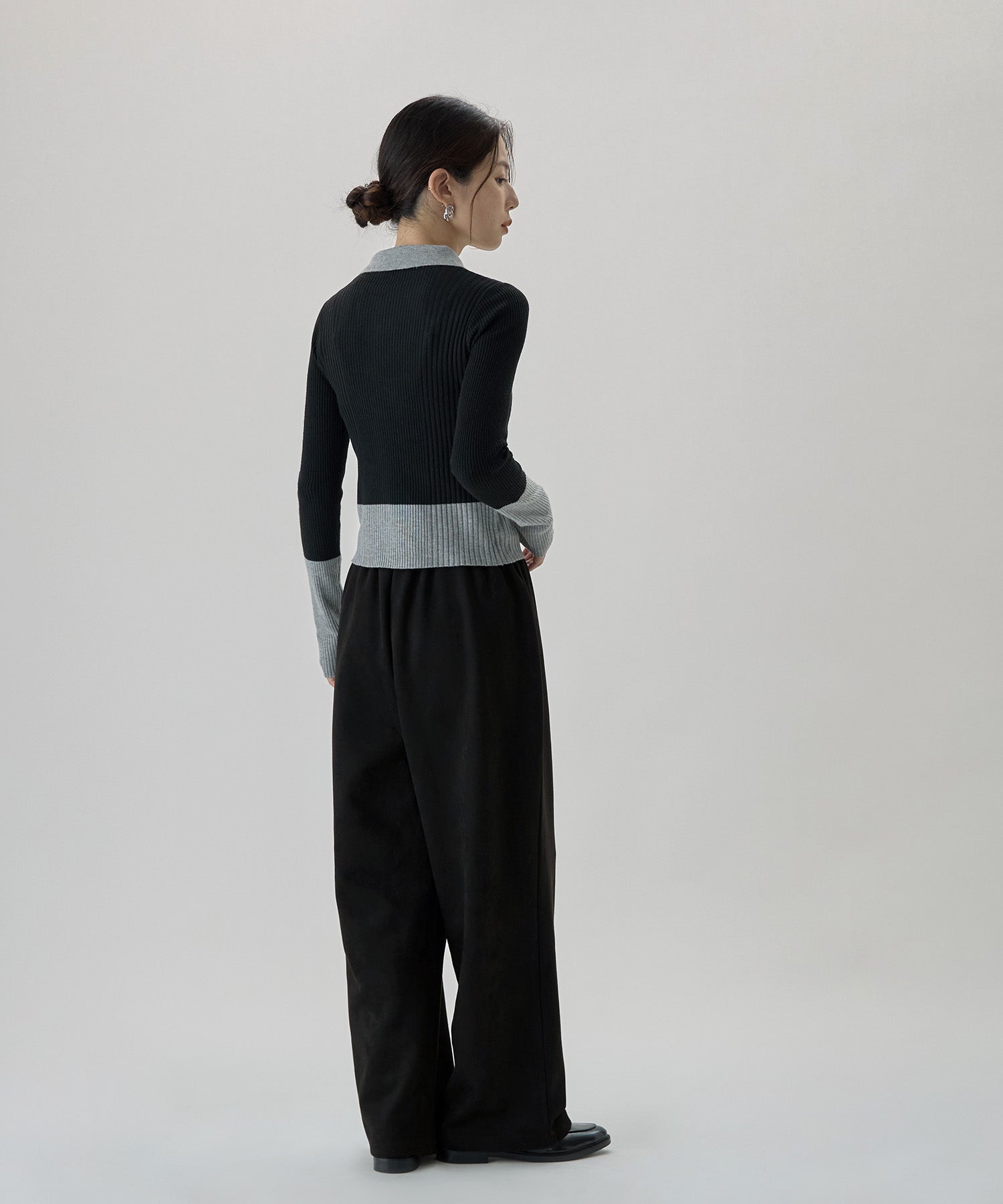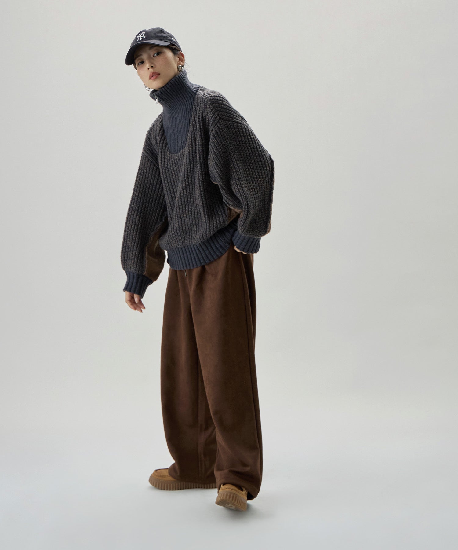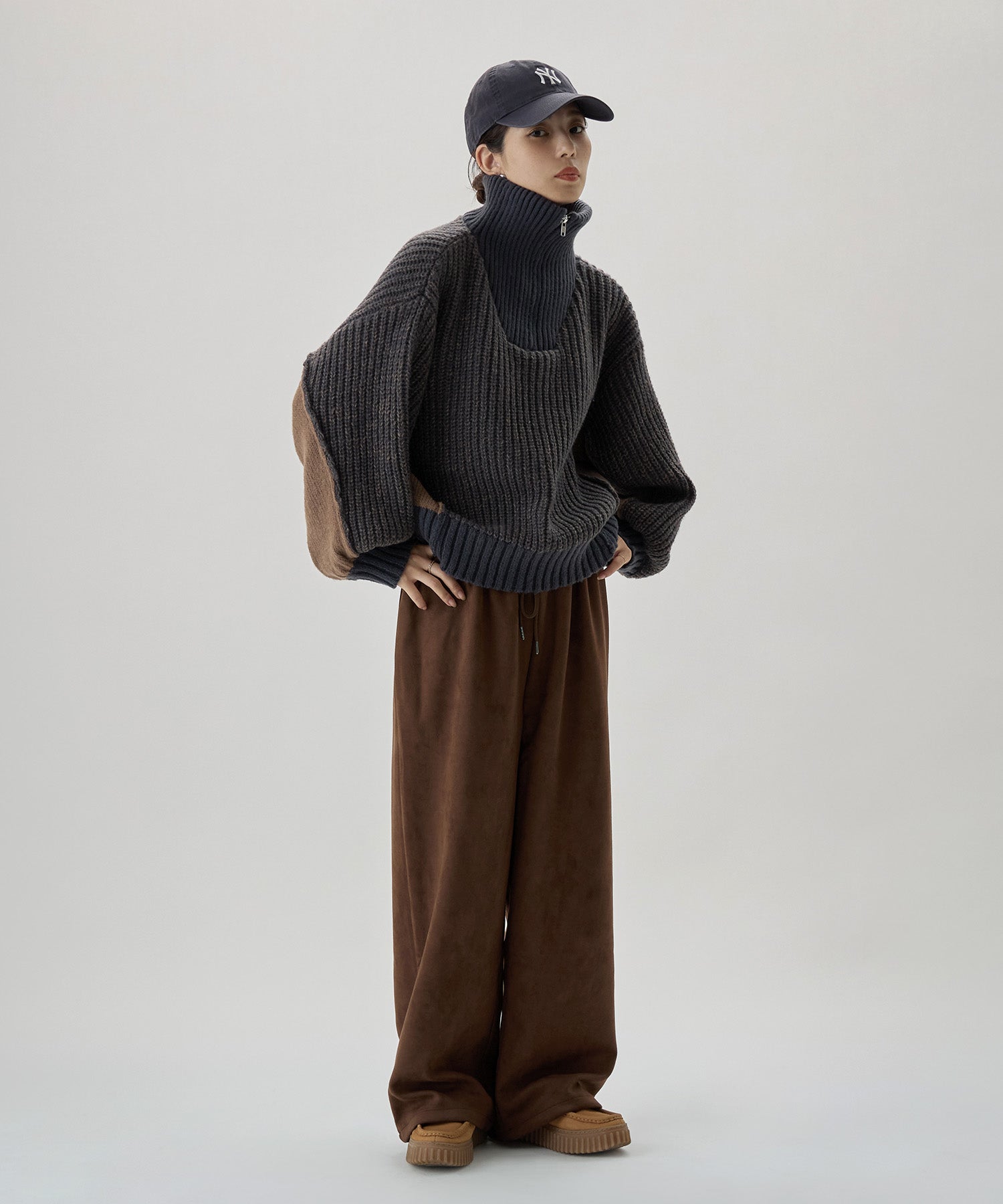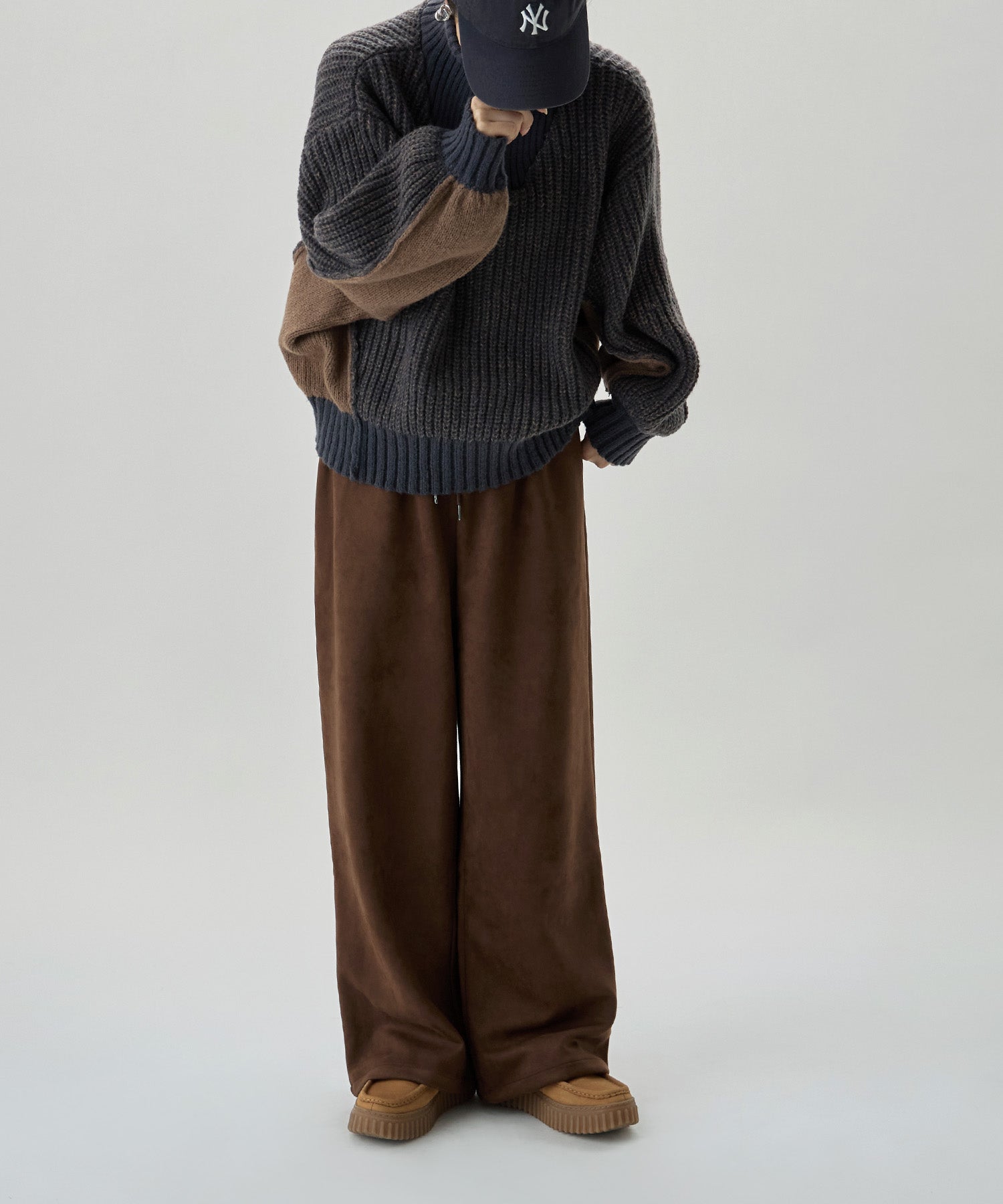 シーズンムードの高まるフェイクスエード素材で仕立てたワイドパンツ。