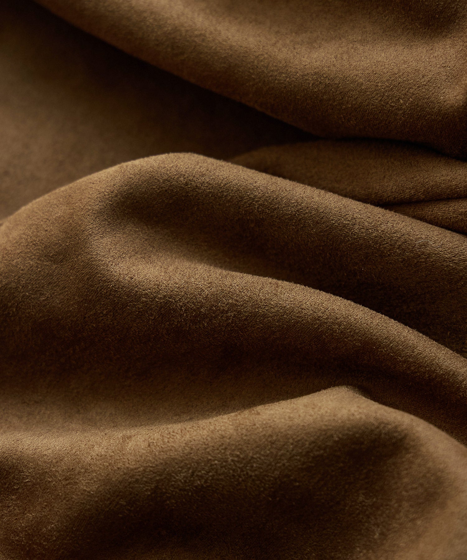 スエード生地特有の微起毛素材の柔らかな手触りで、品をキープしたまま肩の力が抜けた仕上がりに。
