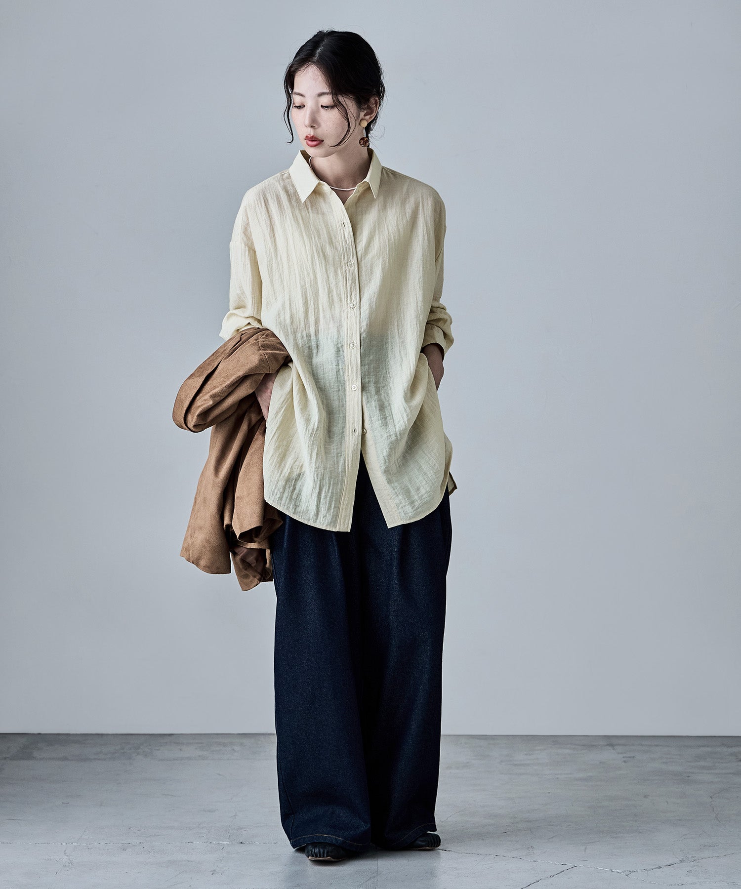 羽織りとしてはもちろん一枚での着こなしも映えてくれる。