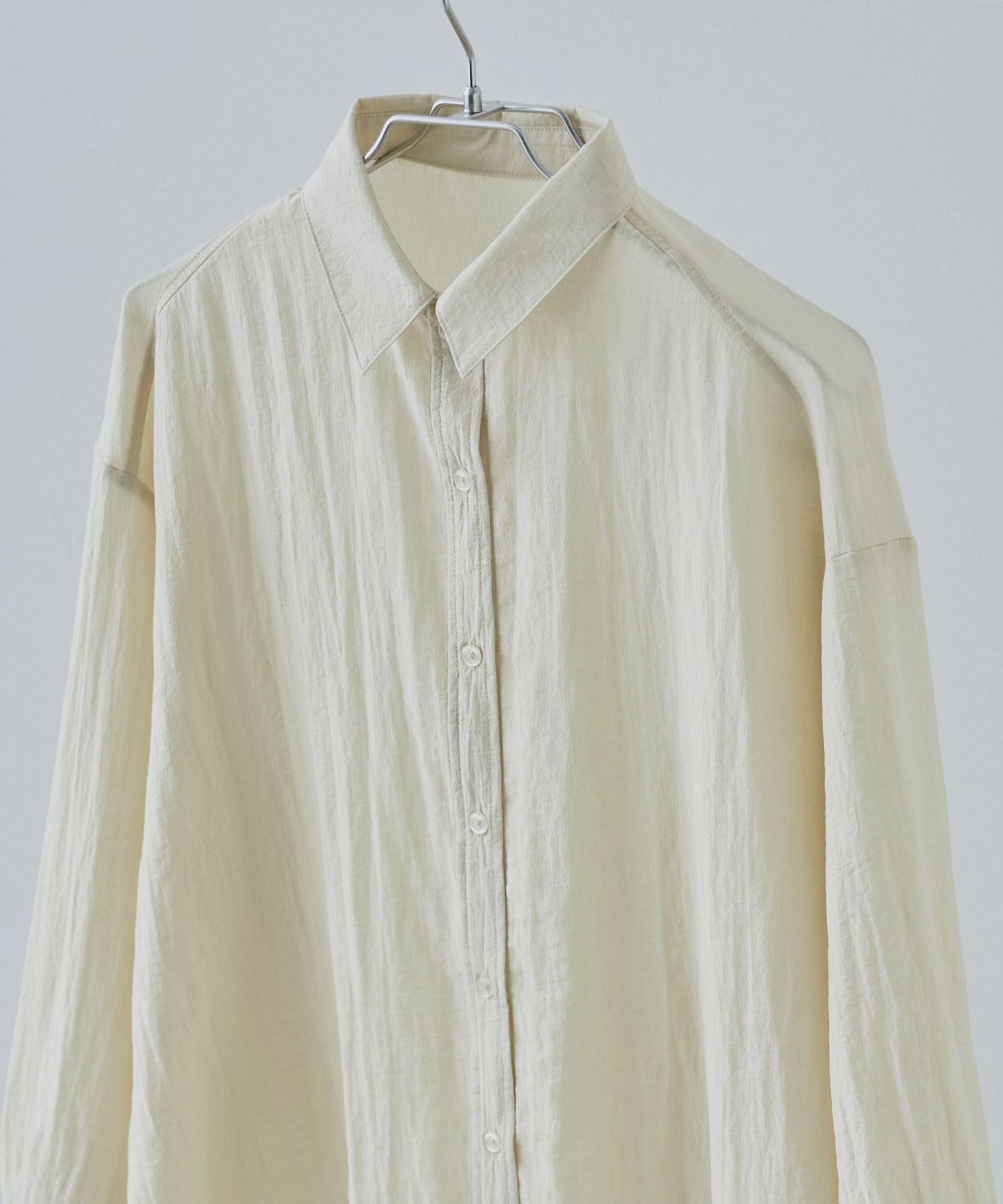 洗いざらしのような自然なシボ感のあるワッシャー生地で、表情豊かな見た目が奥行きをもたらし、