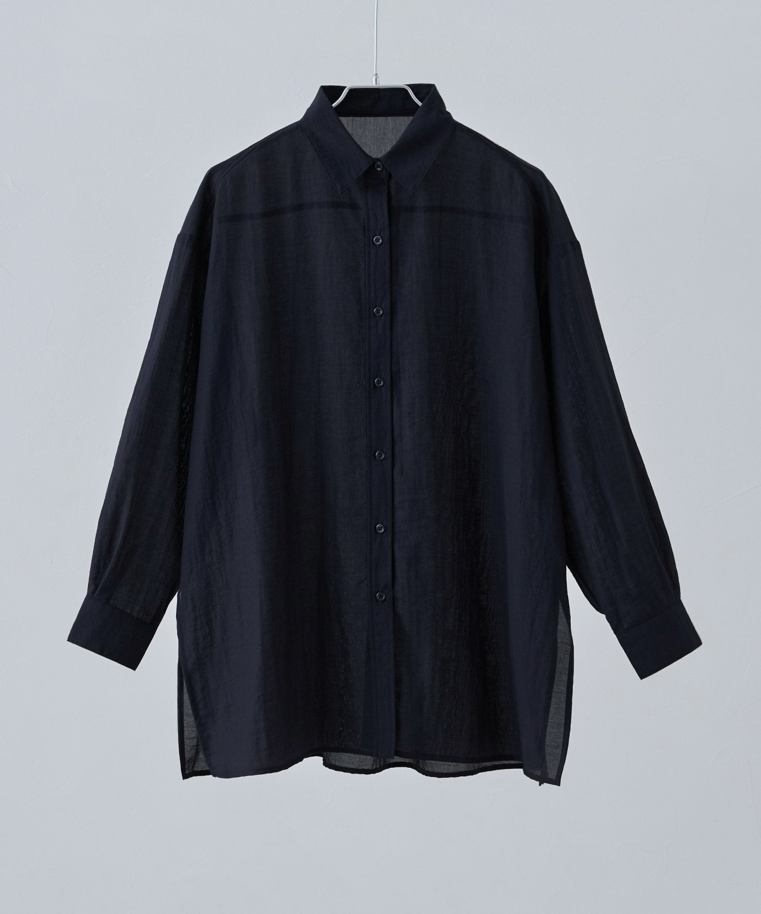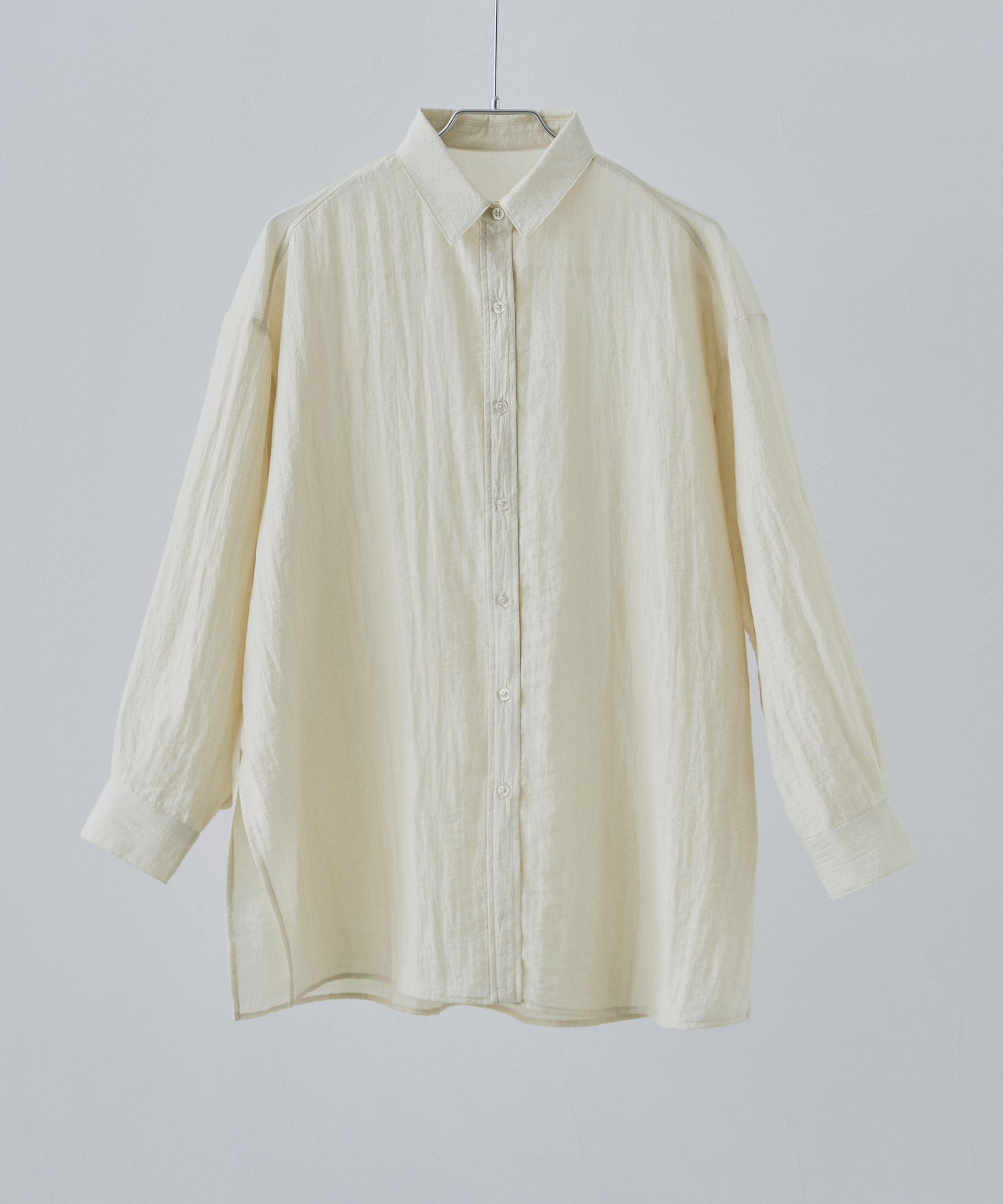 Rname ワッシャーシアーオーバーシャツ トップス シャツ ブラウス 長袖 シアー ビッグシルエット オーバーサイズ 透け感 レギュラーカラー 無地 ゆったり ベーシック レイヤード オーバーサイズ 羽織り 重ね着