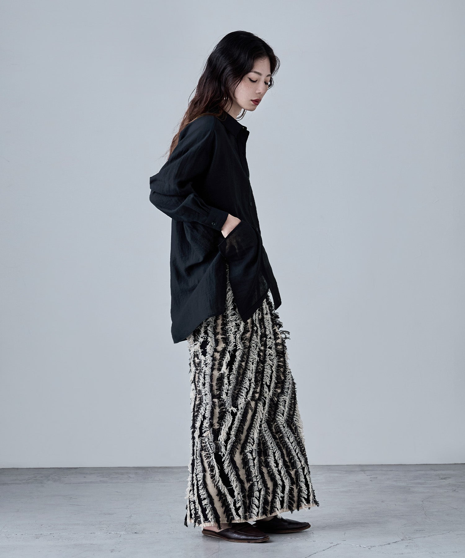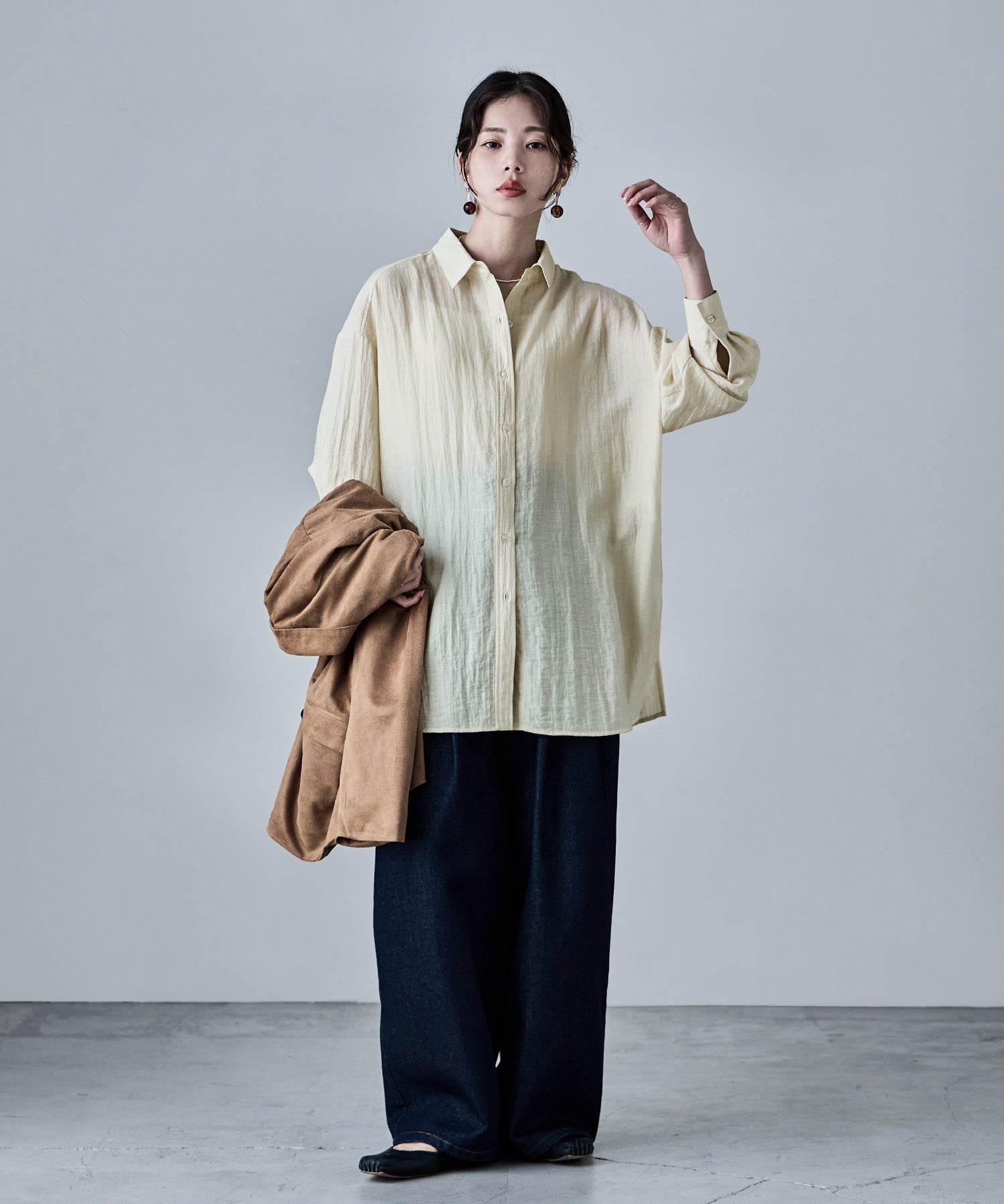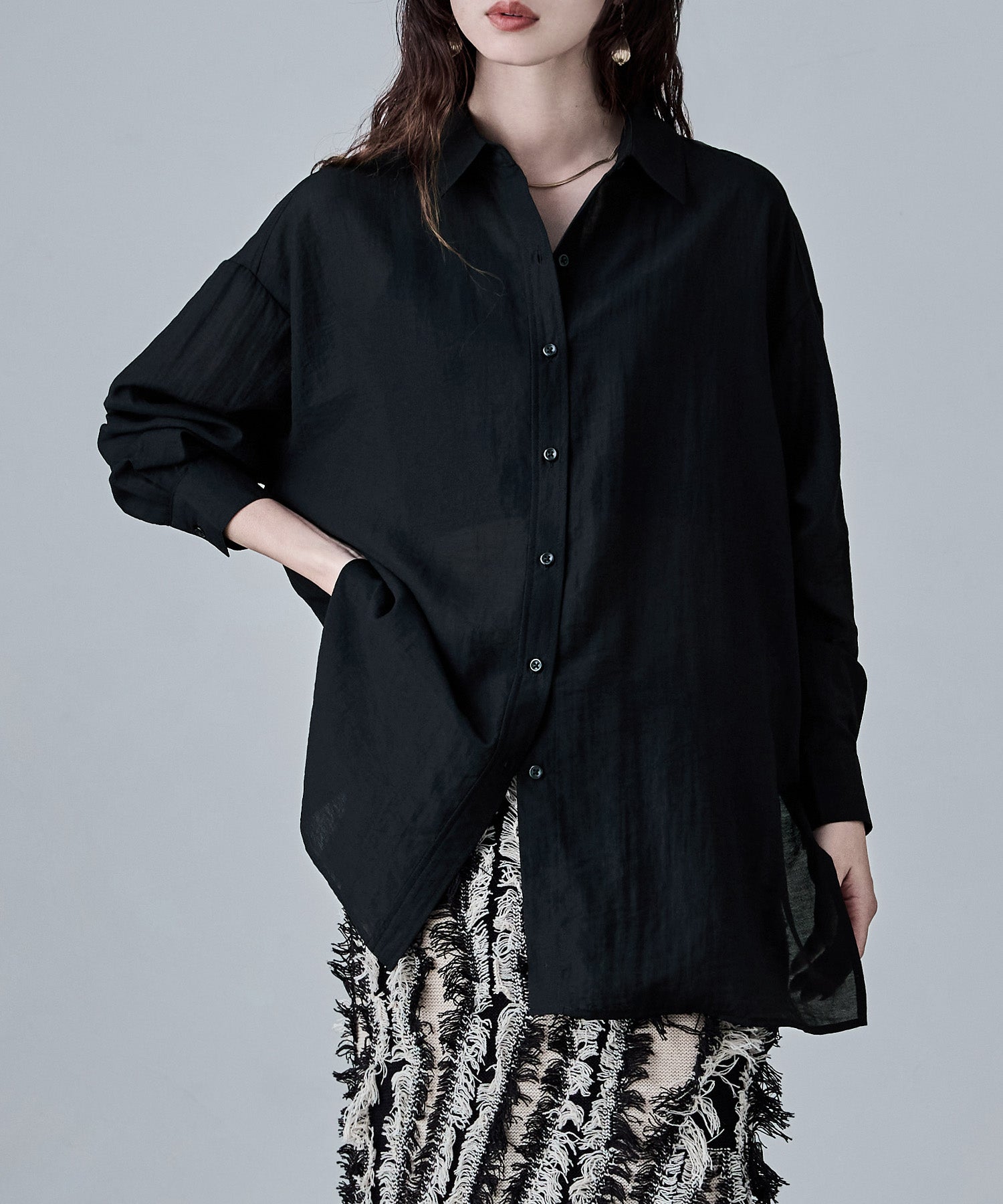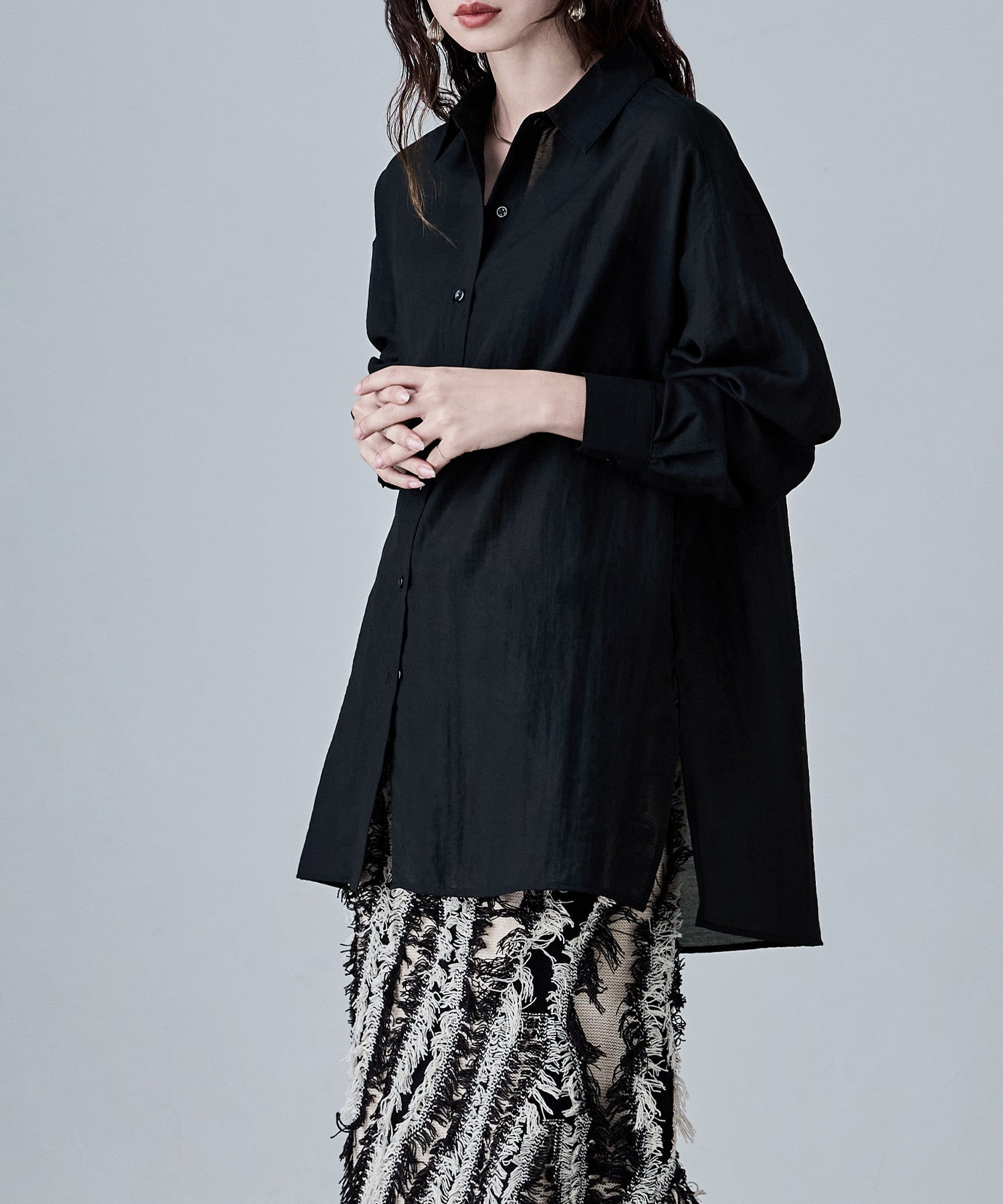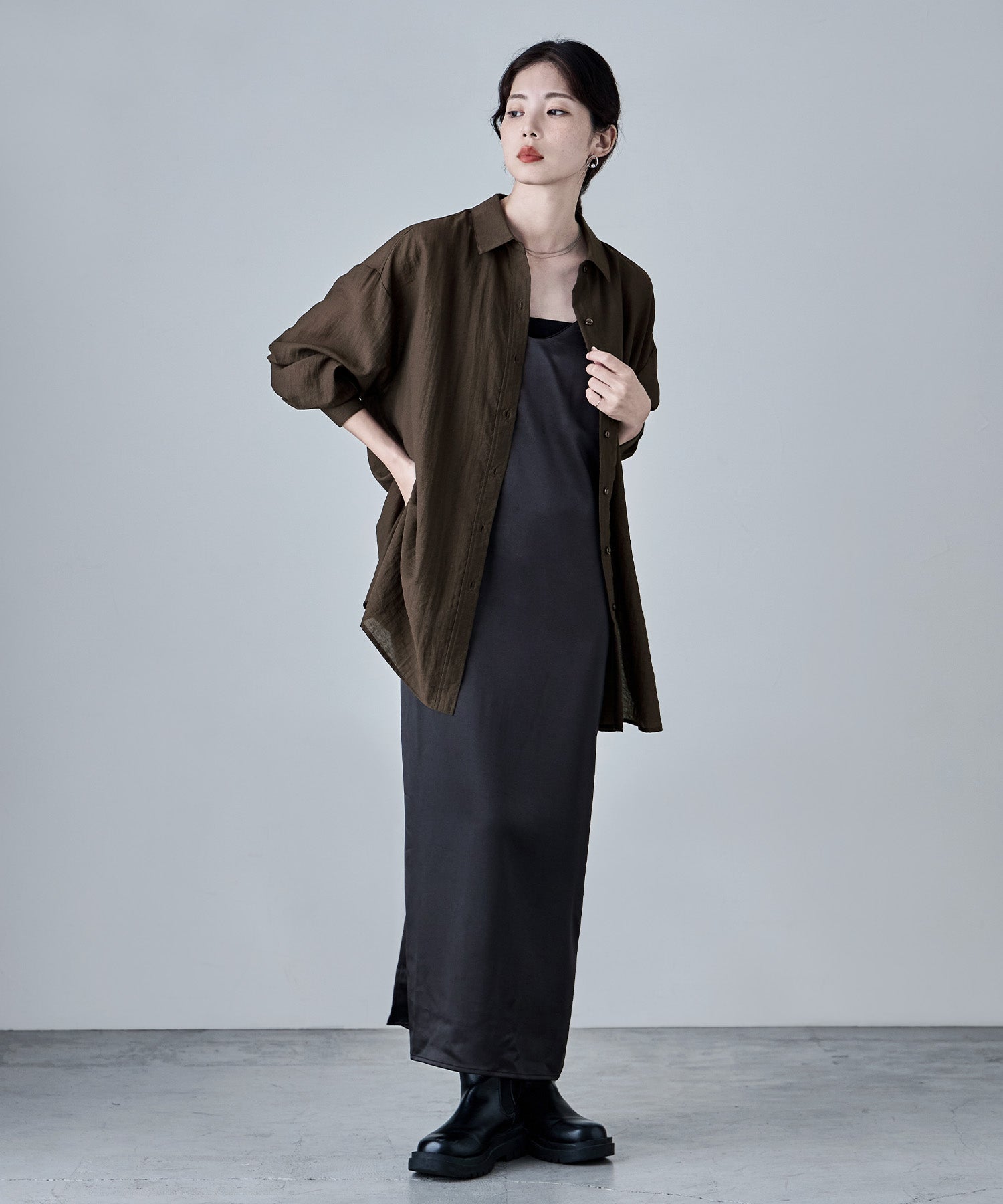 ルーズなのに上品なオーバーシャツ。