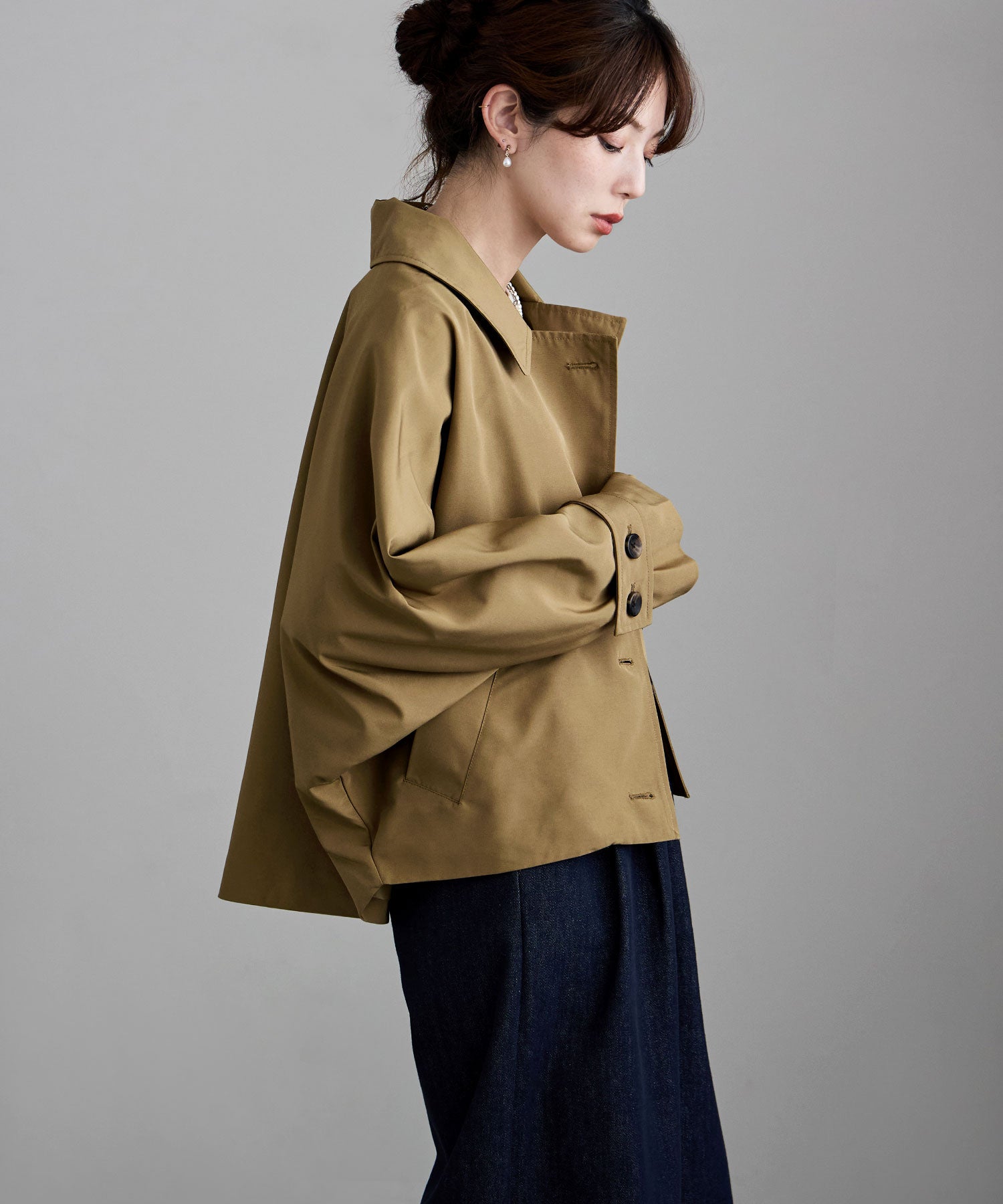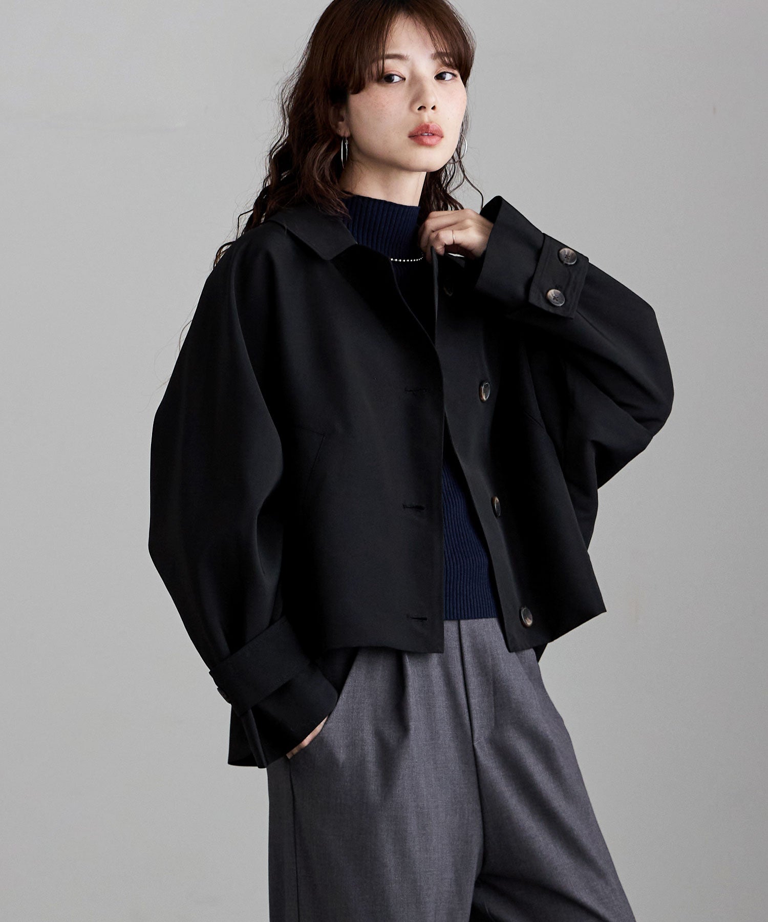 ハイセンスなドルマンスリーブのゆったりサイジングで使い勝手が魅力のライトアウター。