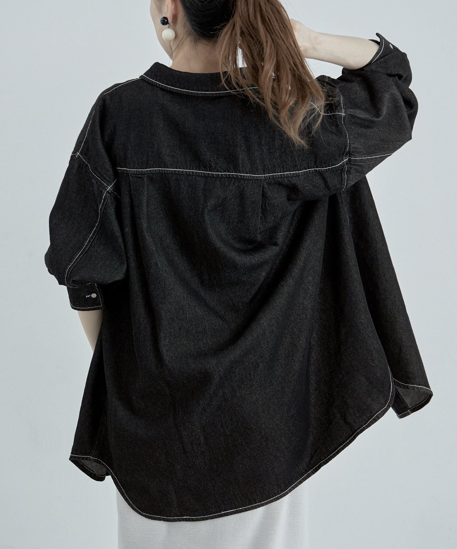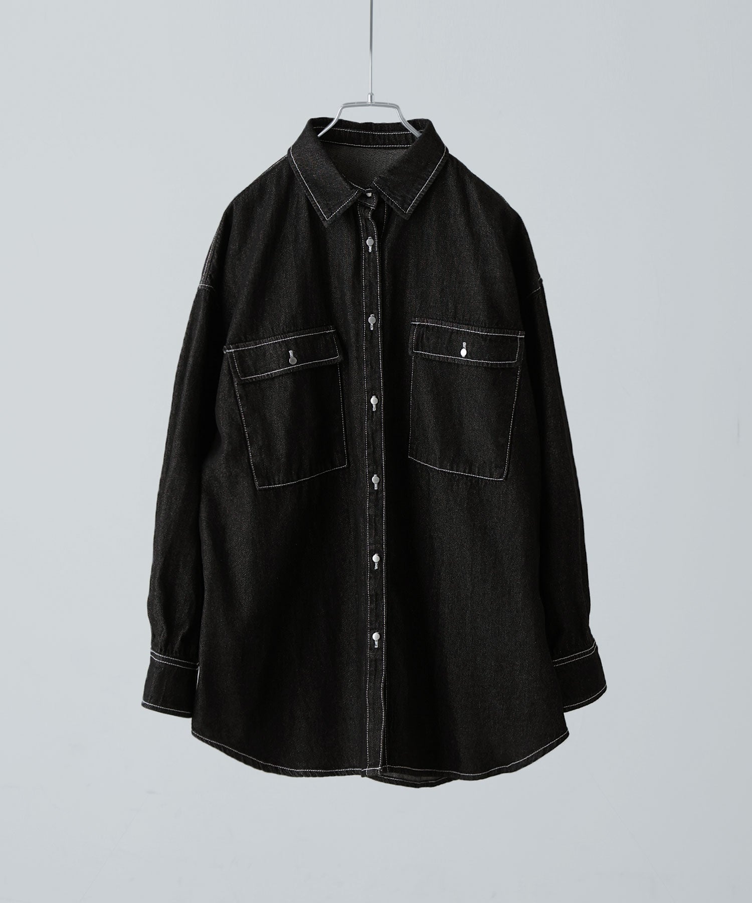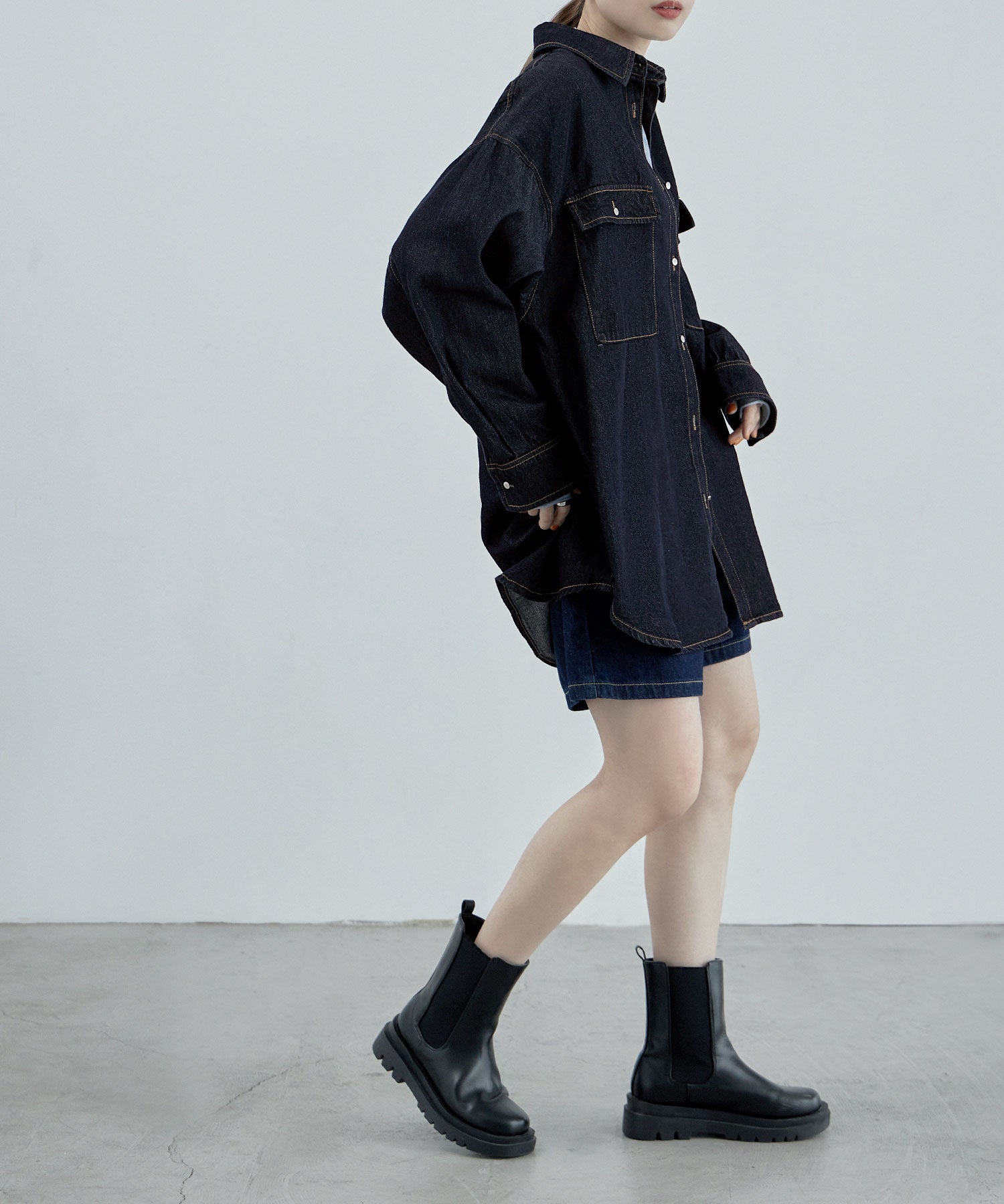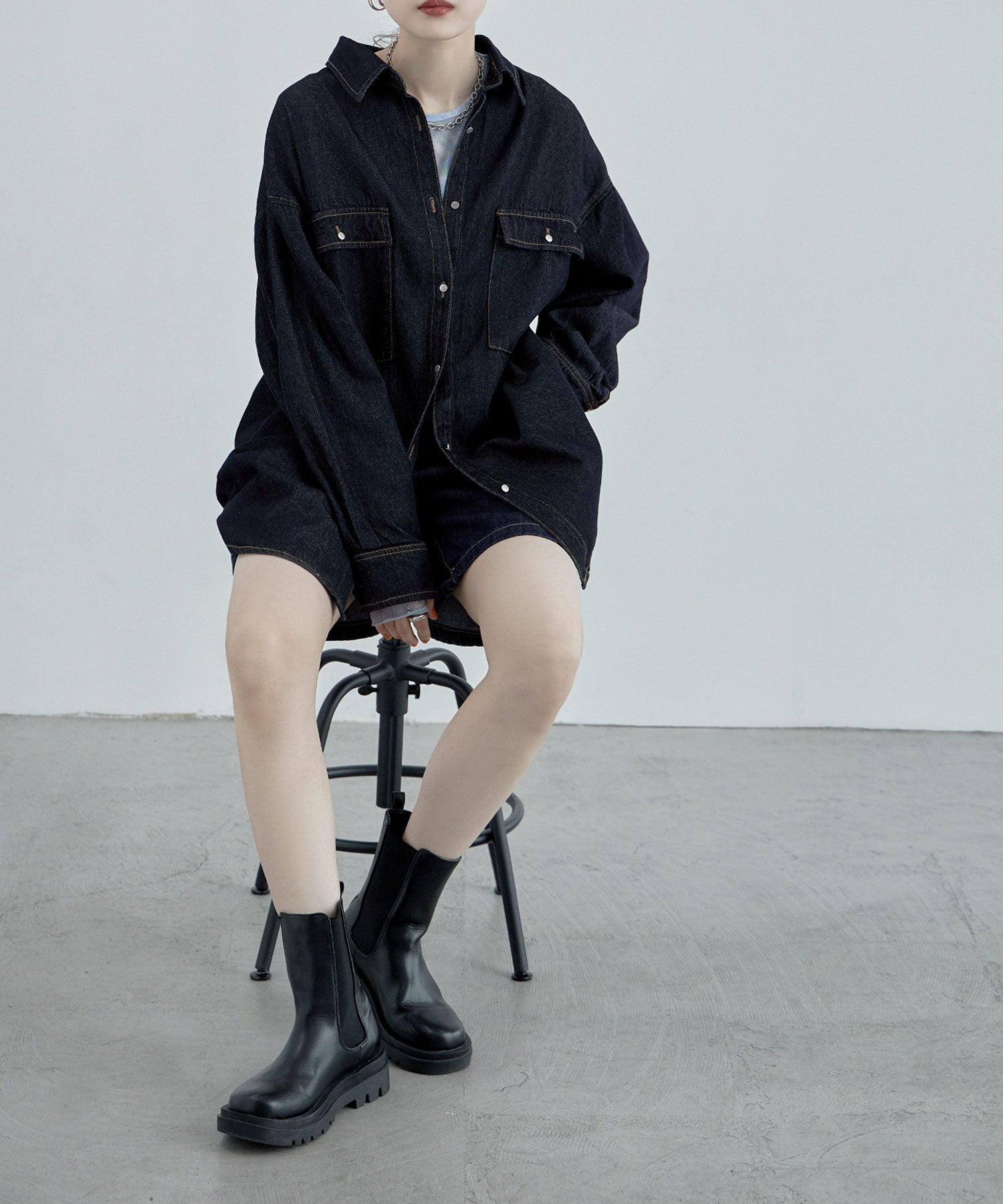 包み込むように大きな柔らかめのデニムで、シャツとしてコートの下にも合わせることもできて、もちろんジャケットとしてラクに羽織ることもできる。