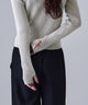 手の甲まで包んでくれるフィンガーホールデザインは、長めに設定された袖をクシュっと着るもの可愛いです。