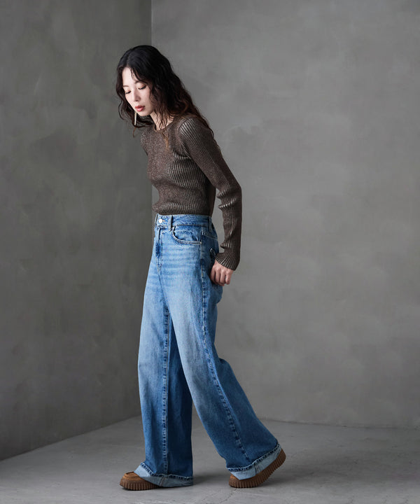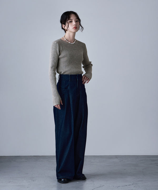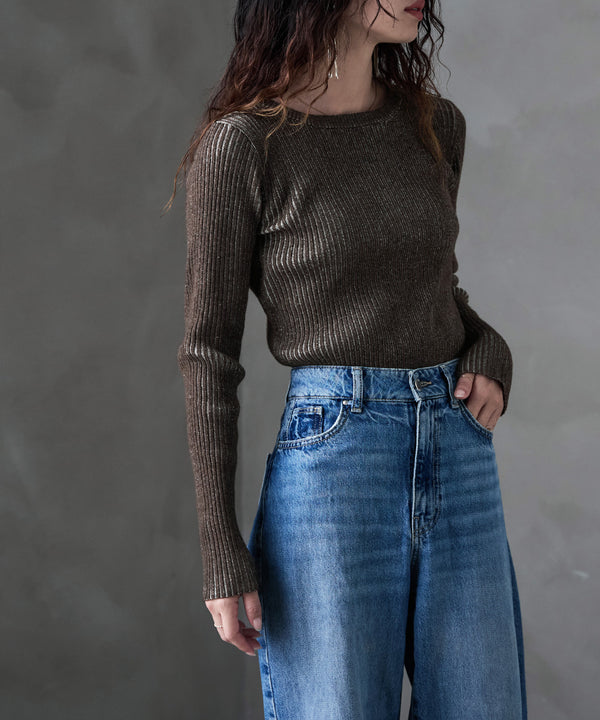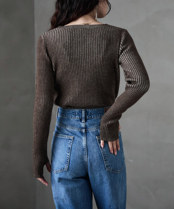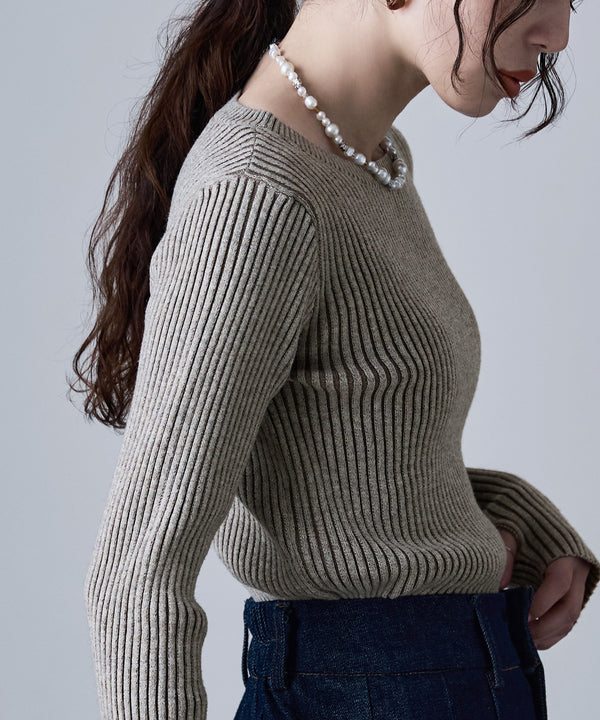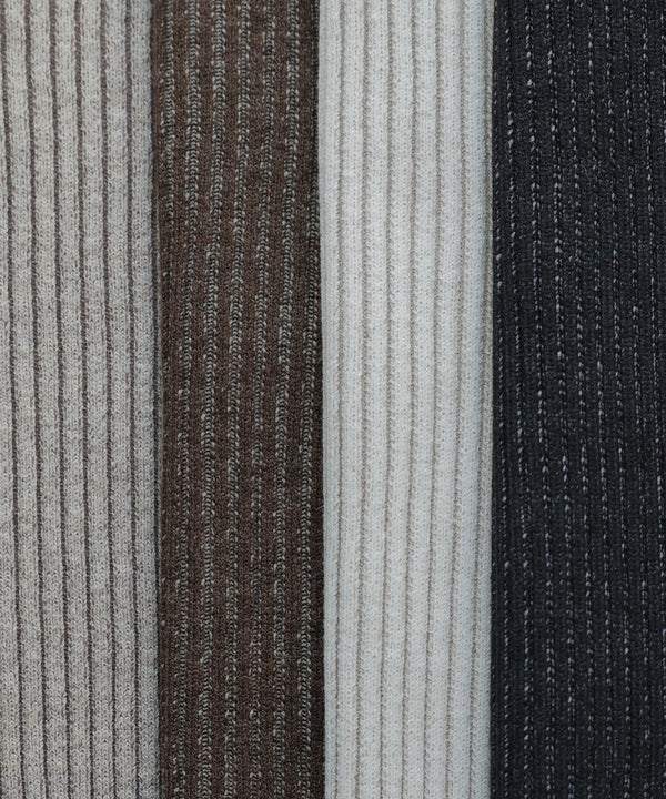 リブ間の色のコントラストが美しく、ストライプにもみえる色合いがコーデに奥行きをもたらしてくれる好アイテム。
