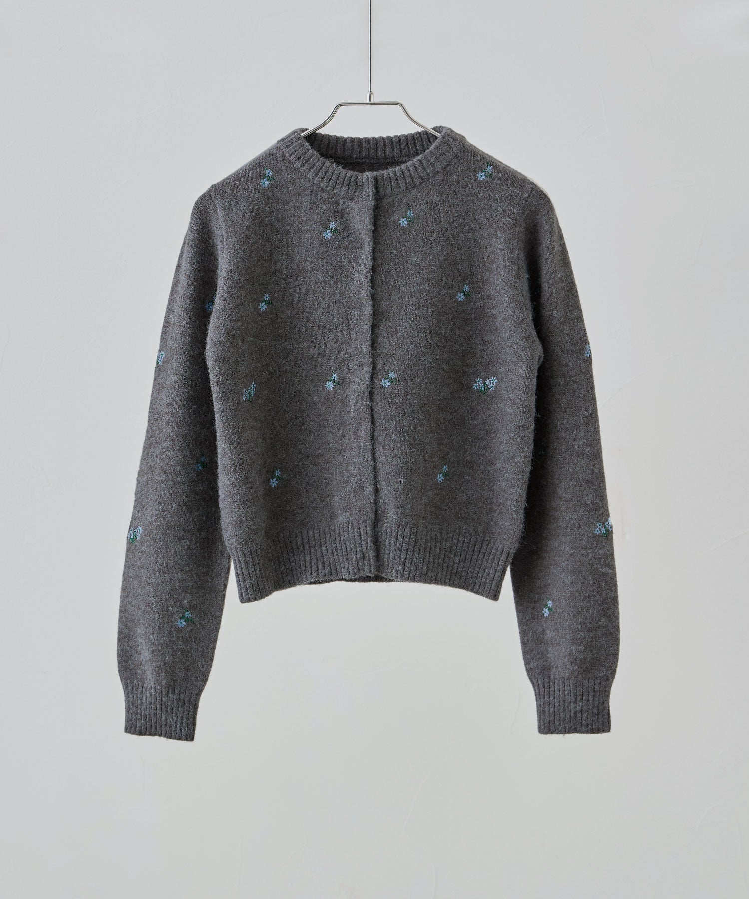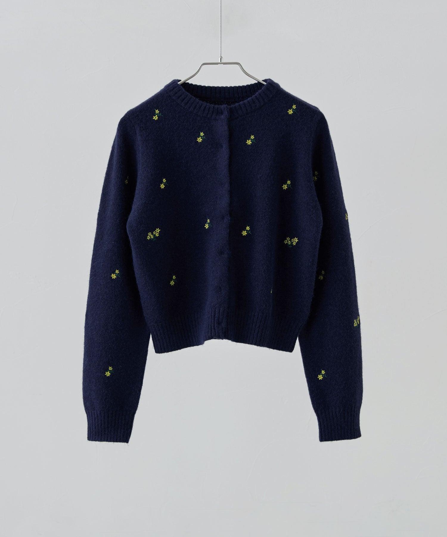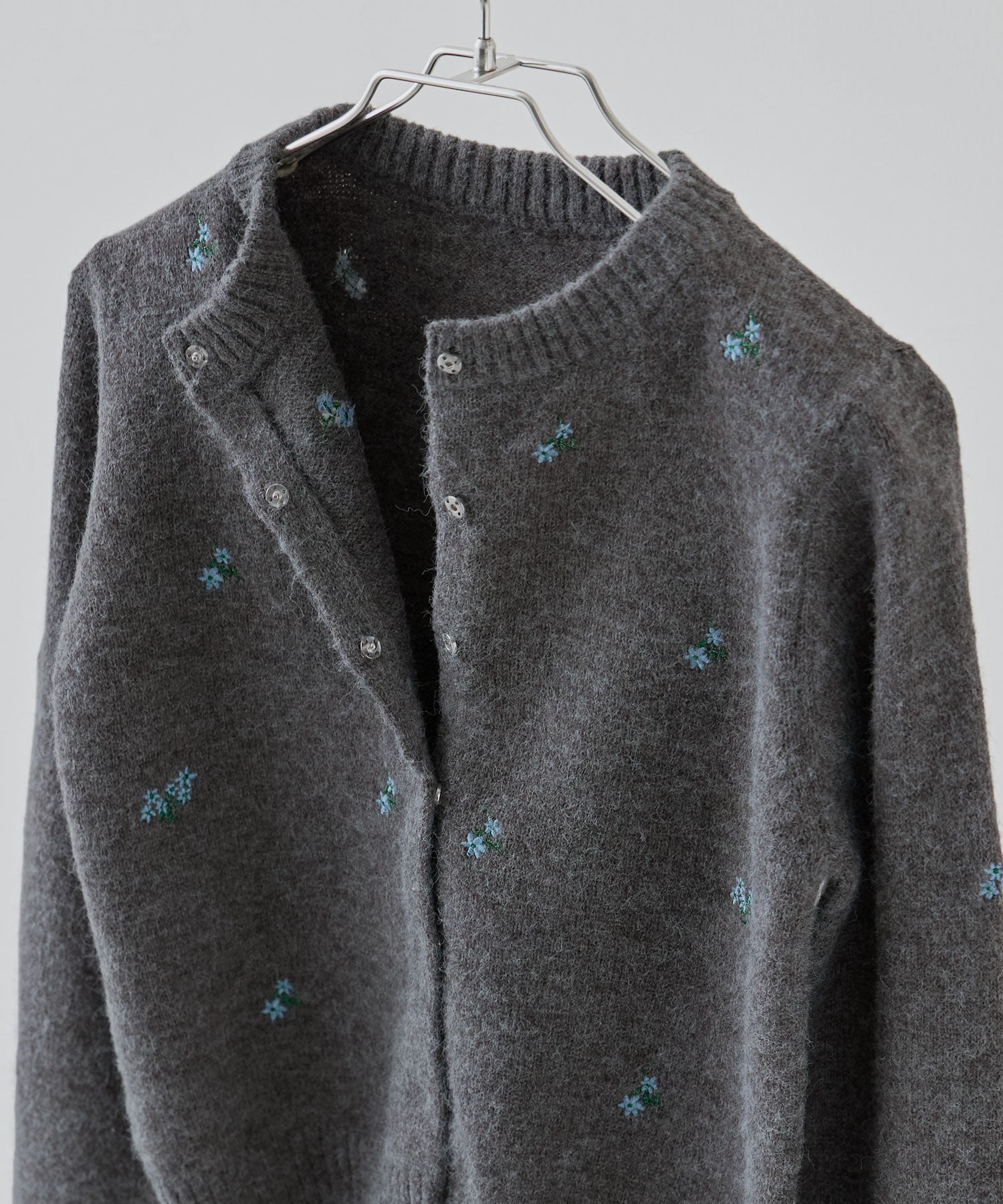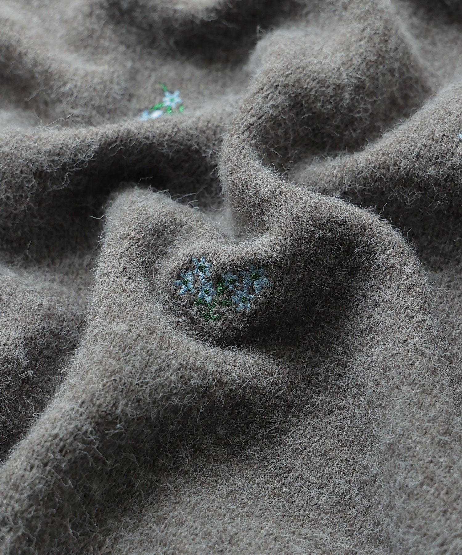 小花柄の色華やかな刺繍が愛らしい、アルパカタッチの柔らかなカーディガン。