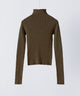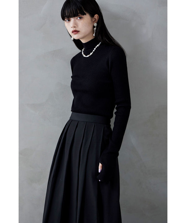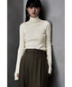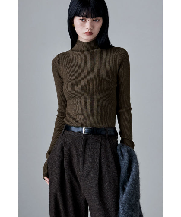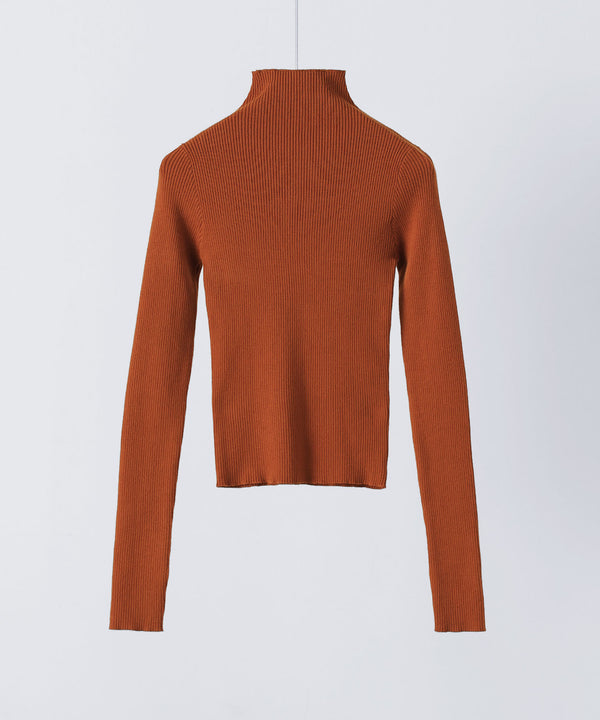 着回しに優れたコンパクトさやベーシックカラーがシンプルで使い勝手の良い、ハイネックのリブニット。