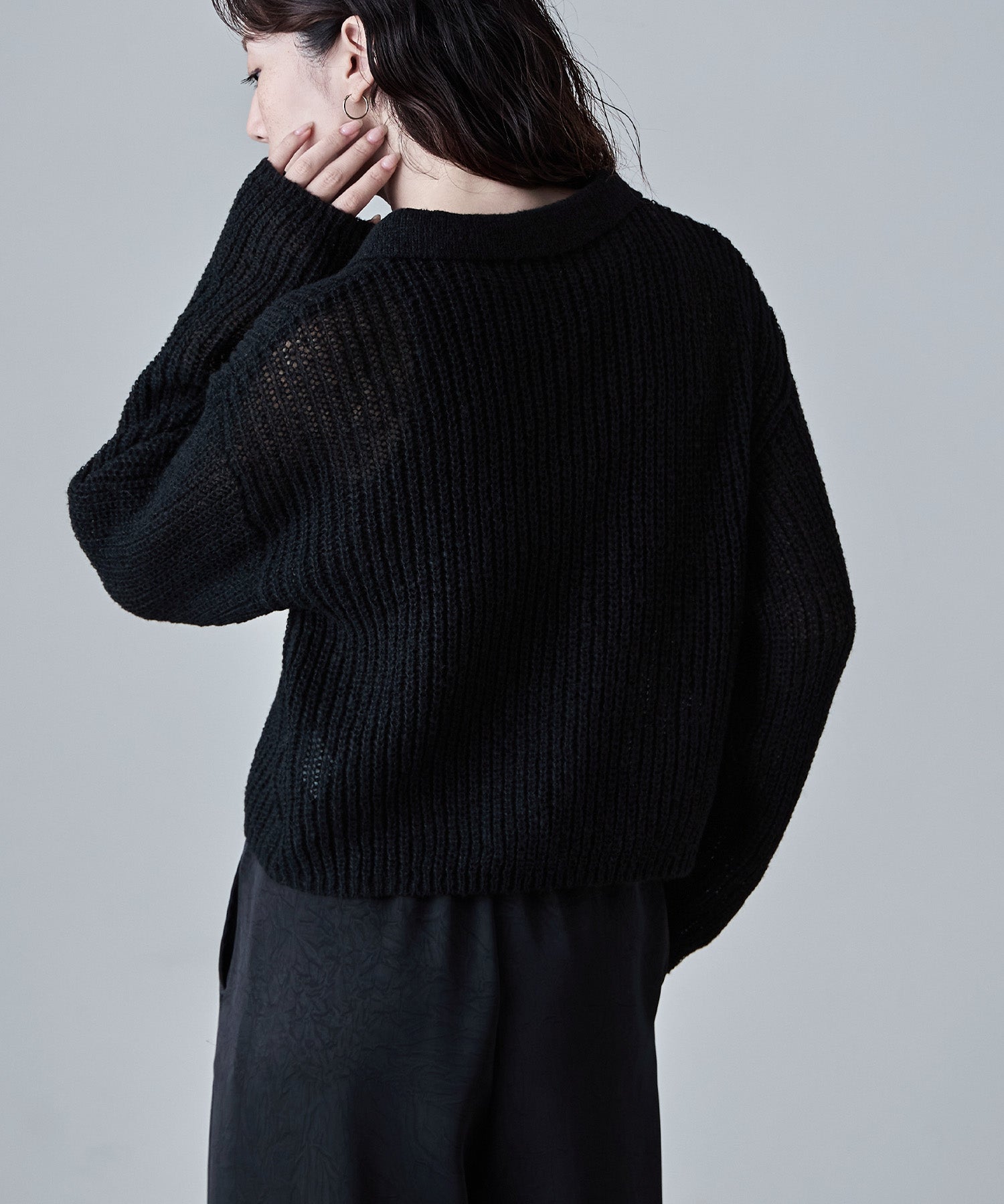 お好みでボタンを留めて、ポロシャツ風やVネック風にだけでなく、羽織りとしても使えるので、印象の異なるスタイリングも楽しめます◎。