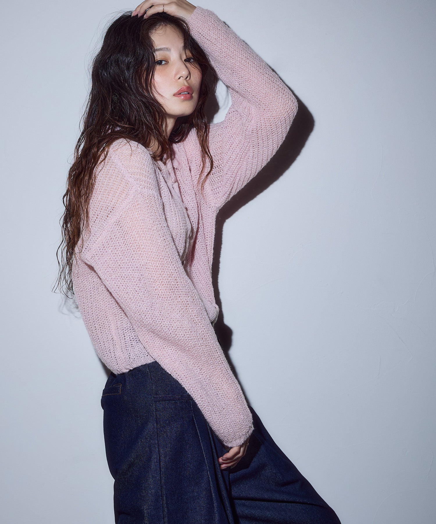 モヘアタッチの柔らかな起毛糸で仕立てた、優しい風合いも魅力的です。