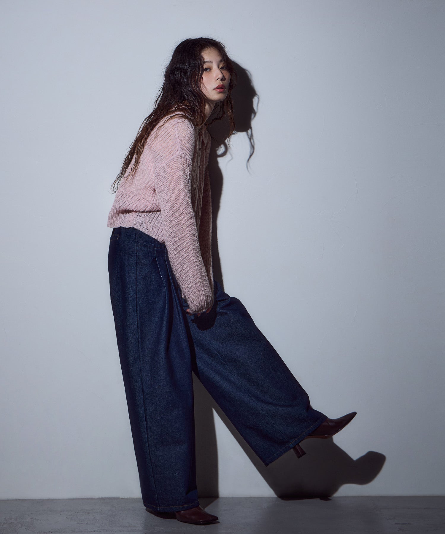目線の上がるショート丈に、スタイリングに奥行きをもたらすリブデザイン。