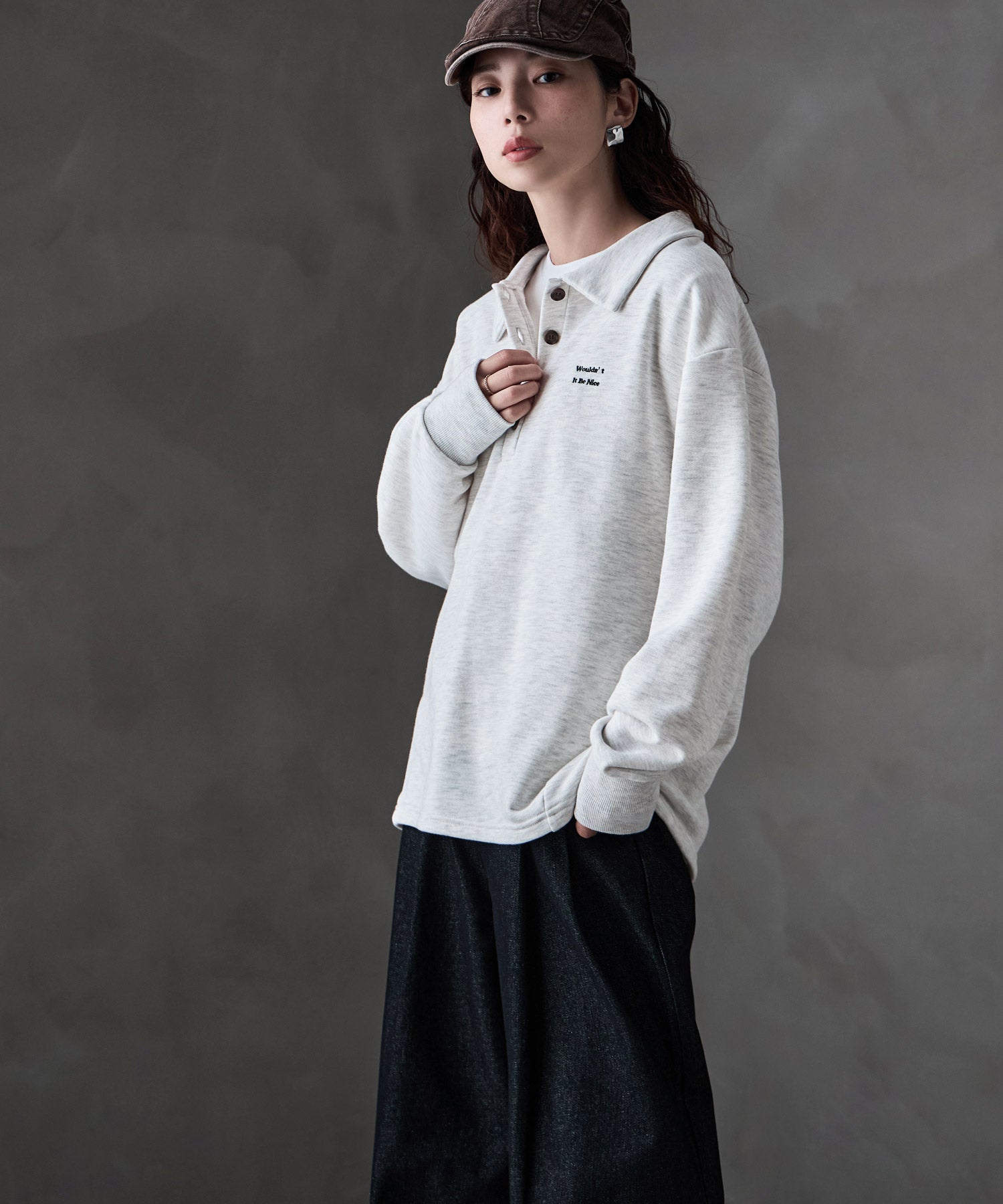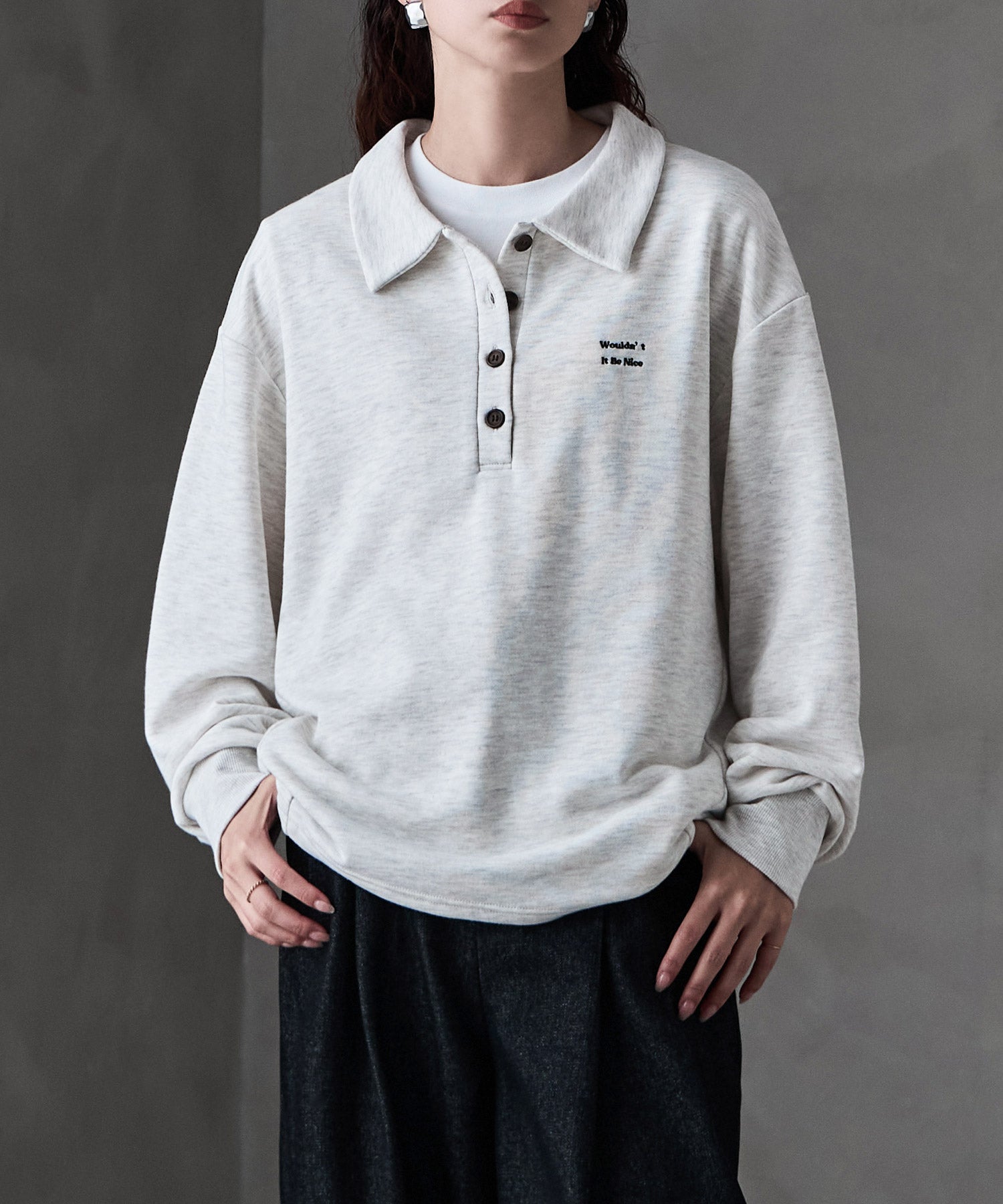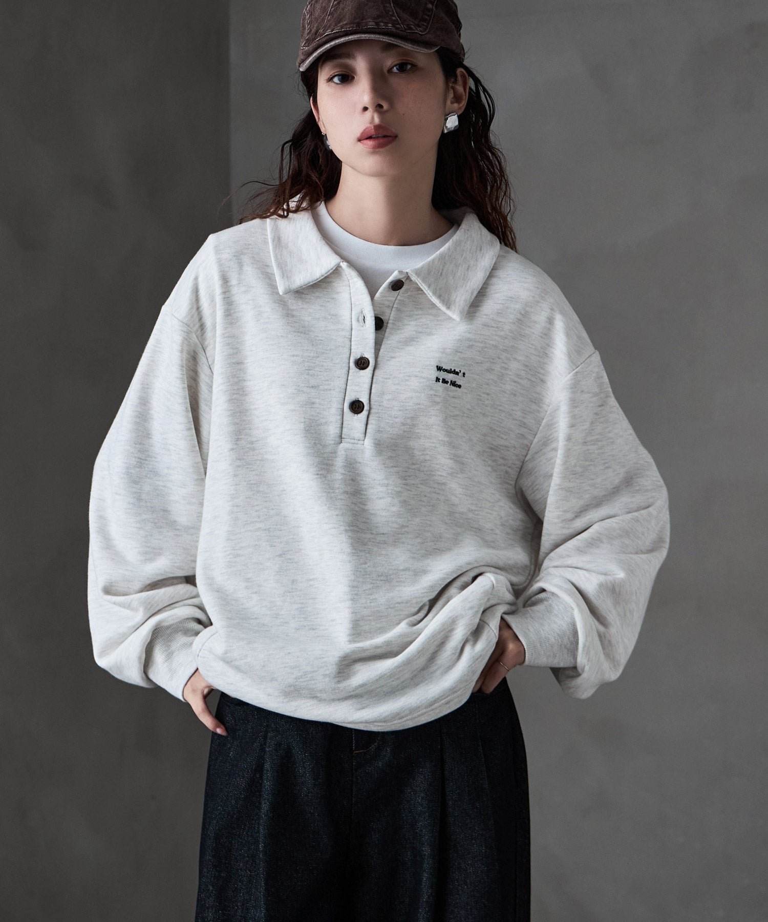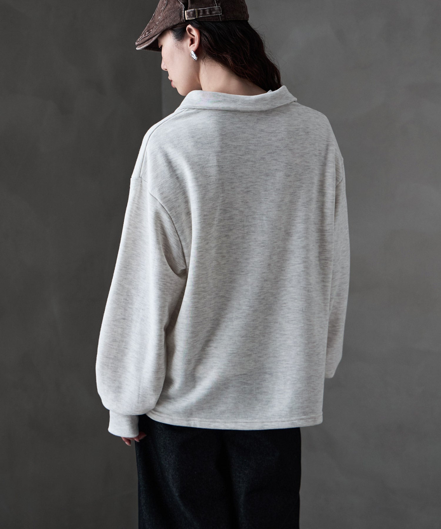 ゆったり着てもクリーンな雰囲気が残る、ポロ襟スウェットの登場です。