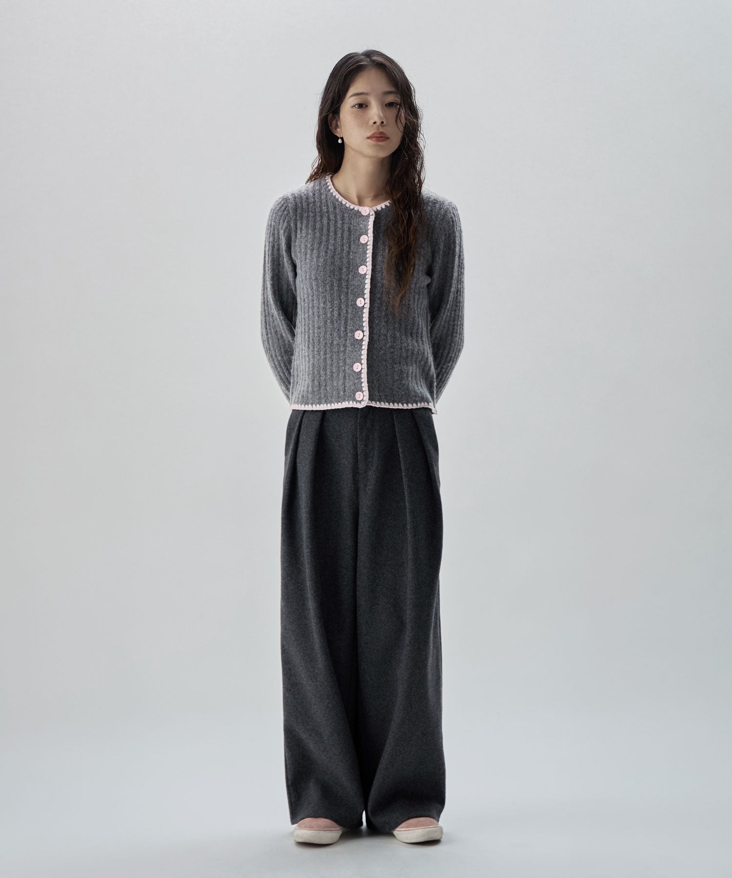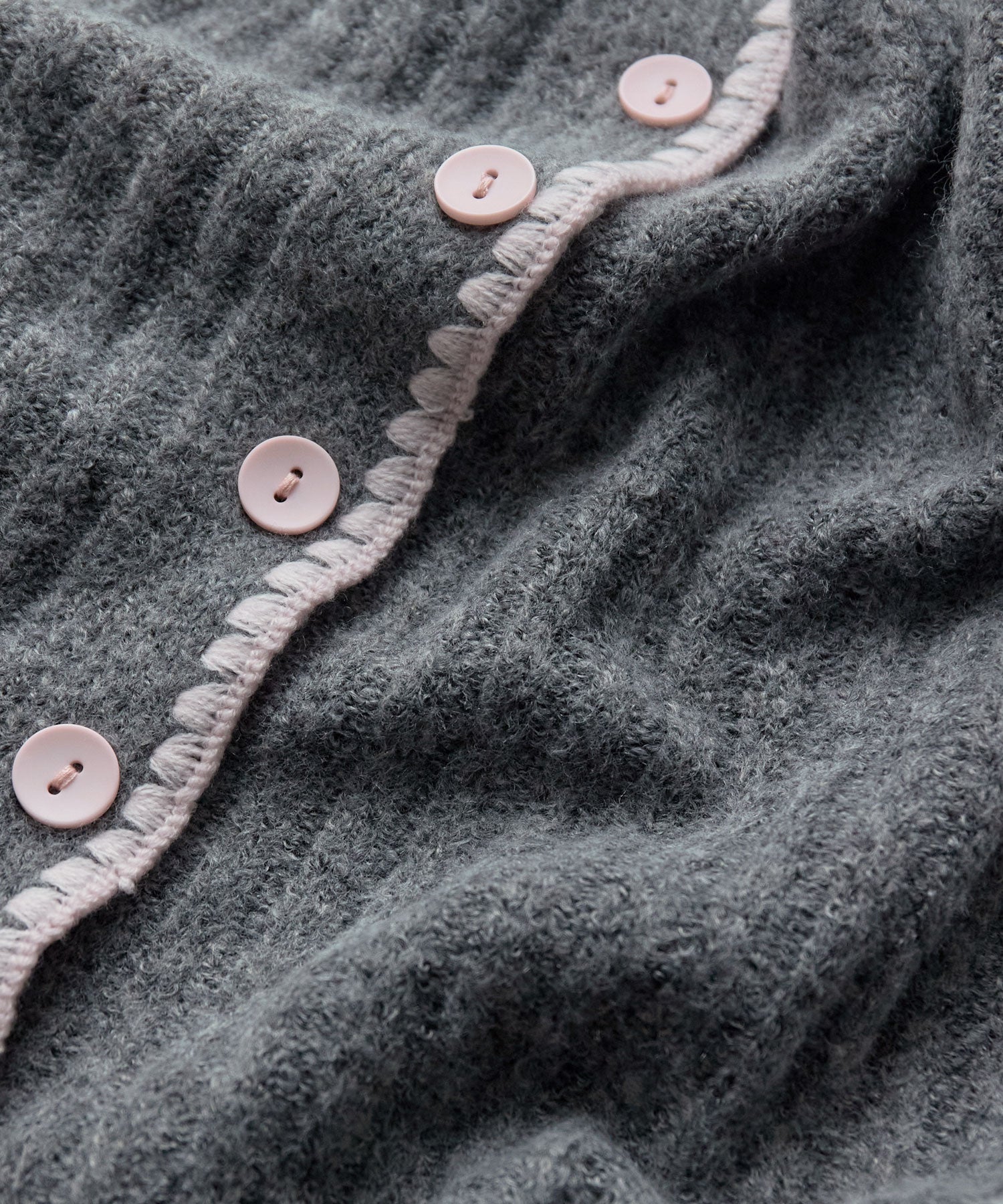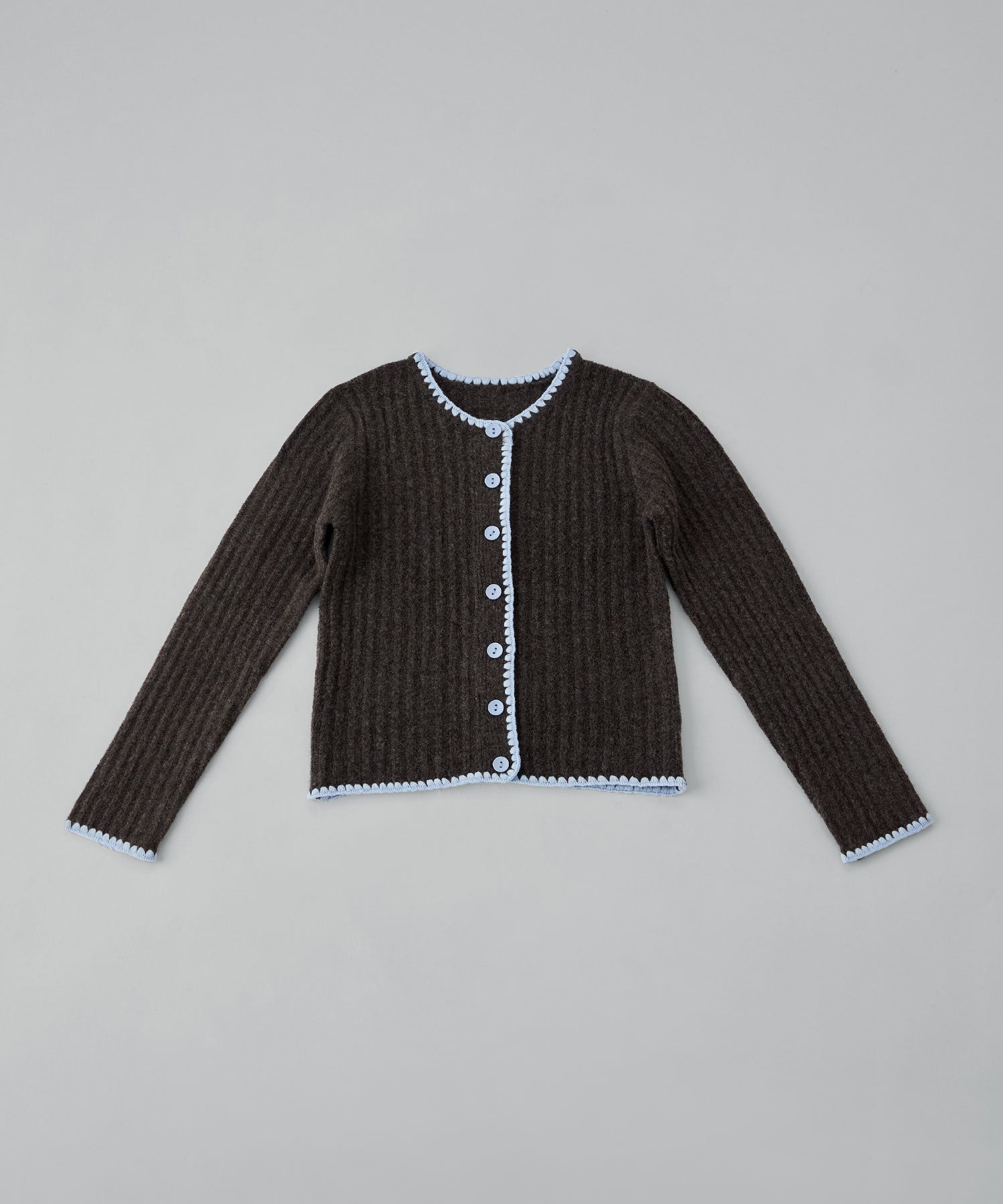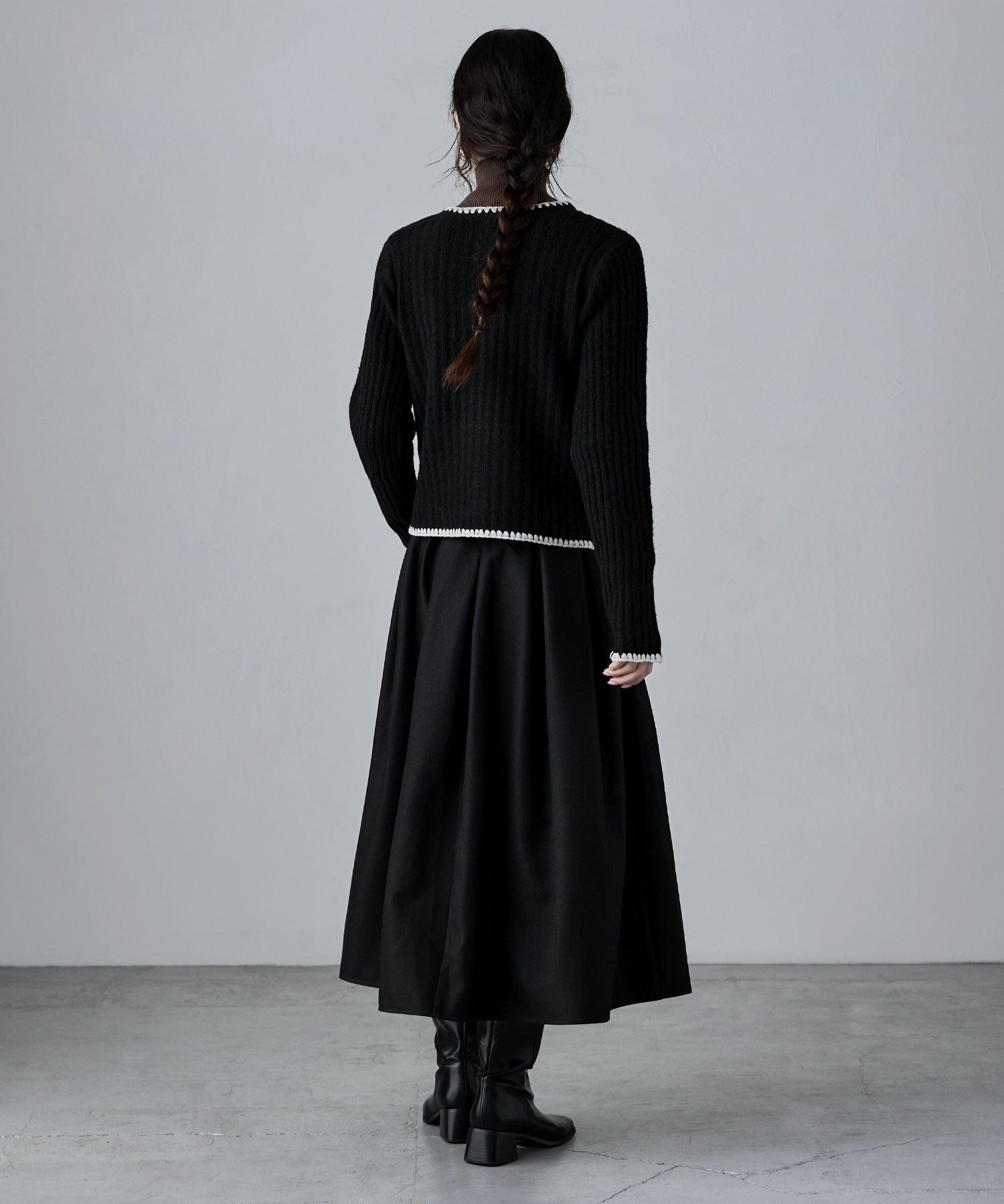 Rname 配色ステッチニットカーディガン トップス アウター カーディガン カーデ ニット リブニット 長袖 カラーカーデ バイカラー クルーネック リンガーネック 丸首 配色 タイト 伸縮性 前開き 羽織り